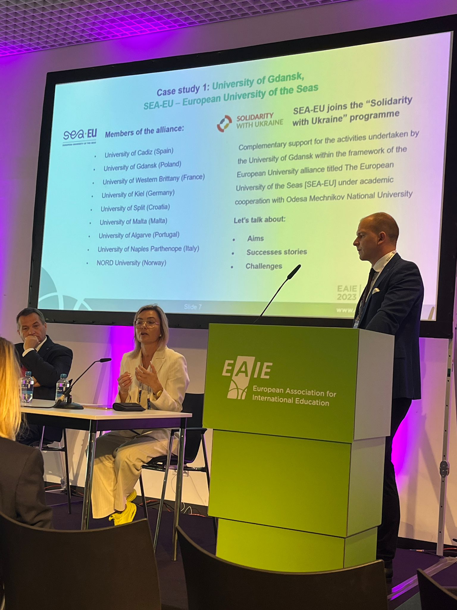Na konferencji nie zabrakło także przedstawicieli innych uczelni SEA-EU. Do publiczności liczącej ponad 6000 osób przemawiali Prorektor Uniwersytetu w Algarve Alexandra Teodosio oraz była prezydent EAIE i obecna Dyrektor Generalna SEA-EU Laura Howard. Obie prelegentki podkreśliły silną więź naszego aliansu ze społecznością europejską.