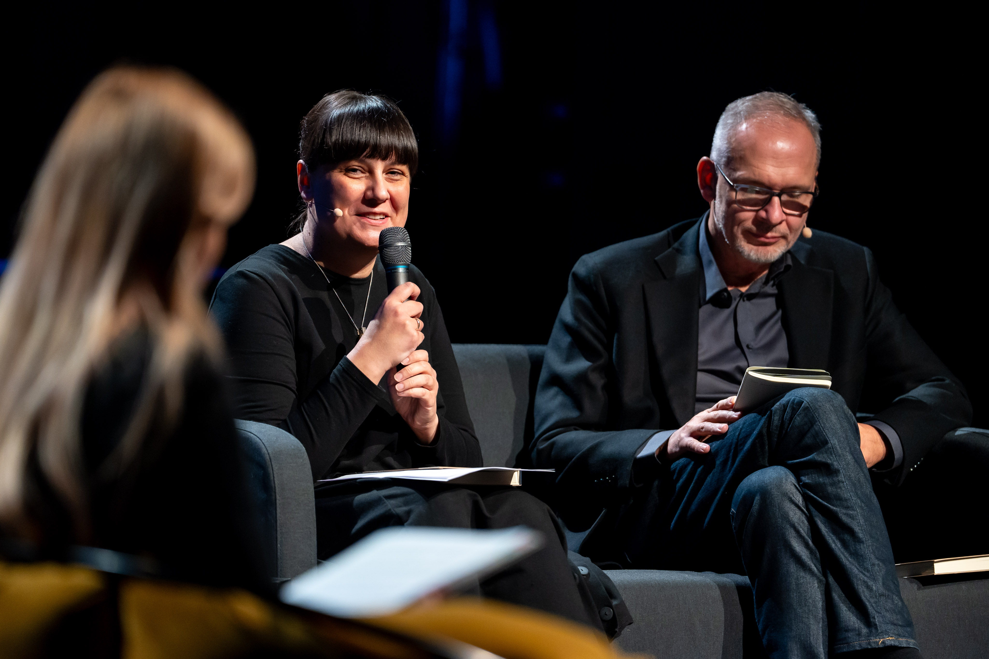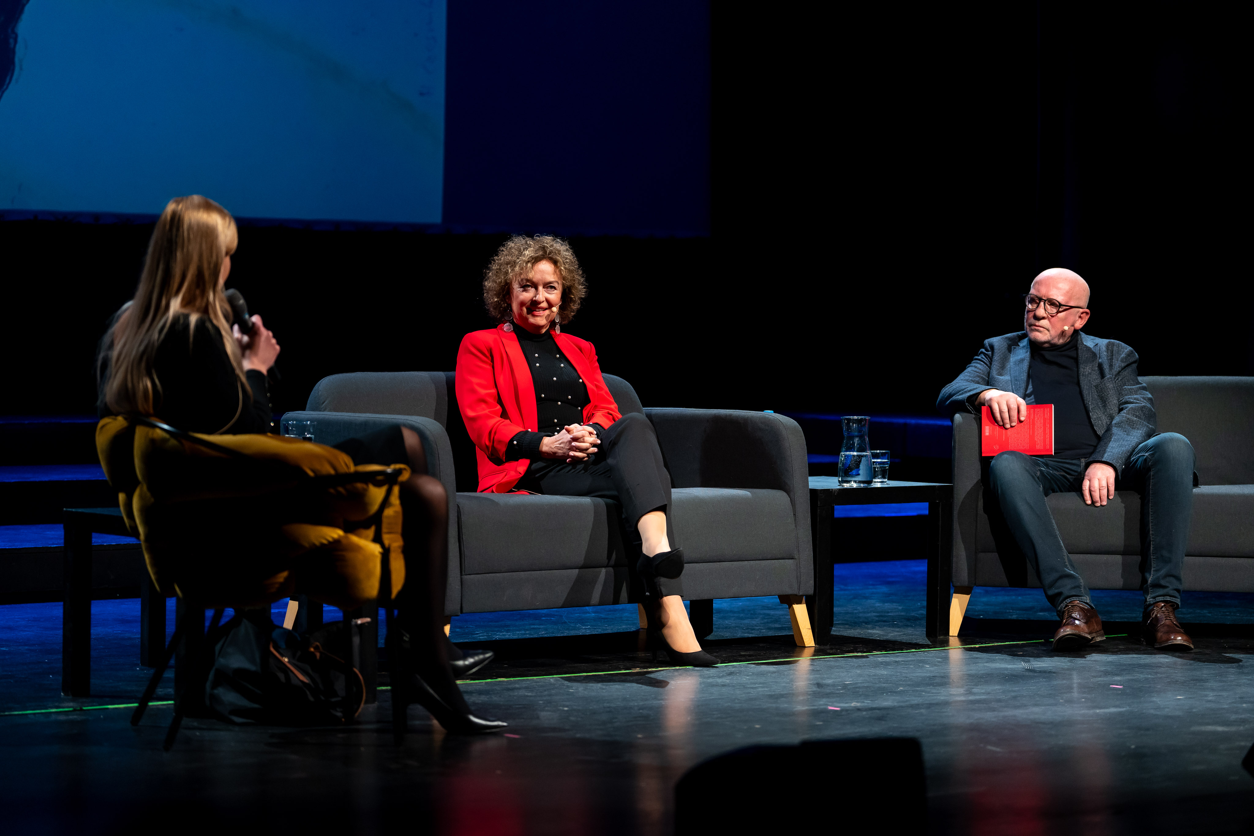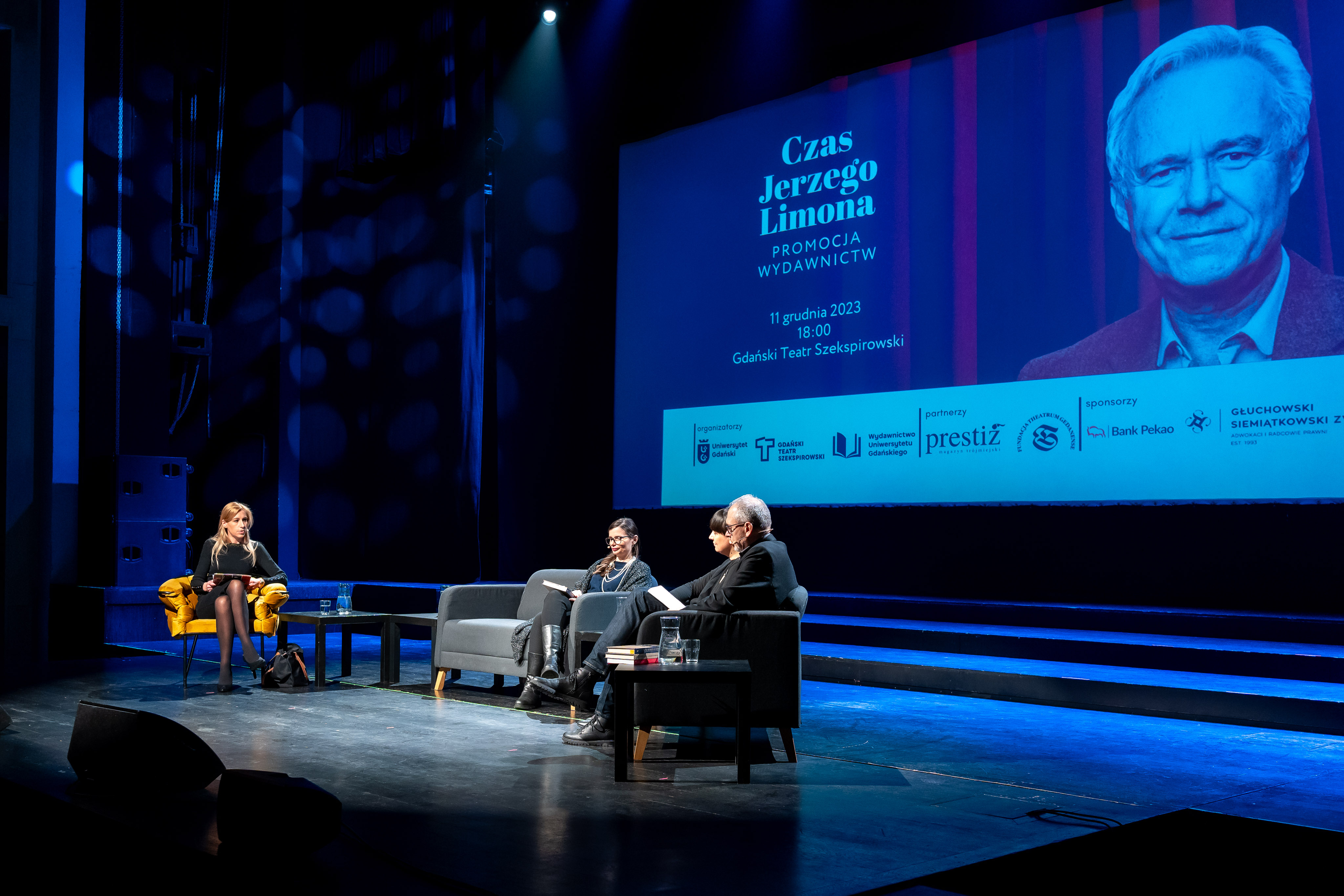 Na temat publikacji z Agnieszką Żukowską, Jackiem Kopcińskim oraz dr Barbarą Świąder-Puchowską rozmawiała na scenie Teatru Szekspirowskiego Dyrektor Wydawnictwa Uniwersytetu Gdańskiego, dr Joanna Kamień. Była ona również gospodarzem drugiego spotkania z żoną Jerzego Limona Justyną Limon i Henrykiem Cześnikiem - malarzem, profesorem Akademii Sztuk Pięknych w Gdańsku i autorem ilustracji do trzeciego promowanego tego wieczora tytułu, czyli Z kurtyną i bez. Publikowane na łamach magazynu „Prestiż Trójmiasto” w latach 2016–2021 teksty w dowcipny, ale i niepozbawiony wrażliwości sposób traktują o otaczającej profesora codzienności. Jak podkreślił Henryk Cześnik: - Propozycja zilustrowania esejów była wyzwaniem. Rozpiętość tematyczna zainteresowań zawarta w tekstach profesora Limona jest zaskakująca. Dopasowywanie się do każdego tekstu było dla mnie odpowiedzialnością.