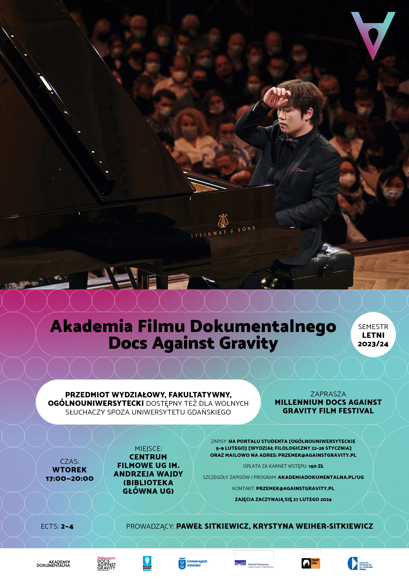 Więcej informacji: https://www.akademiadokumentalna.pl/akademia-filmu-dokumentalnego-docs-against-gravity-semestr-letni-202324.