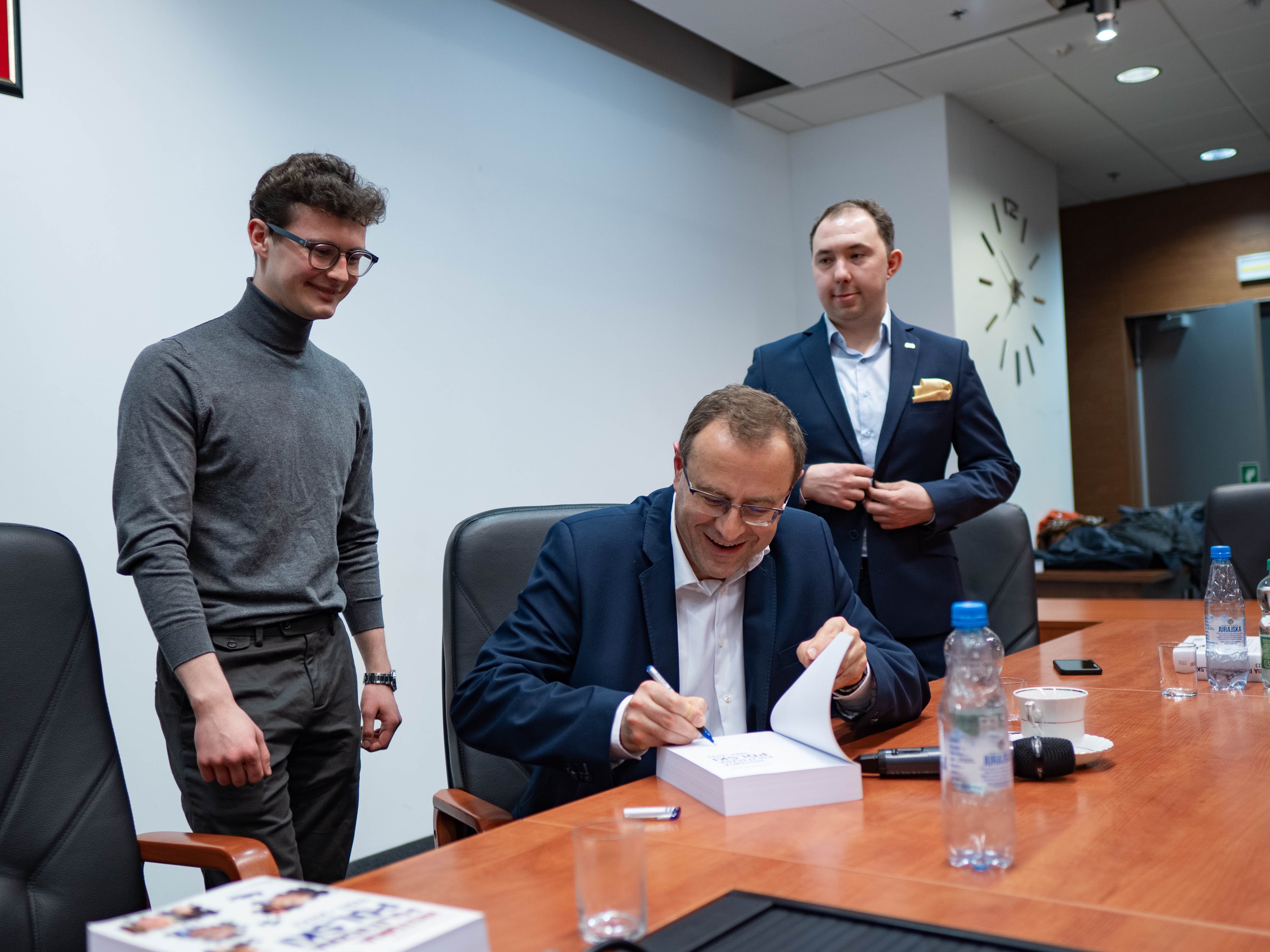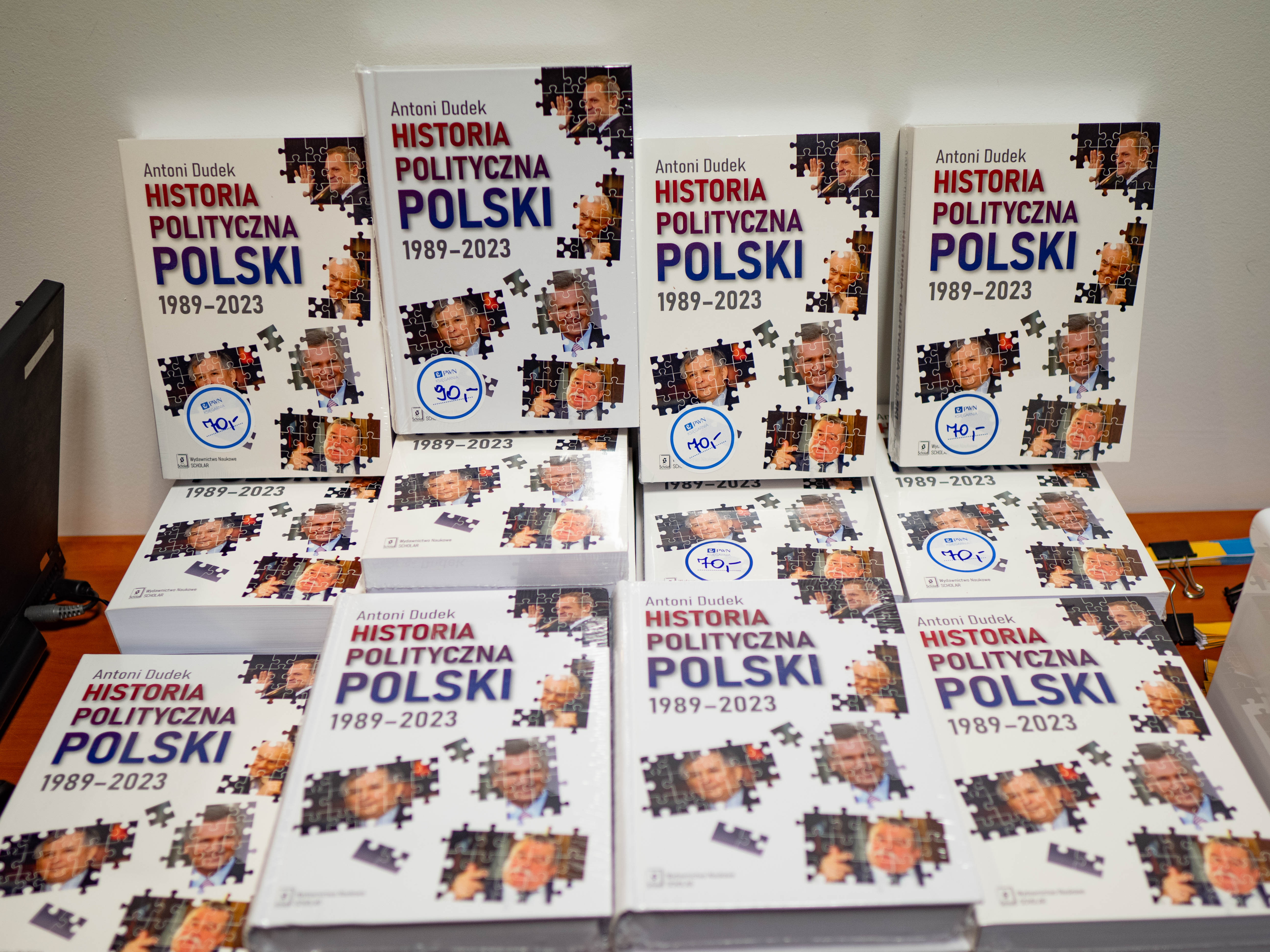 Na zakończenie odbyło się losowanie wśród uczestników spotkania nagród w postaci trzech egzemplarzy najnowszej książki prof. Antoniego Dudka pt. Historia polityczna Polski 1989-2023. Nagrody wręczyli sam autor oraz Dziekan Wydziału Historycznego dr hab. Arkadiusz Janicki, prof. UG.