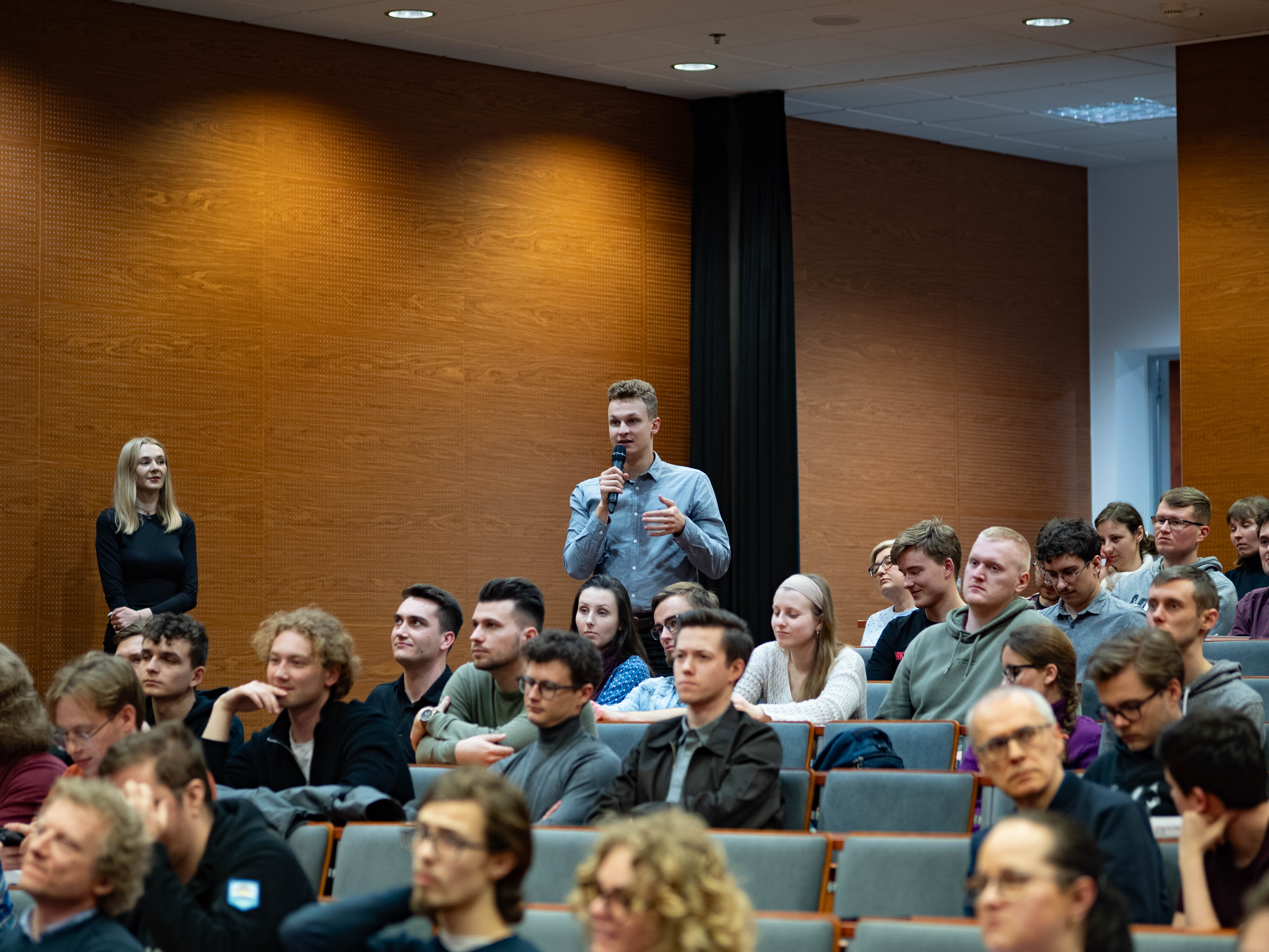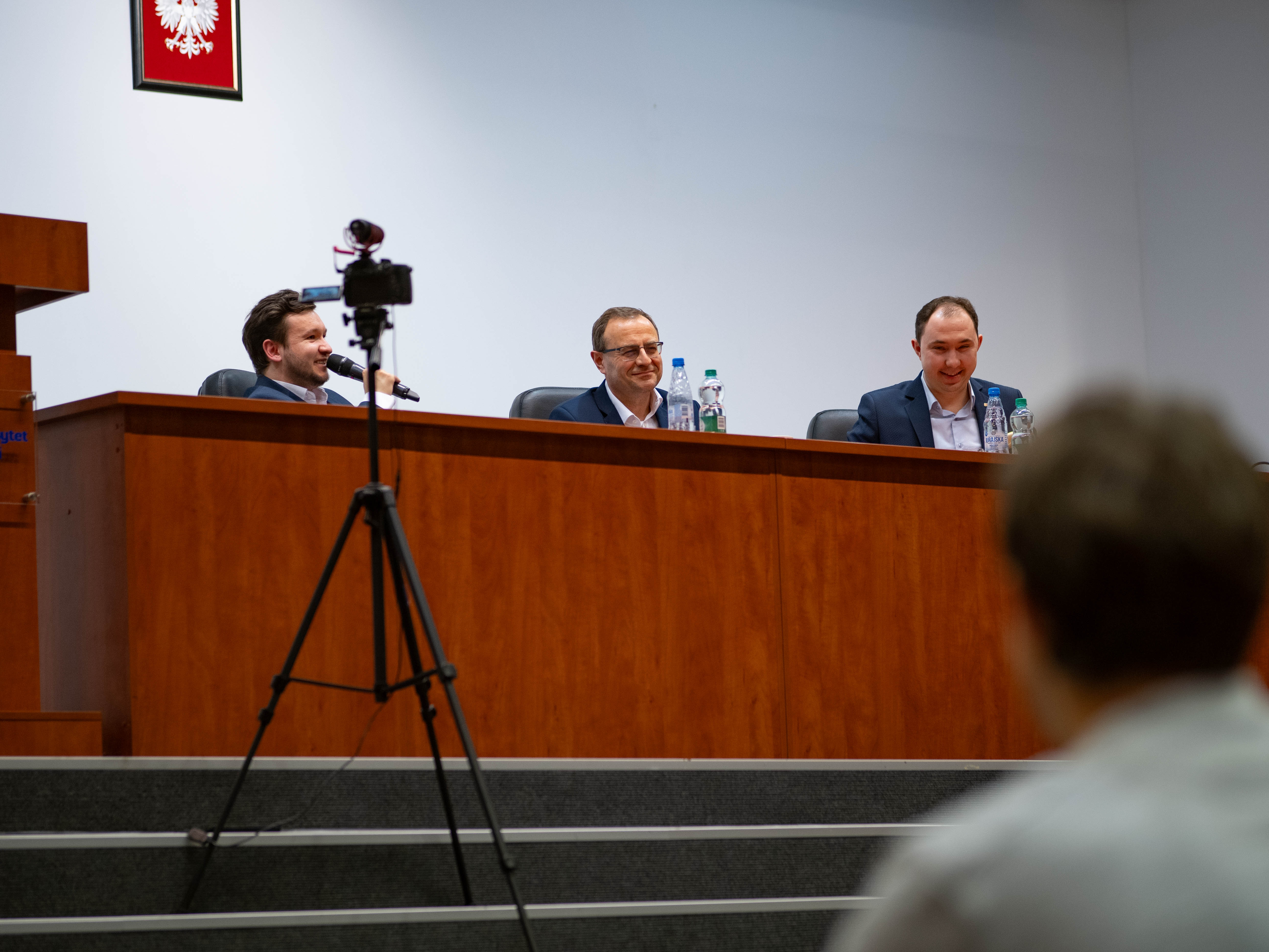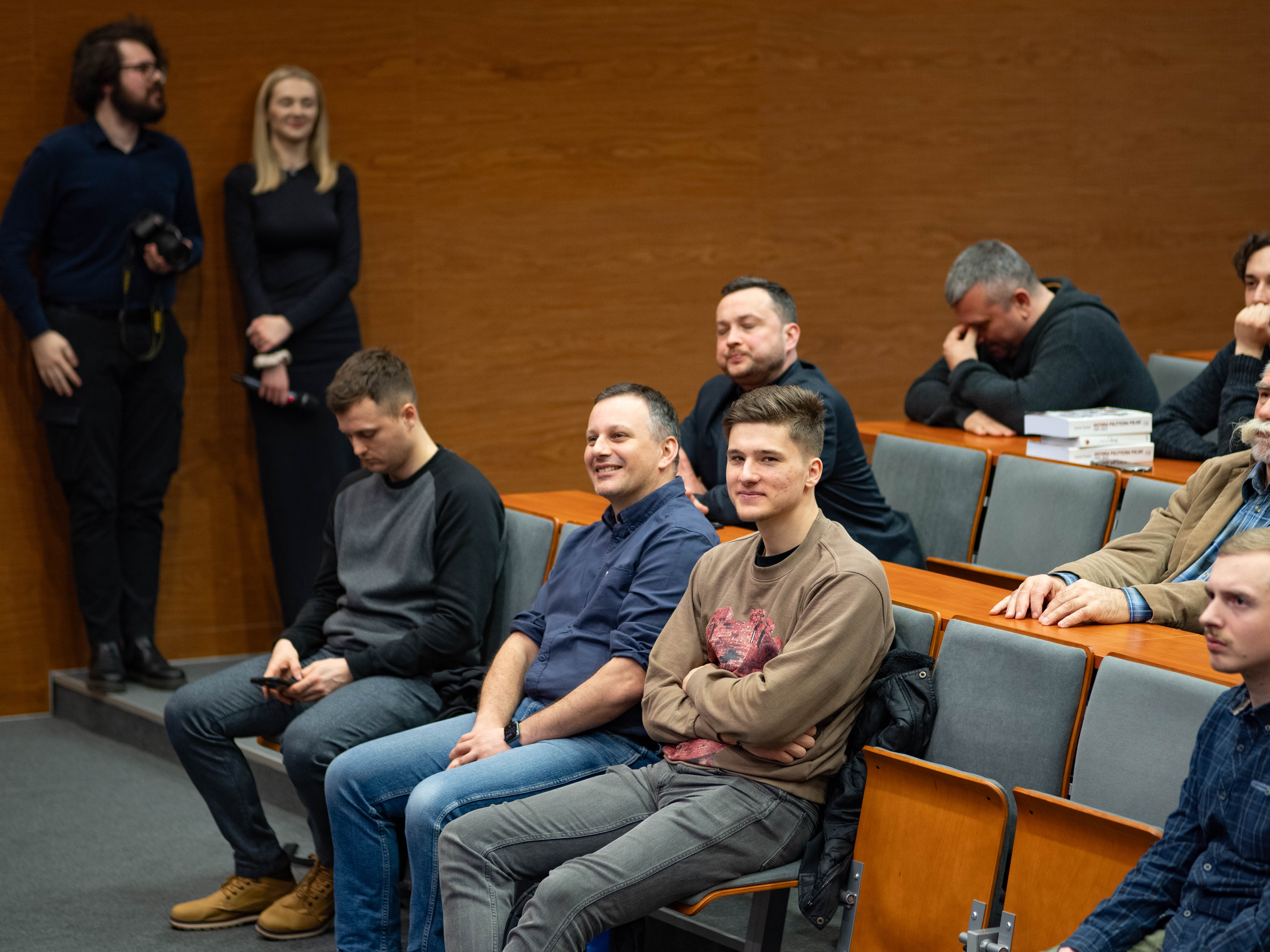 Dużą część spotkania przeznaczono na pytania od publiczności. O połączenie zawodu naukowca i youtubera zapytała prof. dr hab. Sylwia Rodziewicz-Motowidło z Wydziału Chemii UG. Gość Wydziału Historycznego gorąco zachęcił wszystkich badaczy do spróbowania swoich sił w nowych mediach; zwrócił także uwagę na większy potencjał wizualny nauk chemicznych w porównaniu do historii.
