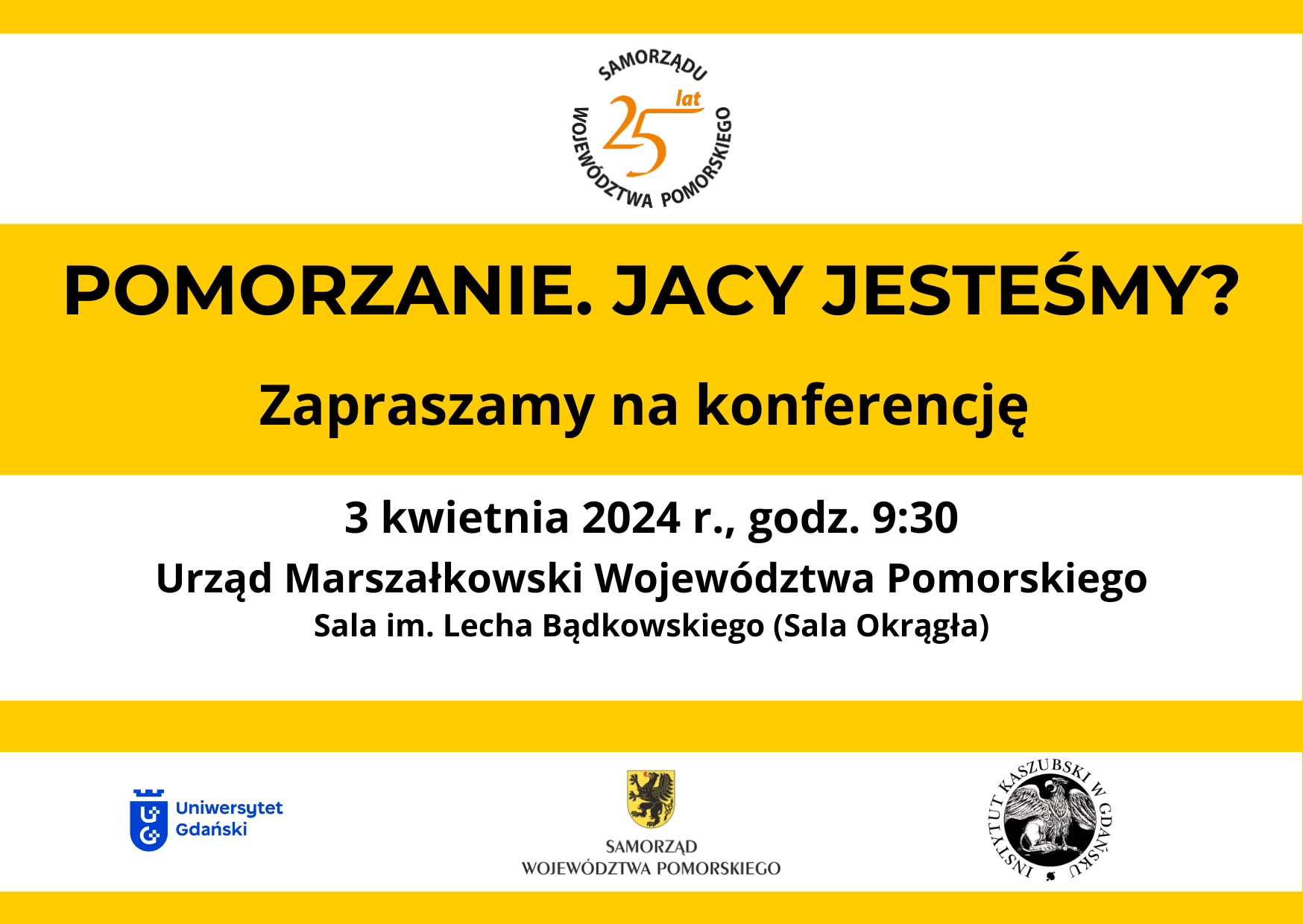 Zapraszamy na konferencję, podczas której omówione zostaną wyniki badania dotyczącego „postaw i zachowań mieszkańców województwa pomorskiego w kontekście budowania tożsamości Pomorzan”. Badanie zrealizowane zostało przez konsorcjum Instytutu Kaszubskiego i Fundacji IBRiS przy wsparciu Pomorskiego Centrum Badań nad Kulturą Uniwersytetu Gdańskiego.