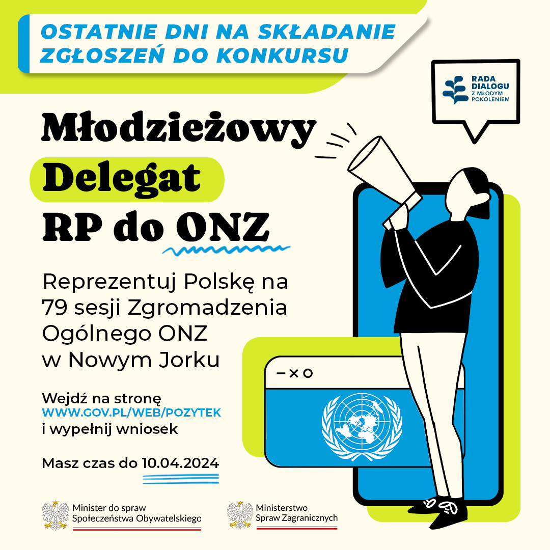 Zgłoś się i zabierz głos na 79. Sesji Zgromadzenia Ogólnego ONZ w Nowym Jorku. Kancelaria Prezesa Rady Ministrów ogłosiła konkurs „Młodzieżowy Delegat RP do ONZ”. Laureat będzie miał okazję reprezentować Polskę na światowej scenie ONZ!