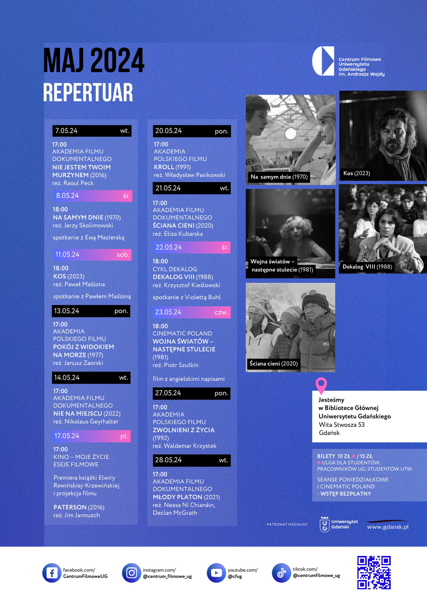 Maj tuż tuż, więc zachęcamy do zapoznania się z repertuarem Centrum Filmowego UG im. Andrzeja Wajdy!