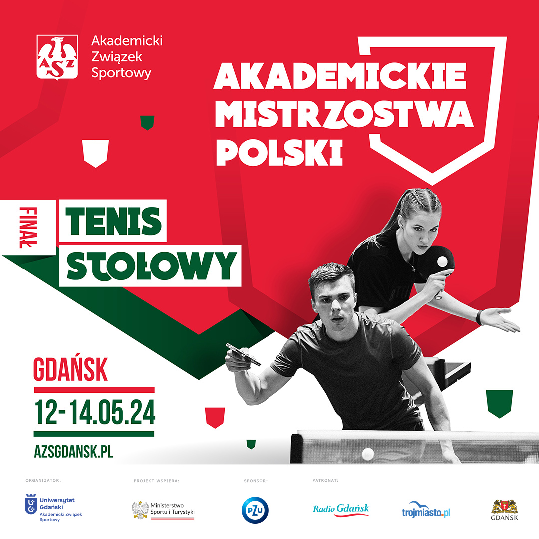Już po raz trzeci z rzędu AZS Uniwersytet Gdański i Miasto Gdańsk będą gospodarzami Finału Akademickich Mistrzostw Polski w Tenisie Stołowym. Tegoroczne zawody odbędą się w dniach 12-14.05.2024 w Centrum Szkolenia PZTS im Andrzej Grubby przy ul. Meissnera. Pierwszy dzień do przyjazd ekip, treningi i odprawa techniczna. Gry rozpoczną się w poniedziałek, a we wtorek poznamy nowych Akademickich Mistrzów Polski.