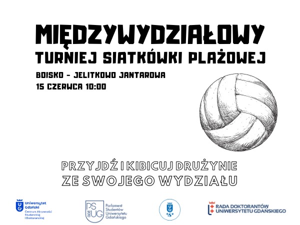 Już 15 czerwca na boisku plażowym w Jelitkowie odbędzie się Międzywydziałowy Turniej siatkówki plażowej! W turnieju wezmą udział drużyny m.in. z Wydziałów: Chemii, Ekonomicznego, Historycznego, Matematyki, Fizyki i Informatyki, Oceanografii i Geografii, Prawa i Administracji, Zarządzania oraz Międzyuczelnianego Wydziału Biotechnologii.