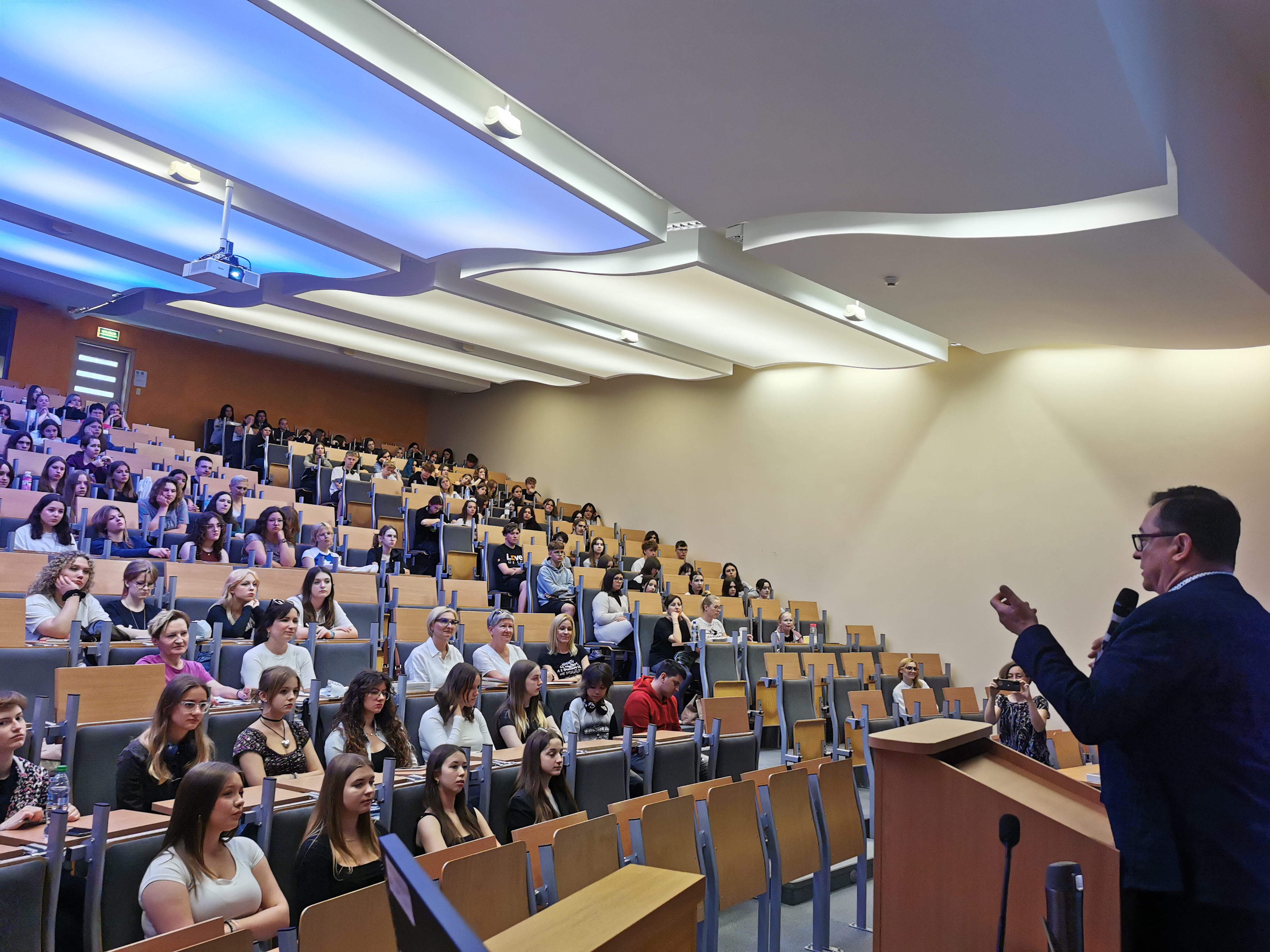 Wydarzenie rozpoczął wykład psychologa dr. Marcina Szulca, prof. UG pt. „Fake news i teorie spiskowe - jak nie dać się cyfrowej manipulacji”. Podczas wystąpienia prelegent przedstawił przyczyny i konsekwencje rozprzestrzeniania się różnych form dezinformacji, podkreślając istotną rolę krytycznego myślenia i edukacji medialnej w ich zwalczaniu. Żywiołowy sposób prowadzenia wykładu wraz z prezentacją uzupełnioną memami ilustrującymi zjawisko przyczyniły się do bardzo dobrego odbioru przez uczestników, którzy angażowali się w dyskusję z prof. UG Marcinem Szulcem nawet podczas przerw.
