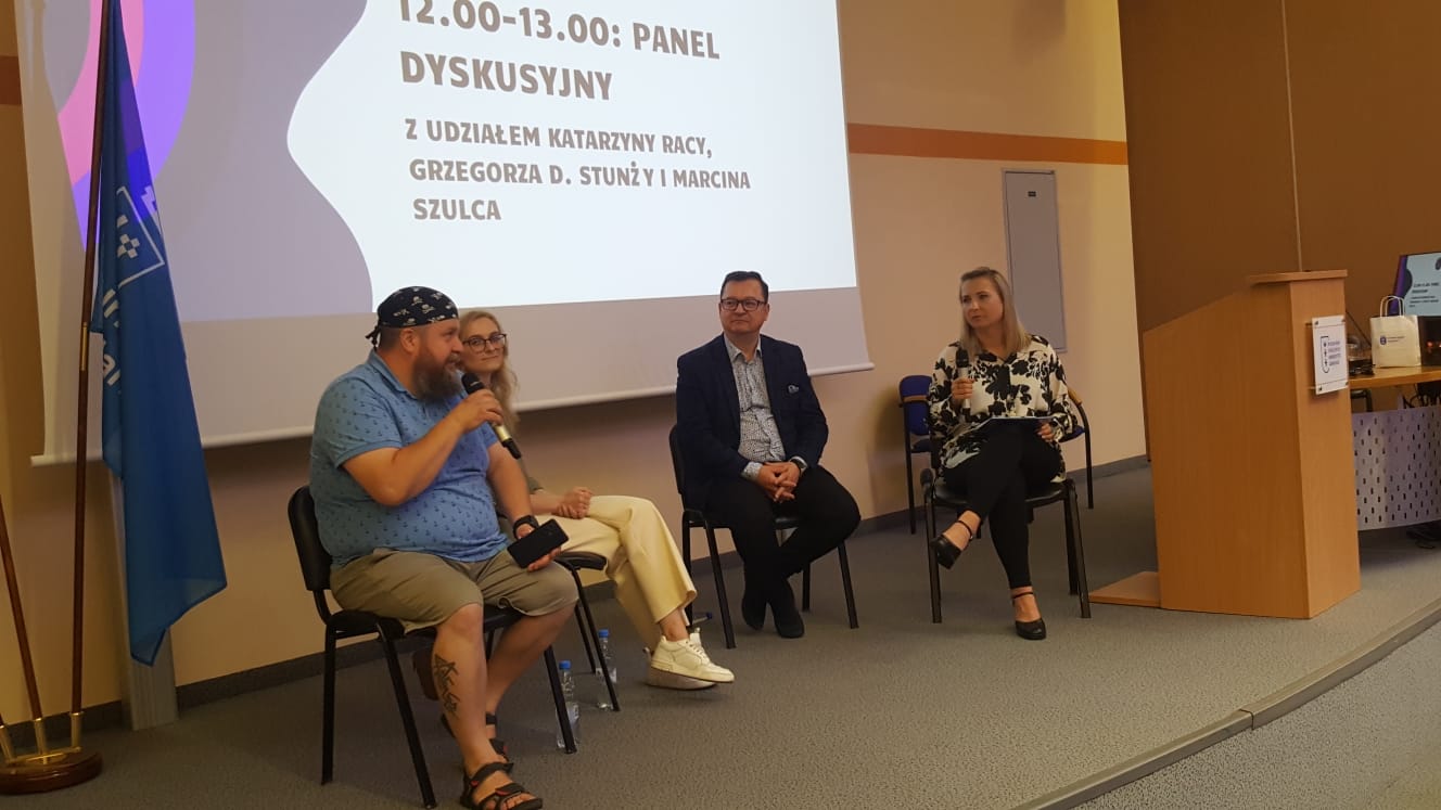 Kolejnym punktem spotkania był panel dyskusyjny prowadzony przez dr Magdalenę Iwanowską, w którym uczestniczyli również dr Marcin Szulc, prof. UG (Instytut Psychologii WNS UG), edukator medialny i Prezes Polskiego Towarzystwa Edukacji Medialnej dr Grzegorz Stunża (Instytut Pedagogiki WNS UG) oraz mgr Katarzyna Raca (Katedra Statystyki WZ UG), badaczka zajmująca się stosowaniem metod statystycznych w identyfikacji fake newsów. Paneliści i panelistki rozmawiali o roli użytkowników internetu i właścicieli mediów w zwalczaniu dezinformacji, edukacji przeciwko dezinformacji w szkołach oraz kształtowaniu kompetencji społecznych w celu obrony przed manipulacją.