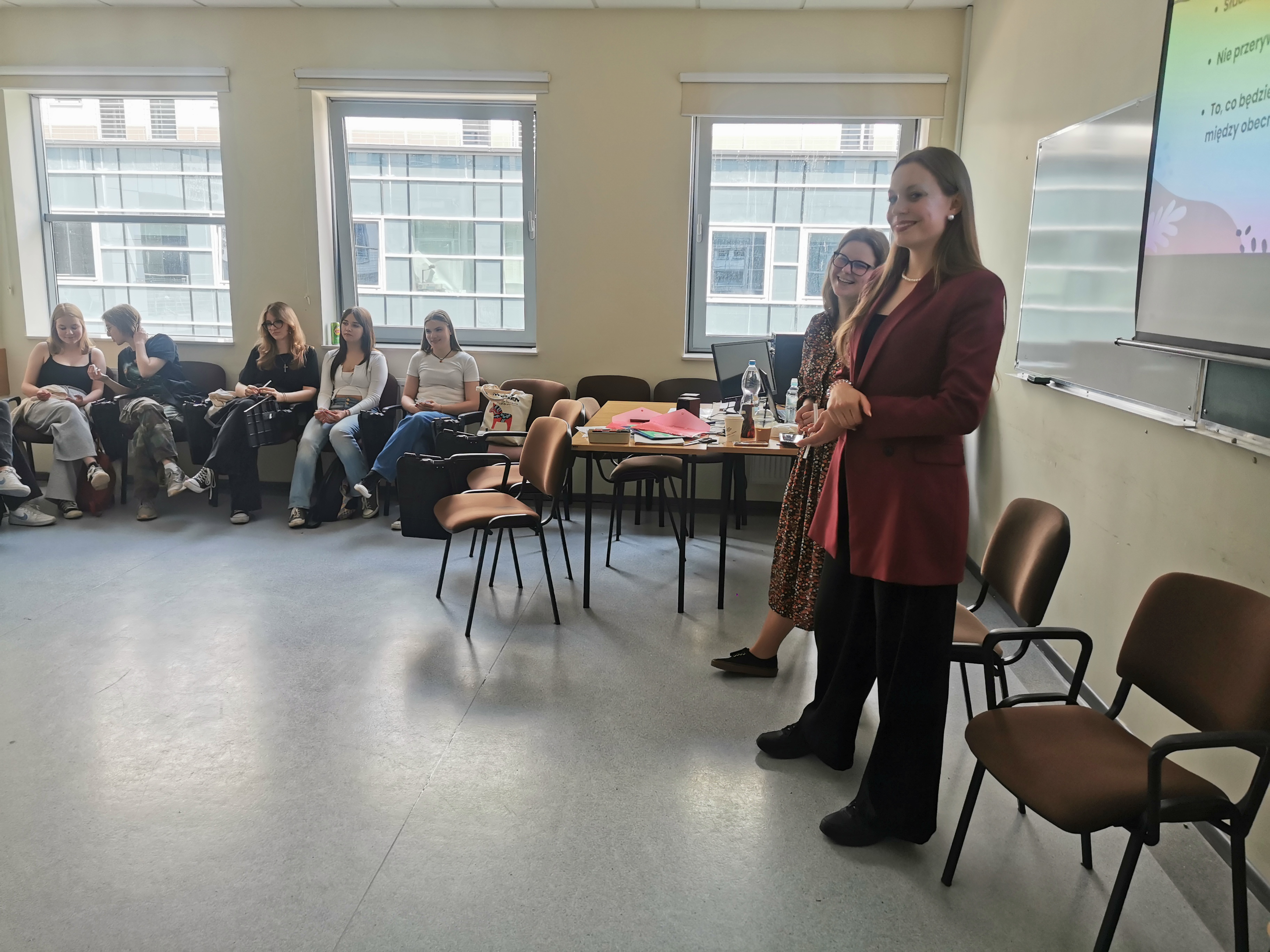 Po przerwie uczniowie i uczennice wzięli udział w warsztatach kompetencji społecznych, prowadzonych przez studentki i studentów starszych lat psychologii, w tym studentki z koła naukowego Brevi manu. Warsztaty poświęcone były m.in. umiejętnemu korzystaniu z technologii, asertywności, kreatywności i radzeniu sobie ze stresem.