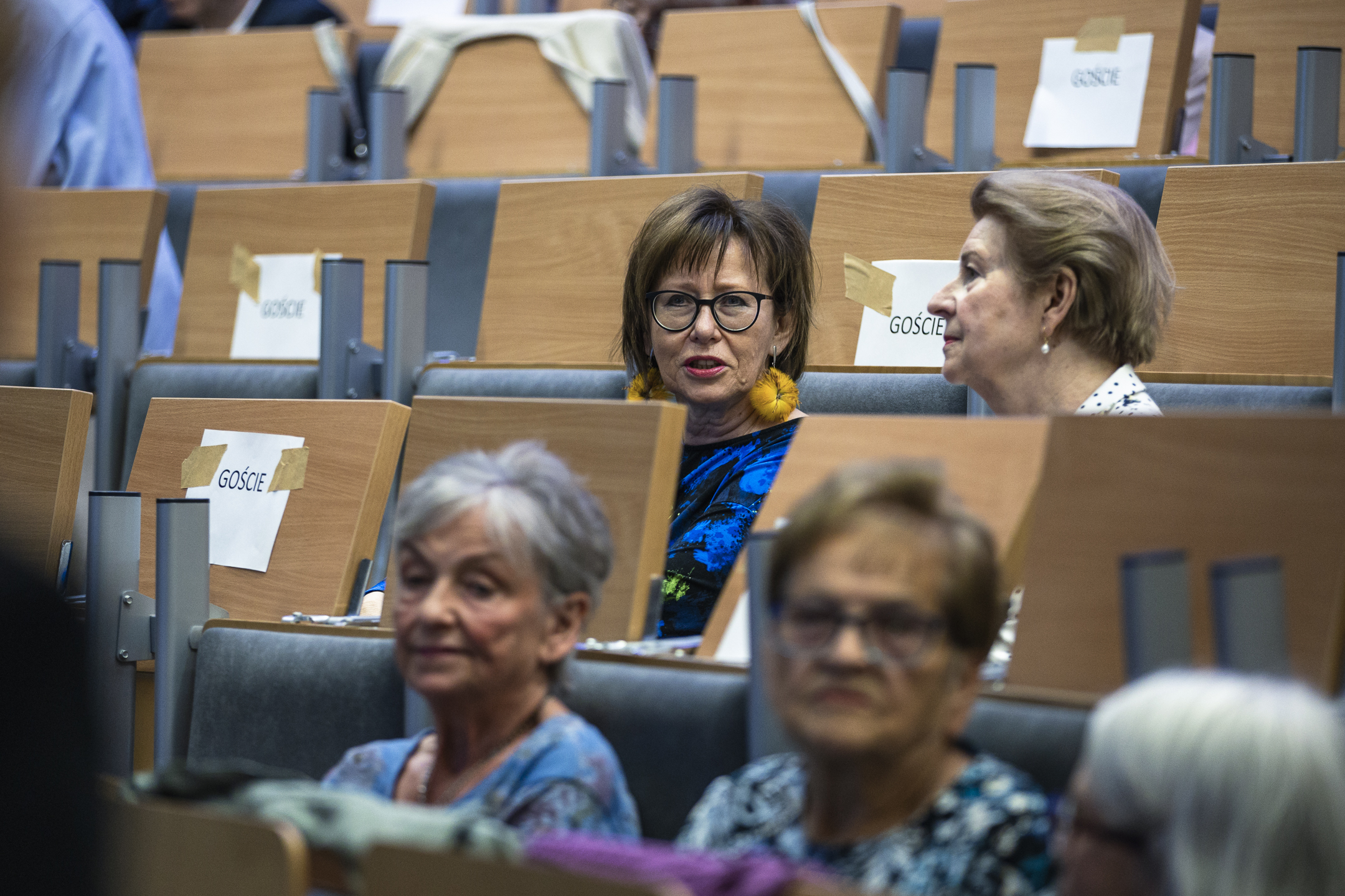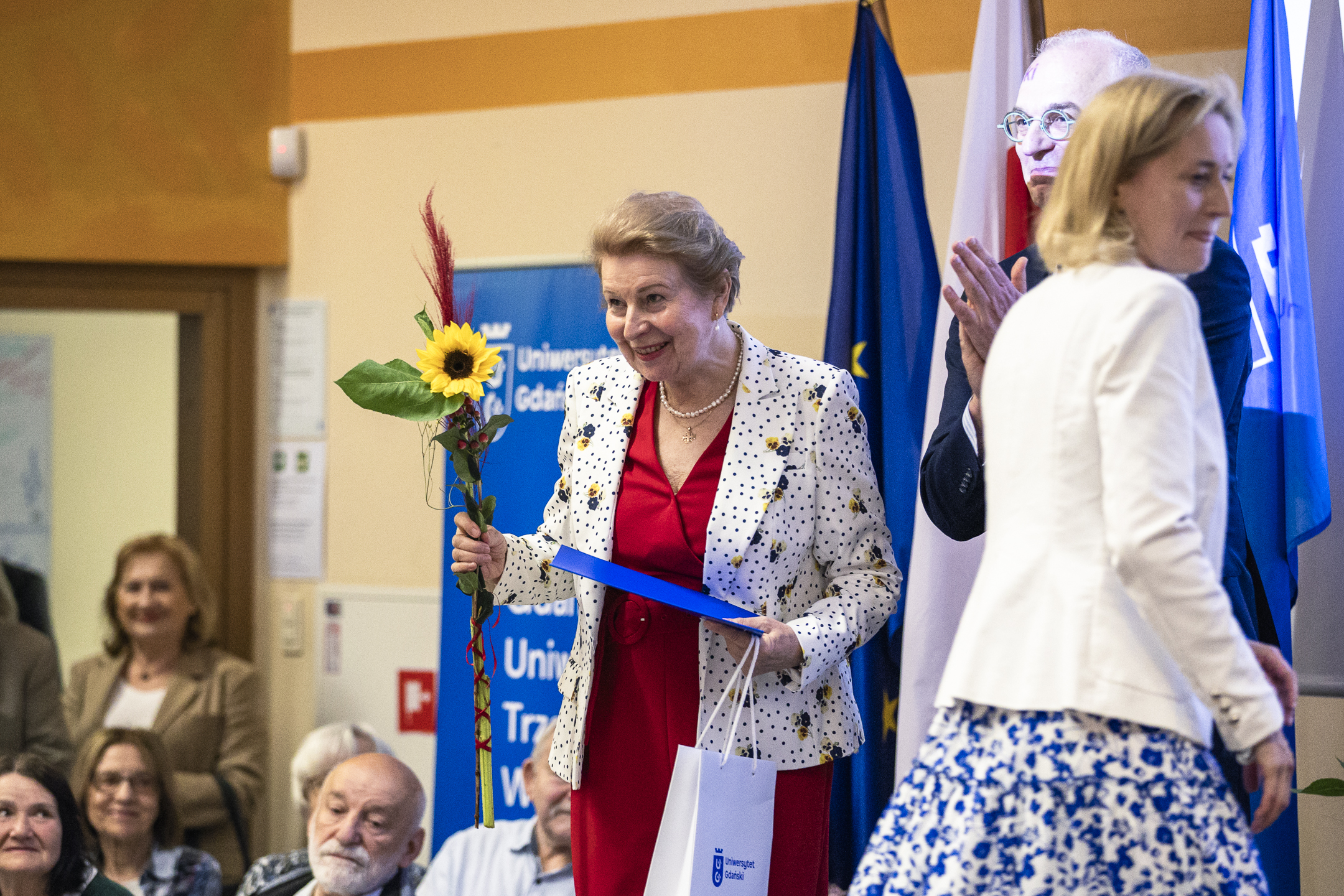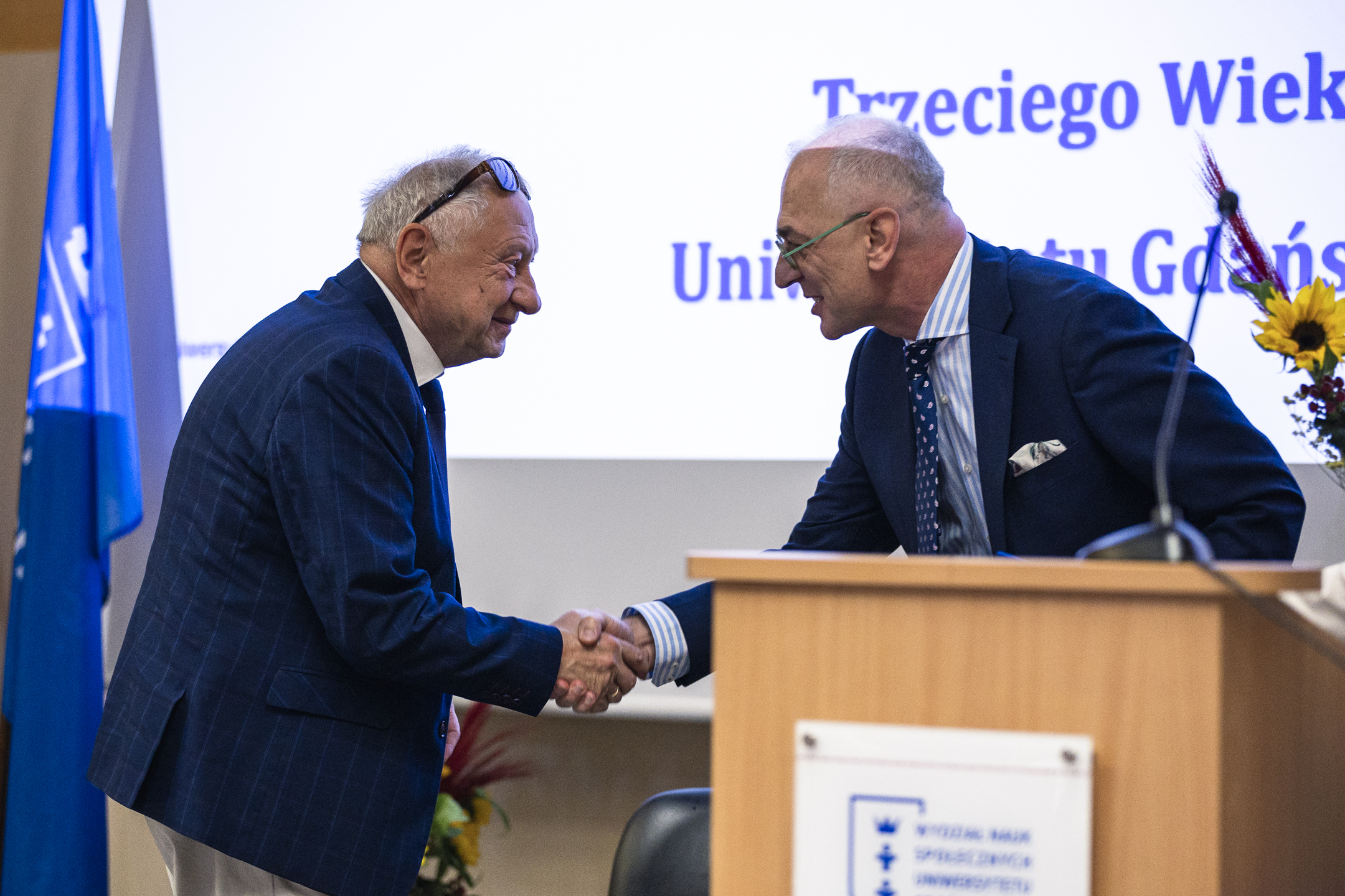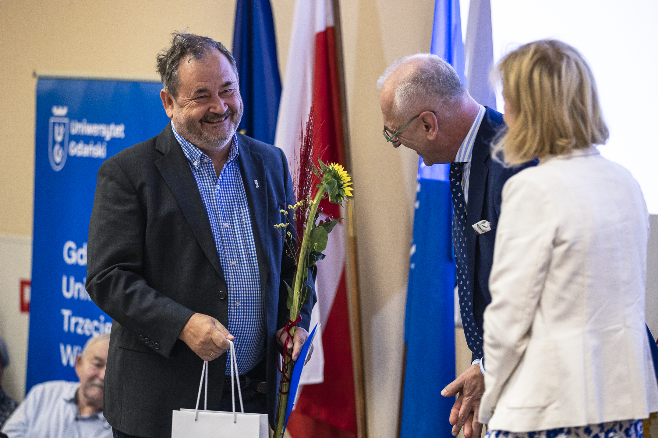 Następnie głos zabrał Prorektor ds. Studentów i Jakości Kształcenia dr hab. Arnold Kłonczyński, prof. UG. - 20 lat to bardzo dużo, chociaż z drugiej strony, na przykład z mojej perspektywy, to ledwo dojrzały człowiek. To taki student, któremu ciągle trzeba jeszcze pomagać gdy ma 20 lat - bez przewodnika na uniwersytecie sobie nie poradzi i bez wsparcia prodziekanów nie wiadomo, jak poradziłby sobie z zaliczeniami i podejściem do egzaminów. Właśnie na takim jesteśmy teraz etapie - ciągle młodzi, potrzebujący wsparcia i przestrzeni do tego, by realizować swoje pasje i zainteresowania nie tylko naukowe. 20 lat jest to więc jednak nie za dużo. Myślę, że za kolejnych 20 lat, kiedy będziemy już w sile wieku, spojrzymy na ten uniwersytet nieco inaczej. Przez te dwie dekady Uniwersytet Trzeciego Wieku bardzo się zmienił. Na państwa oczach zmienia się rzeczywistość, zmieniają się chociażby budynki. Myślę, że tworząc tę wspólnotę uniwersytecką, będziemy dbali o to, żeby rozwijała się jeszcze bardziej i żeby ta przestrzeń była coraz bardziej wykorzystywana i coraz lepiej służyła nam wszystkim - powiedział. Prorektor zwrócił się również do wykładowców GUTW: - W sposób szczególny, grupowo, chciałbym podziękować tym z państwa, którzy swój czas, energię i wiedzę chcą przekazywać słuchaczom Gdańskiego Uniwersytetu Trzeciego Wieku, czyli wykładowcom.