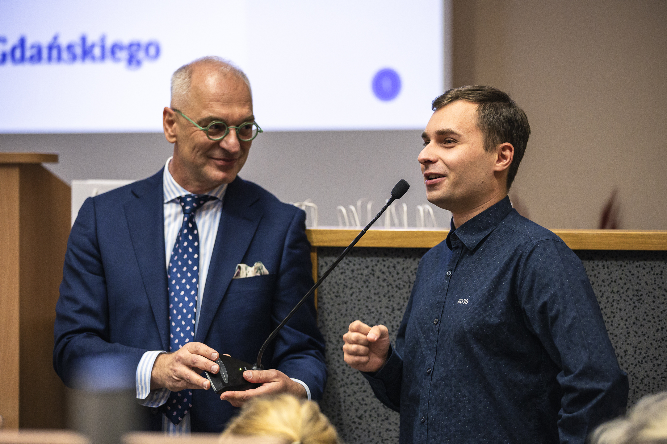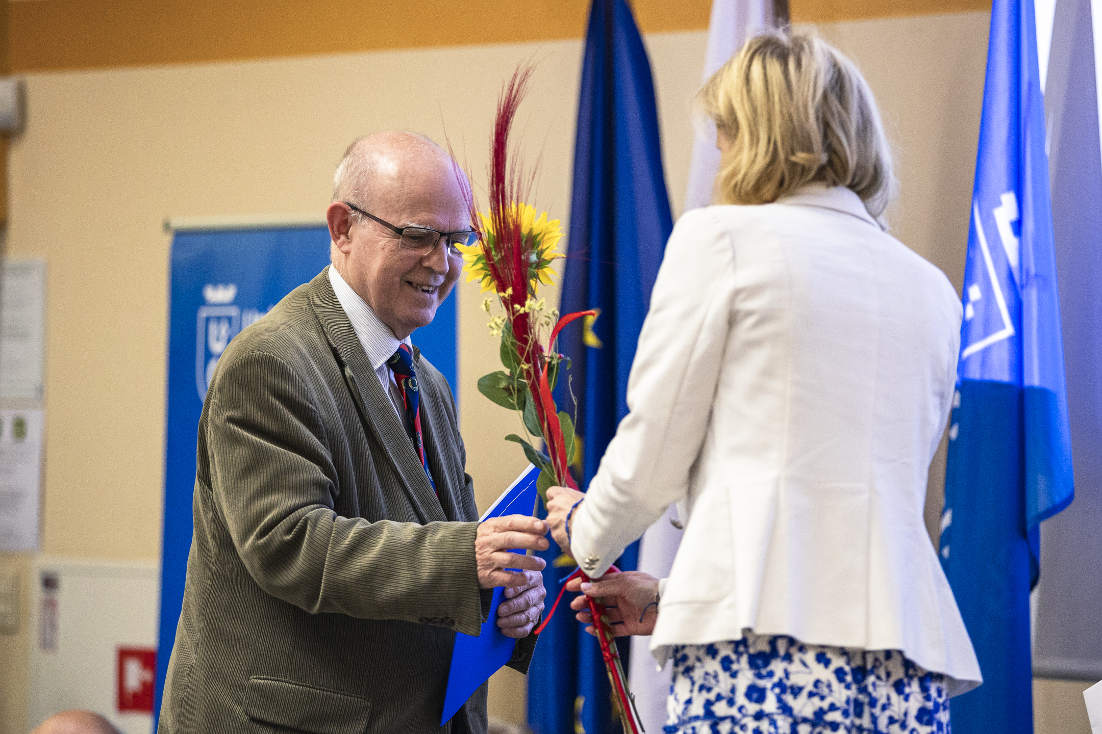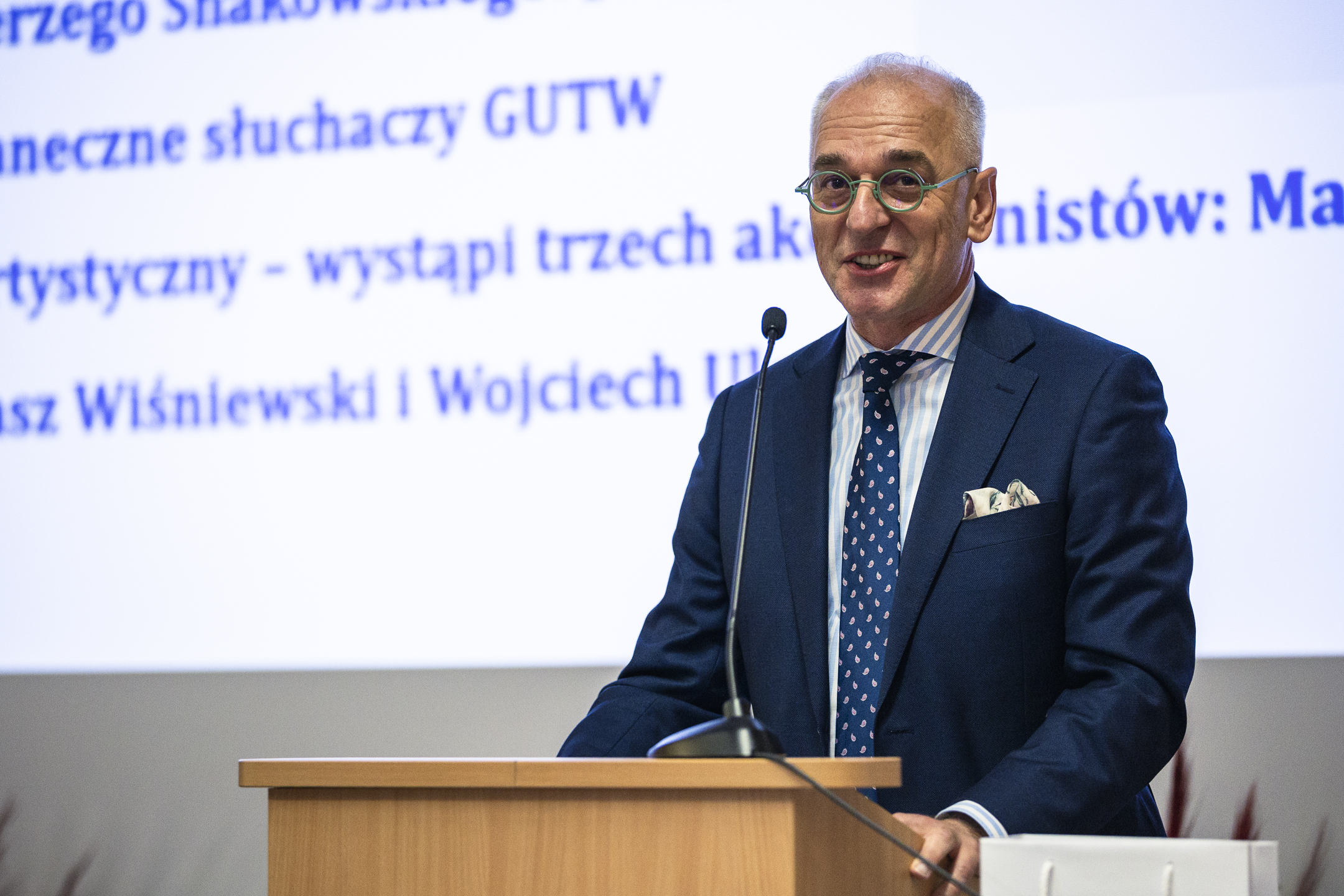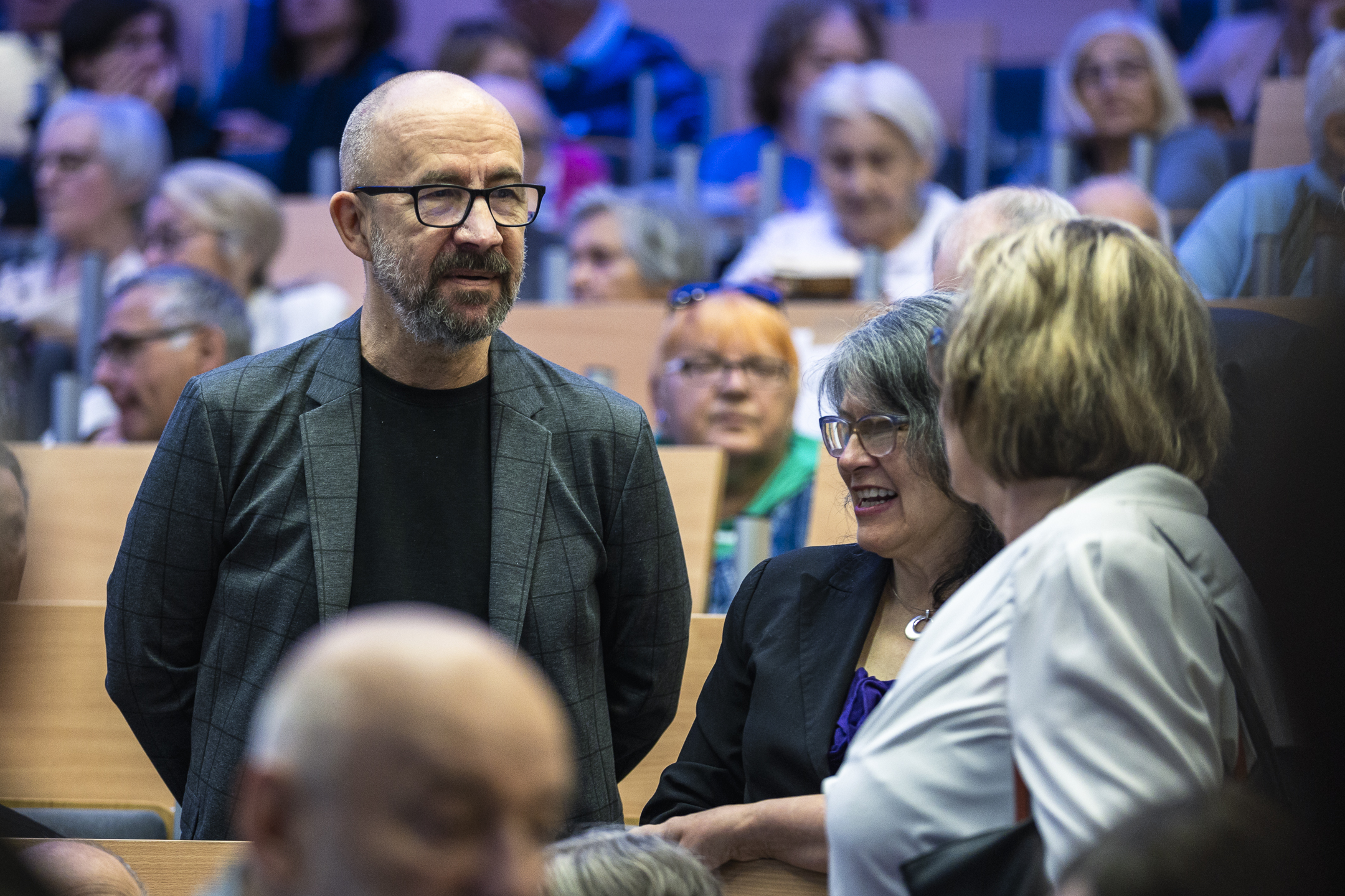 Następnie głos zabrał Prorektor ds. Studentów i Jakości Kształcenia dr hab. Arnold Kłonczyński, prof. UG. - 20 lat to bardzo dużo, chociaż z drugiej strony, na przykład z mojej perspektywy, to ledwo dojrzały człowiek. To taki student, któremu ciągle trzeba jeszcze pomagać gdy ma 20 lat - bez przewodnika na uniwersytecie sobie nie poradzi i bez wsparcia prodziekanów nie wiadomo, jak poradziłby sobie z zaliczeniami i podejściem do egzaminów. Właśnie na takim jesteśmy teraz etapie - ciągle młodzi, potrzebujący wsparcia i przestrzeni do tego, by realizować swoje pasje i zainteresowania nie tylko naukowe. 20 lat jest to więc jednak nie za dużo. Myślę, że za kolejnych 20 lat, kiedy będziemy już w sile wieku, spojrzymy na ten uniwersytet nieco inaczej. Przez te dwie dekady Uniwersytet Trzeciego Wieku bardzo się zmienił. Na państwa oczach zmienia się rzeczywistość, zmieniają się chociażby budynki. Myślę, że tworząc tę wspólnotę uniwersytecką, będziemy dbali o to, żeby rozwijała się jeszcze bardziej i żeby ta przestrzeń była coraz bardziej wykorzystywana i coraz lepiej służyła nam wszystkim - powiedział. Prorektor zwrócił się również do wykładowców GUTW: - W sposób szczególny, grupowo, chciałbym podziękować tym z państwa, którzy swój czas, energię i wiedzę chcą przekazywać słuchaczom Gdańskiego Uniwersytetu Trzeciego Wieku, czyli wykładowcom.
