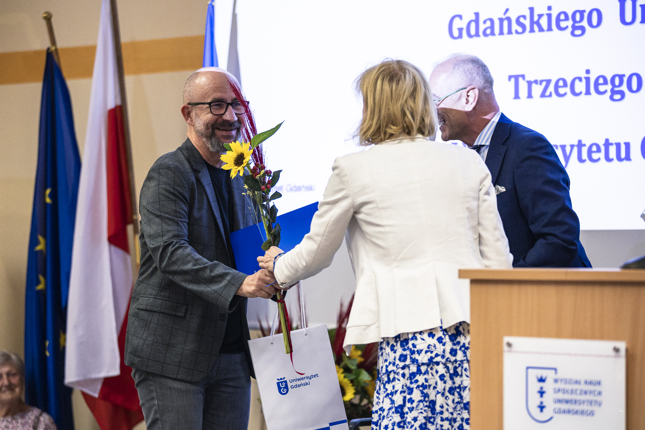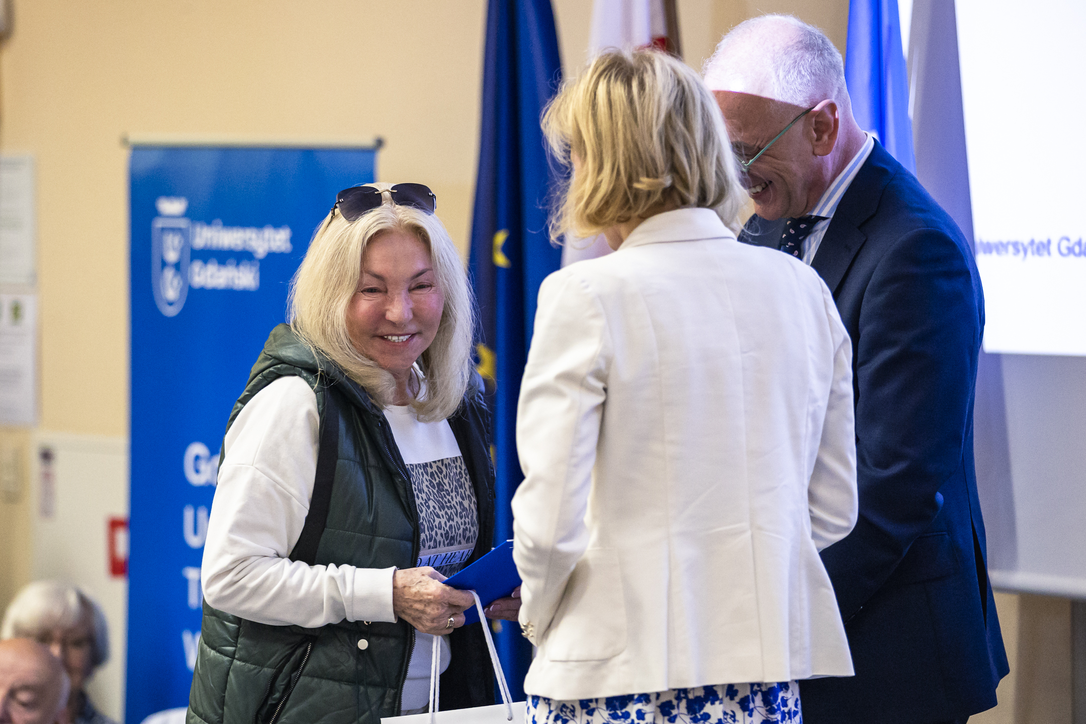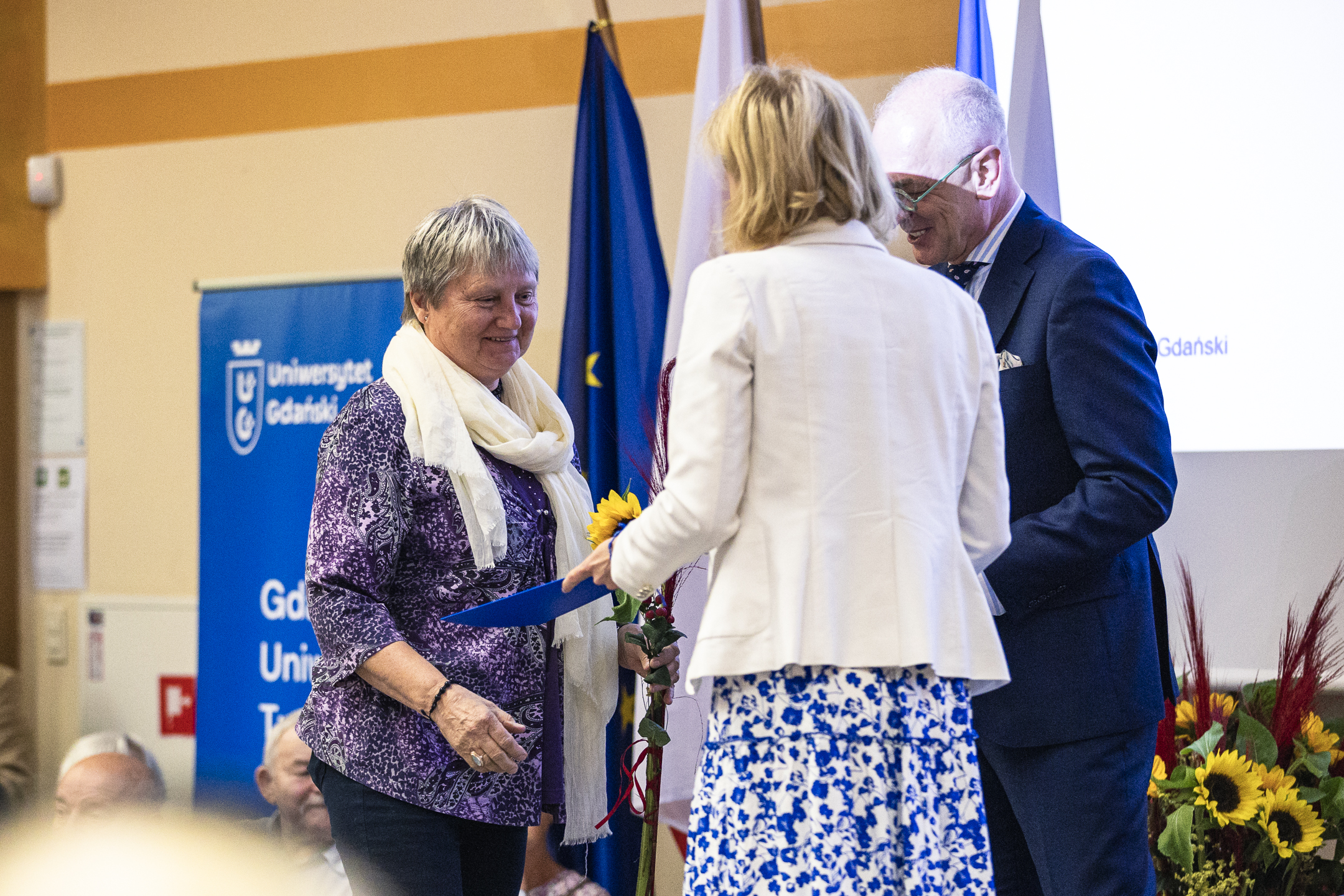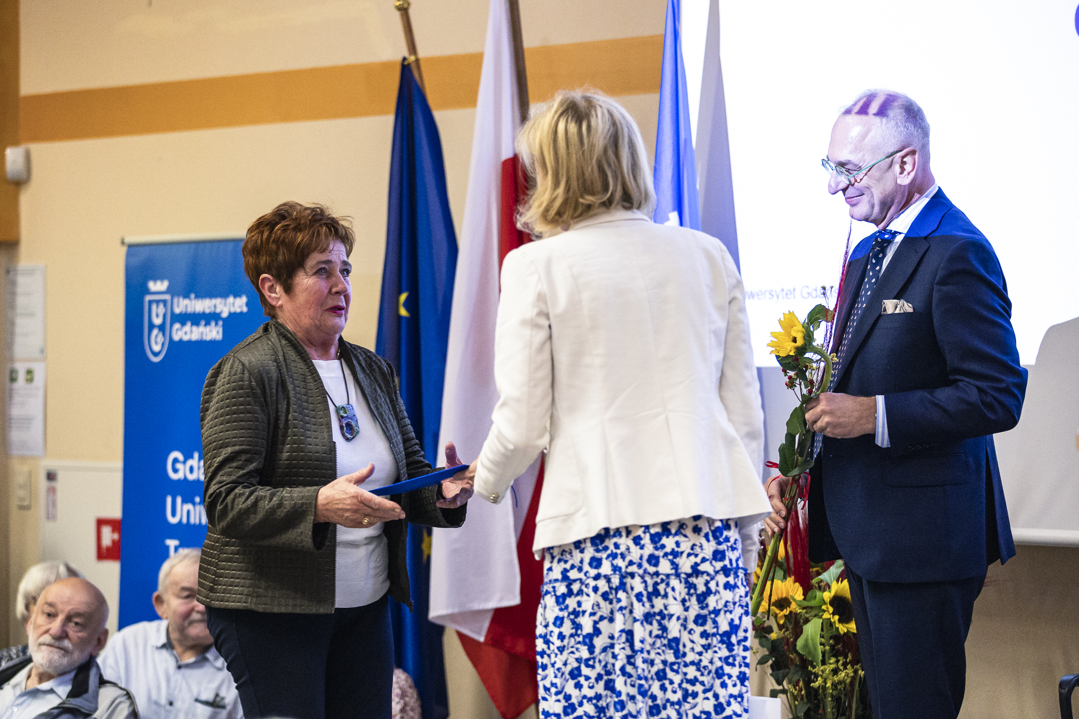 Kolejnym punktem uroczystości było wręczenie przez Prorektora ds. Studentów i Jakości Kształcenia prof. UG Arnolda Kłonczyńskiego oraz Kierowniczkę GUTW Joannę Szemraj dyplomów wykładowcom. Wyróżnienia odebrali: