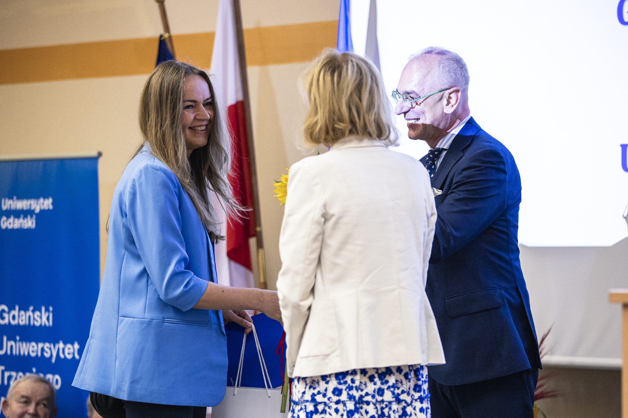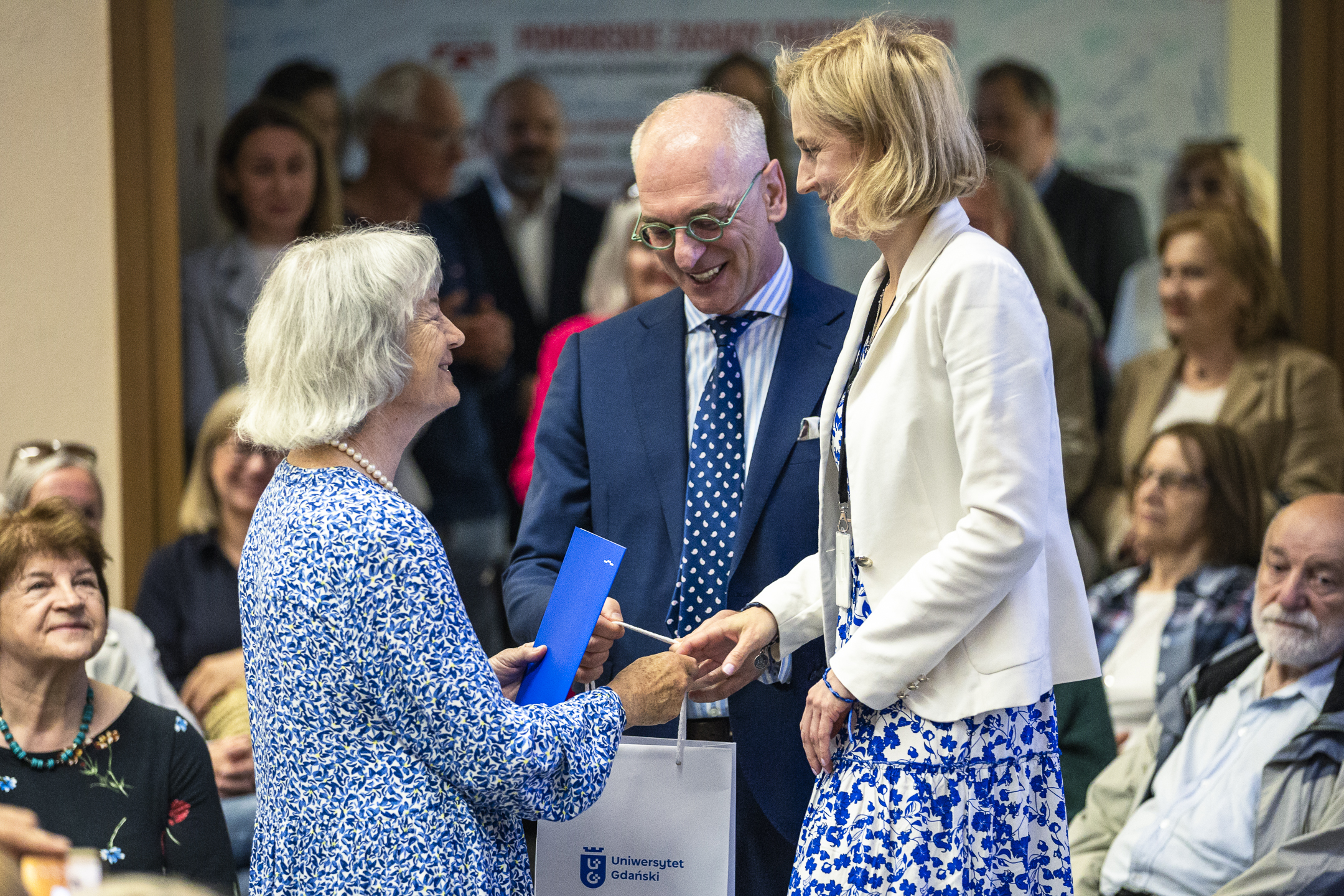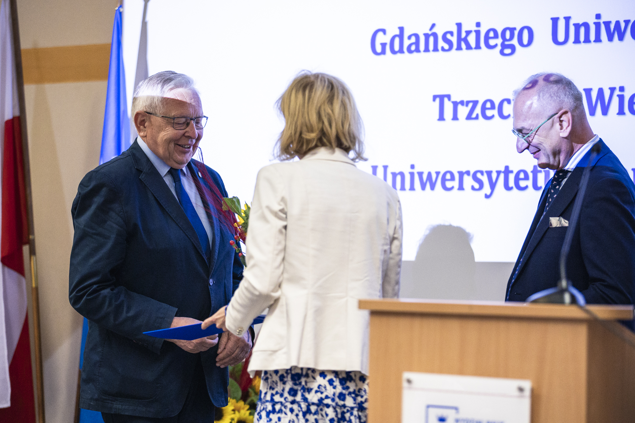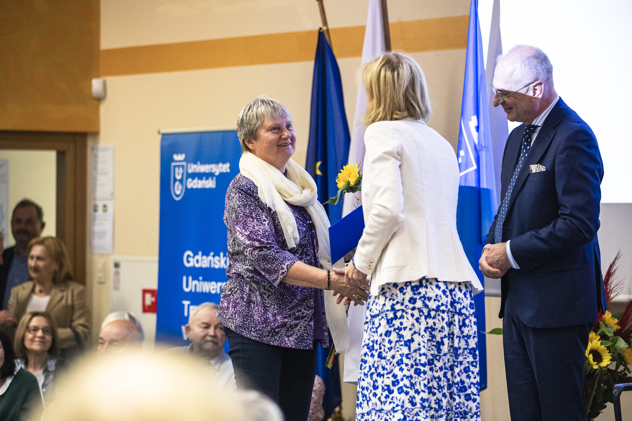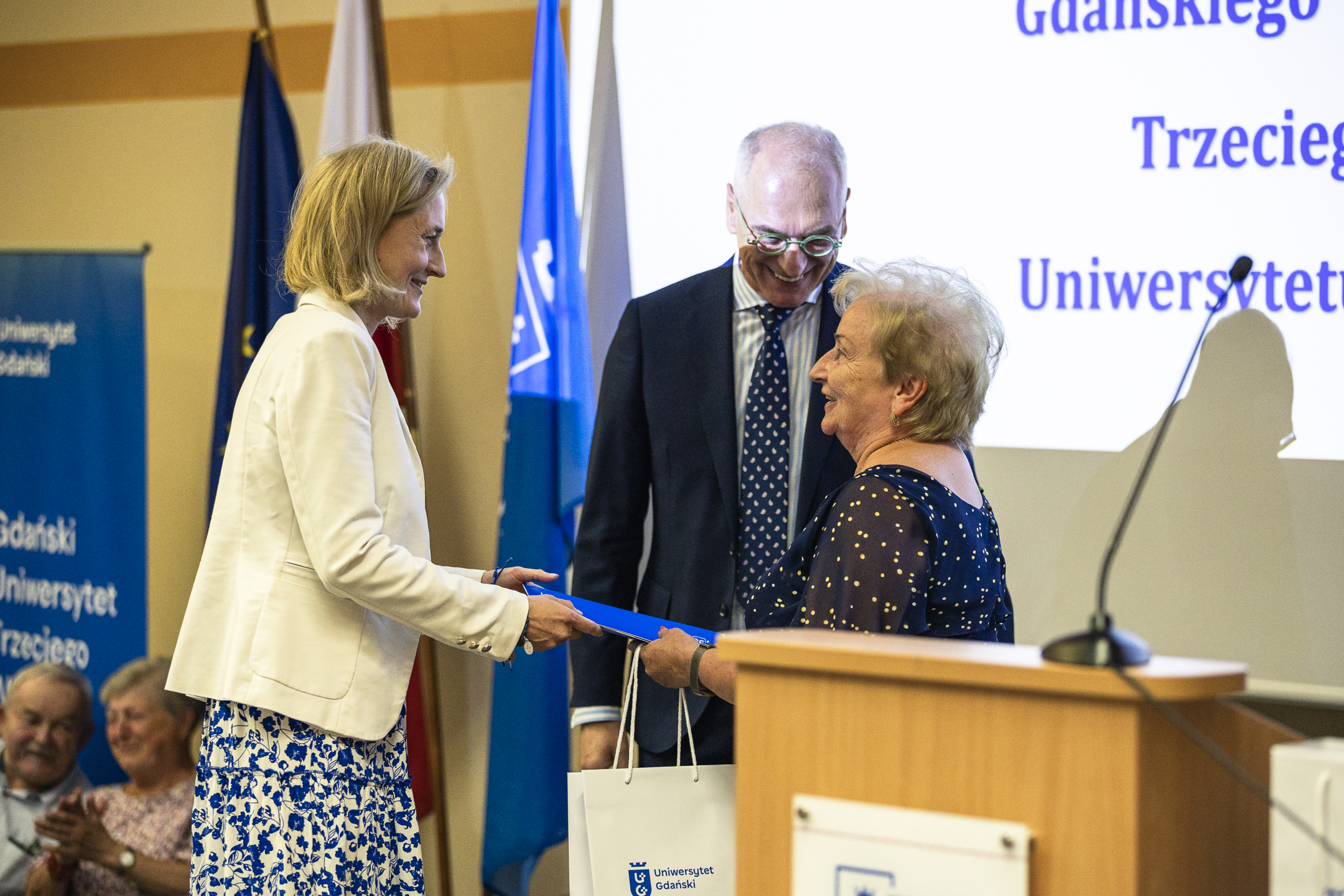 Kolejnym punktem uroczystości było wręczenie przez Prorektora ds. Studentów i Jakości Kształcenia prof. UG Arnolda Kłonczyńskiego oraz Kierowniczkę GUTW Joannę Szemraj dyplomów wykładowcom. Wyróżnienia odebrali: