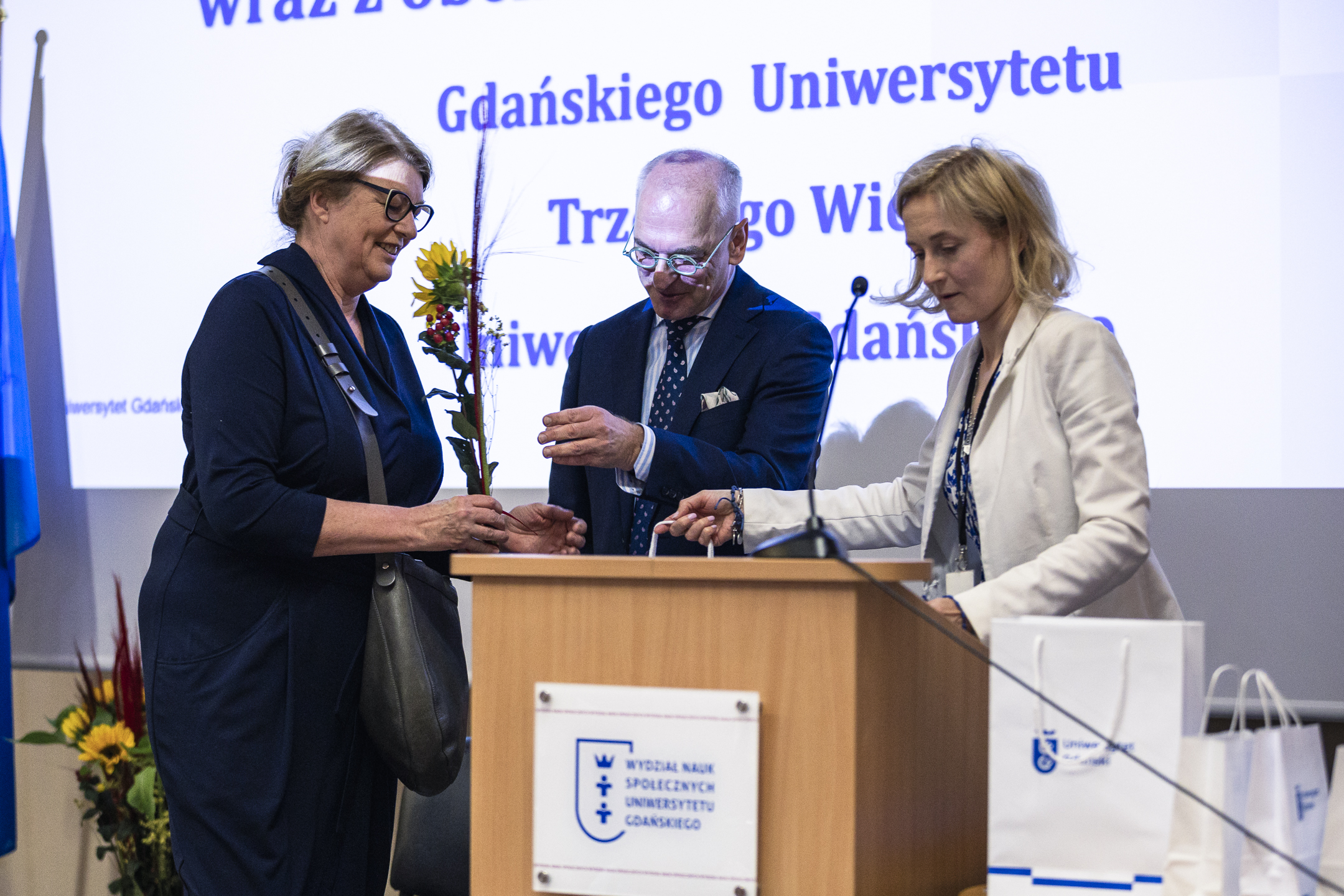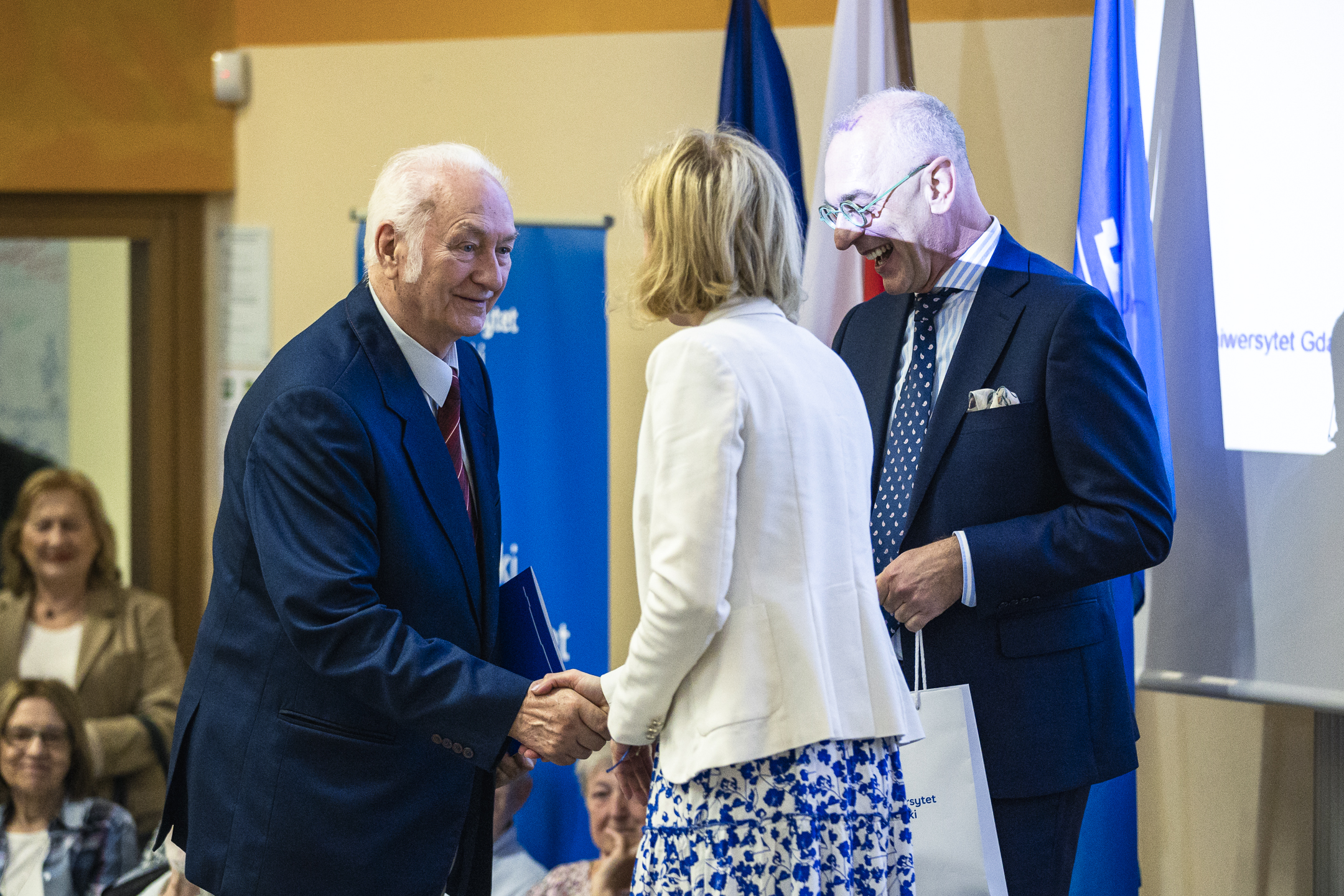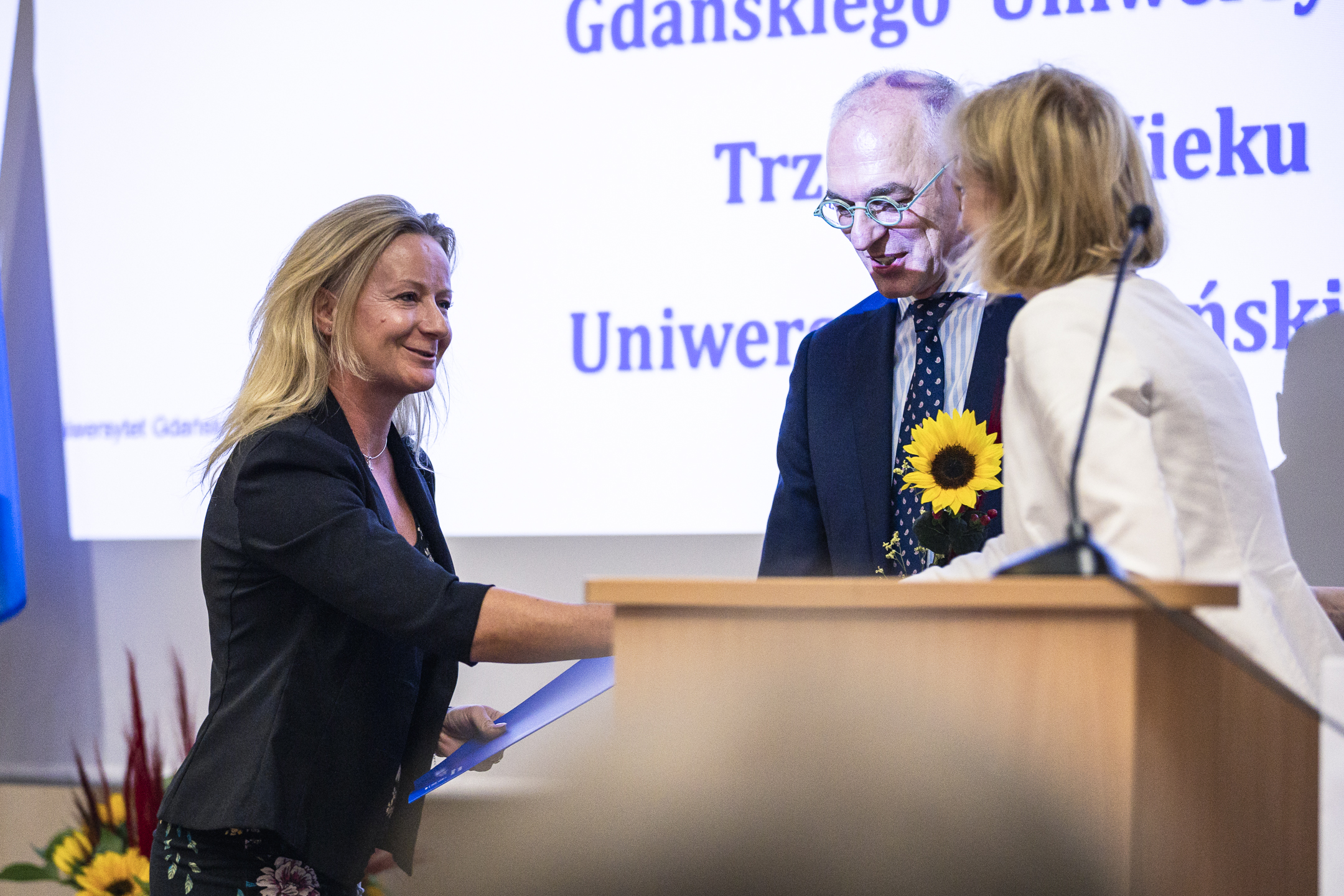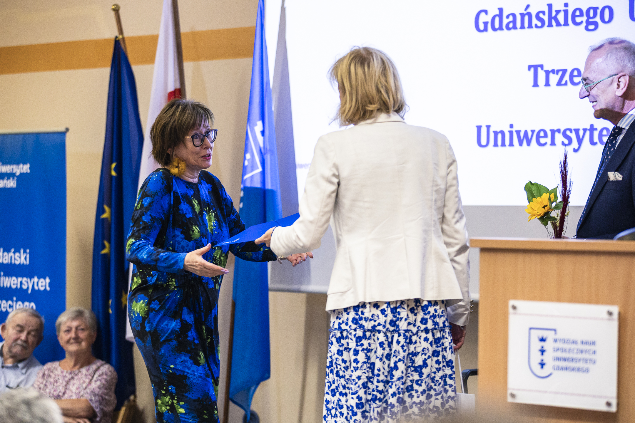 Kolejnym punktem uroczystości było wręczenie przez Prorektora ds. Studentów i Jakości Kształcenia prof. UG Arnolda Kłonczyńskiego oraz Kierowniczkę GUTW Joannę Szemraj dyplomów wykładowcom. Wyróżnienia odebrali: