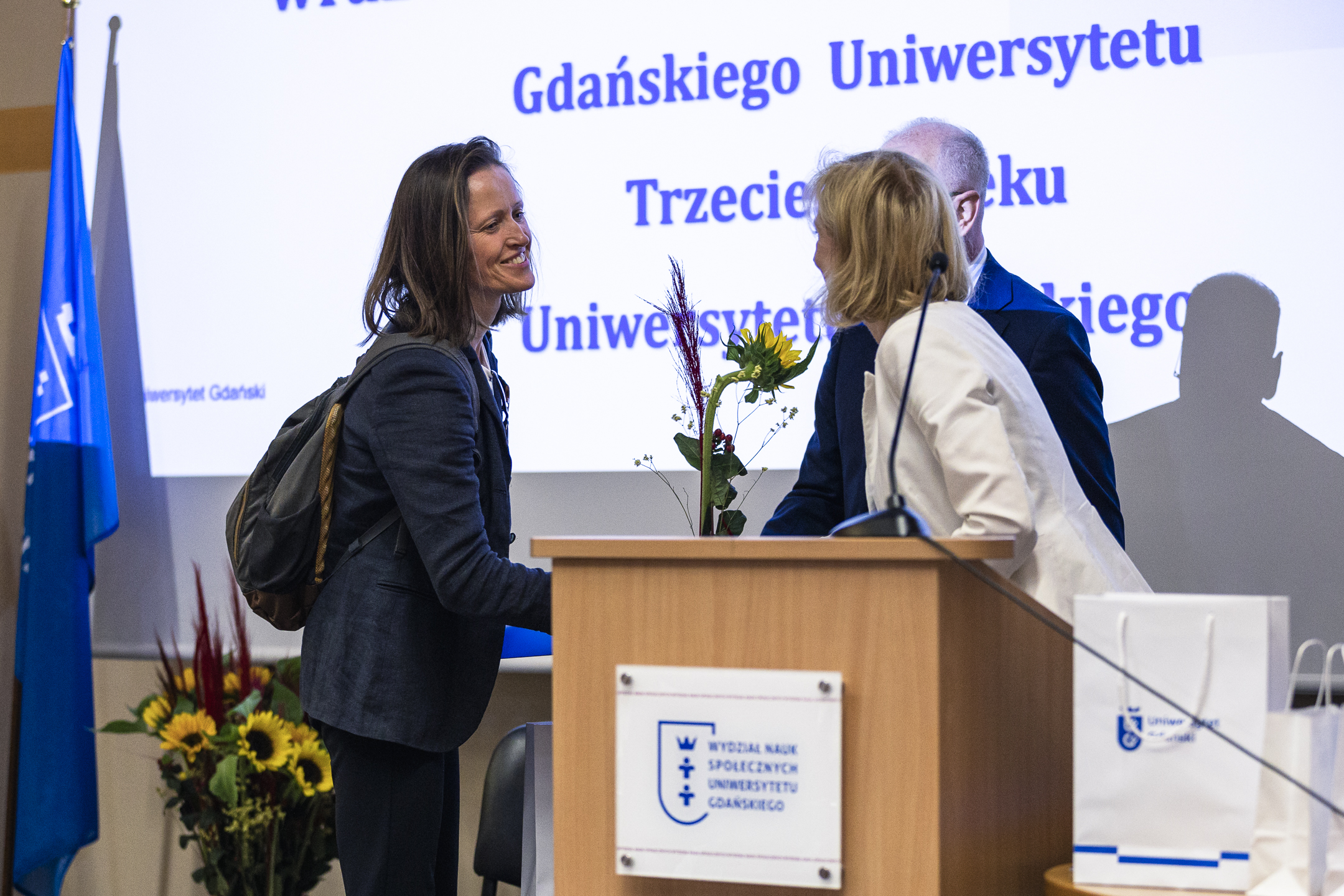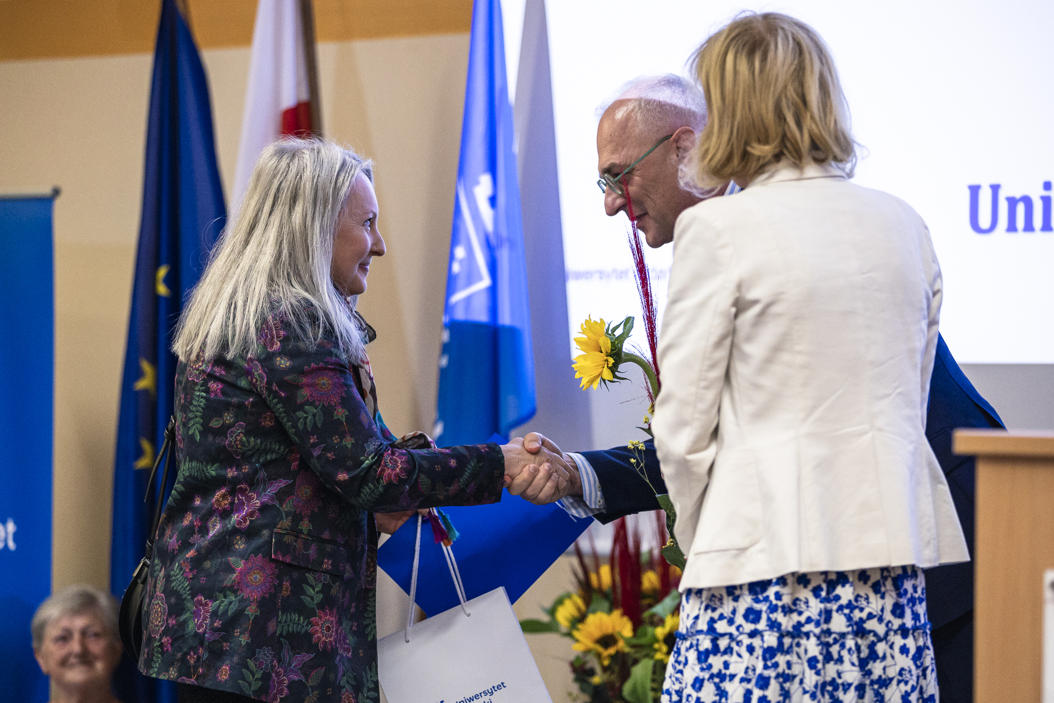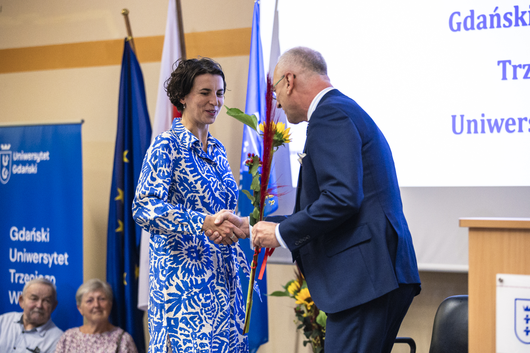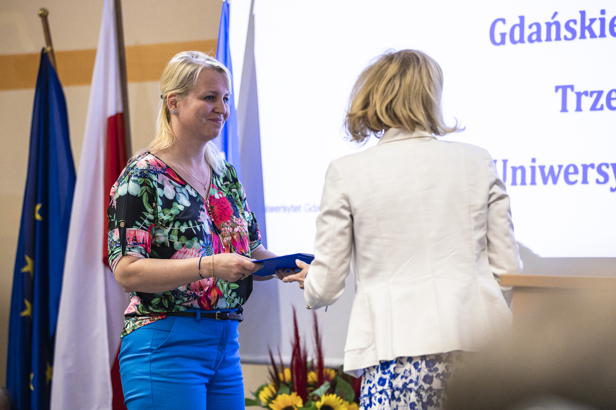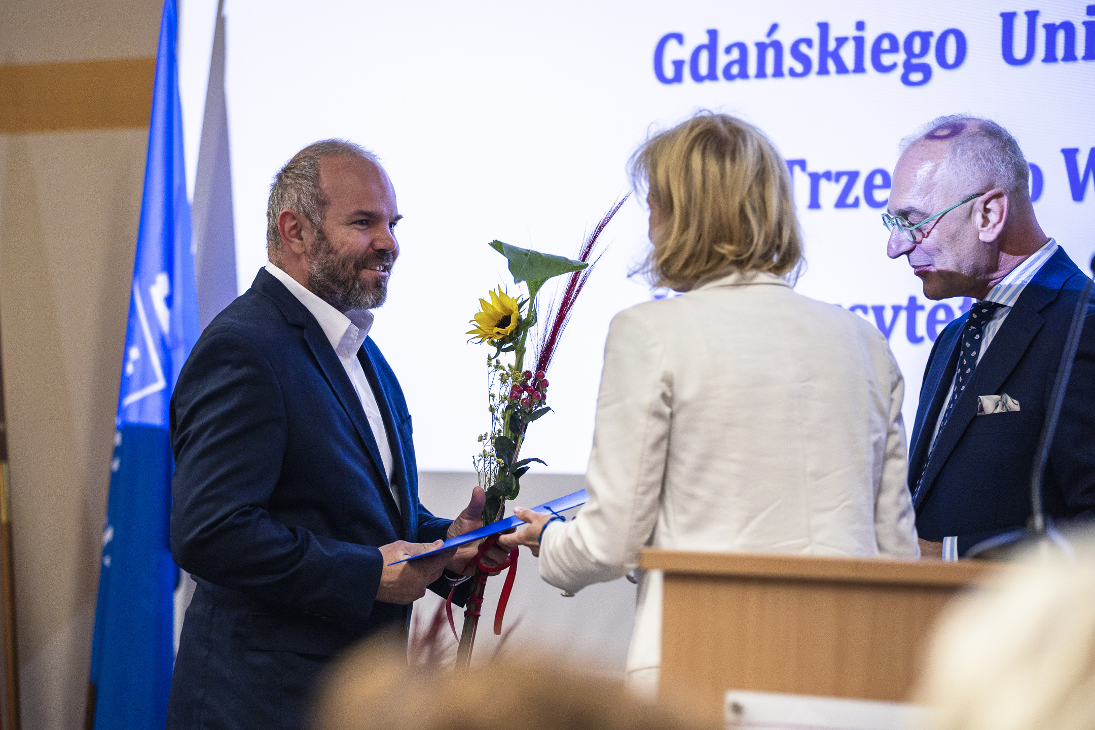 Kolejnym punktem uroczystości było wręczenie przez Prorektora ds. Studentów i Jakości Kształcenia prof. UG Arnolda Kłonczyńskiego oraz Kierowniczkę GUTW Joannę Szemraj dyplomów wykładowcom. Wyróżnienia odebrali: