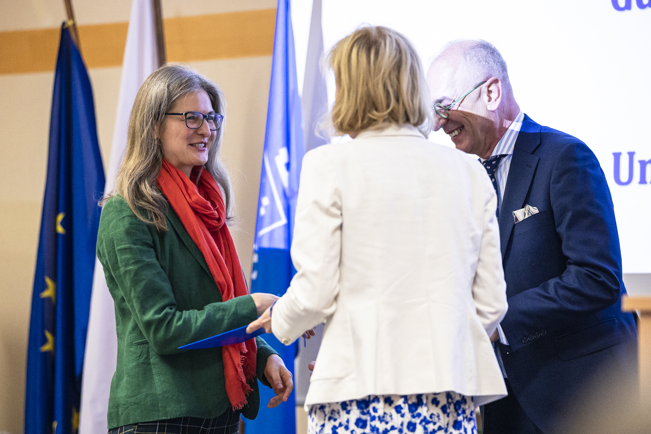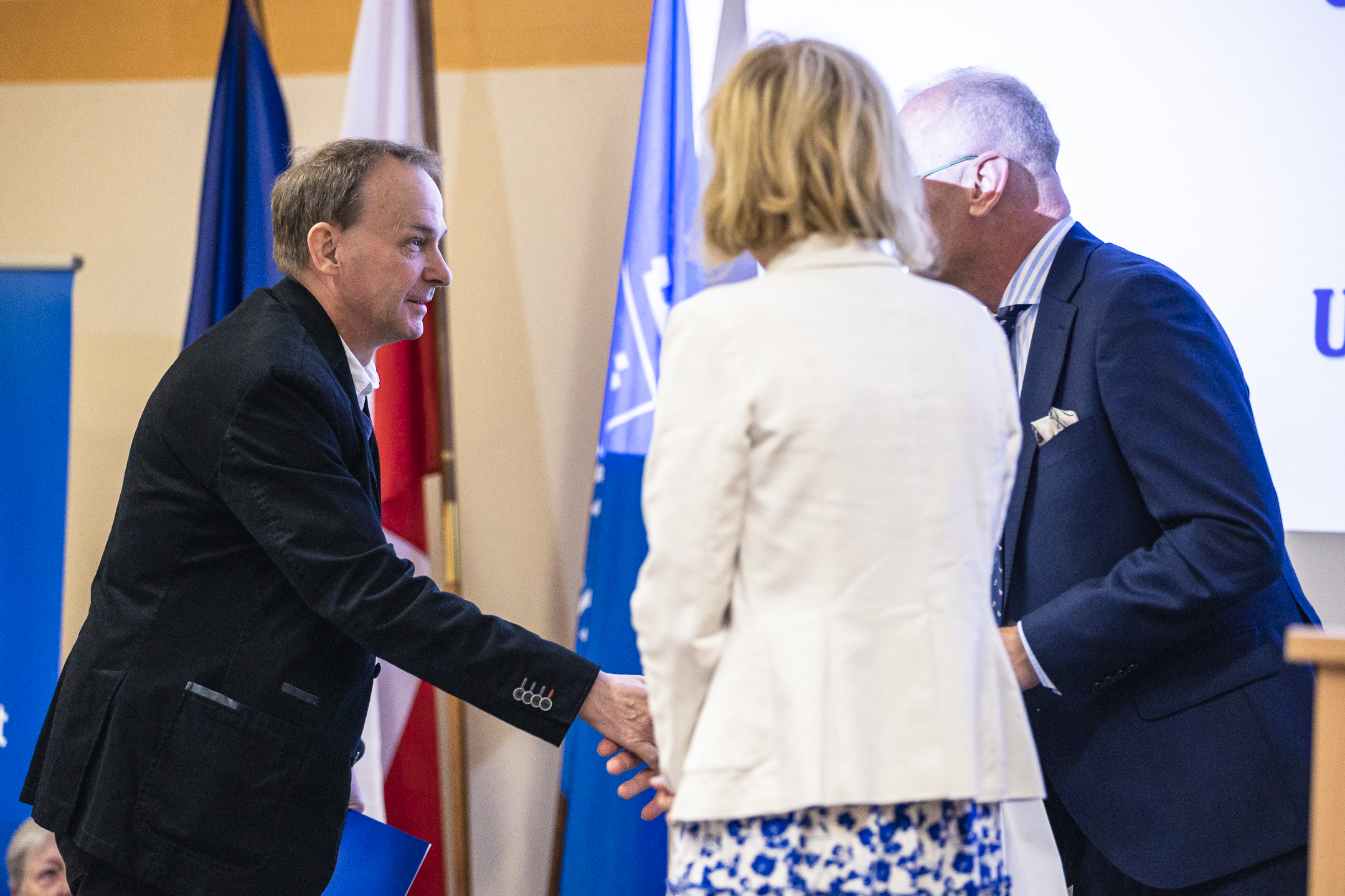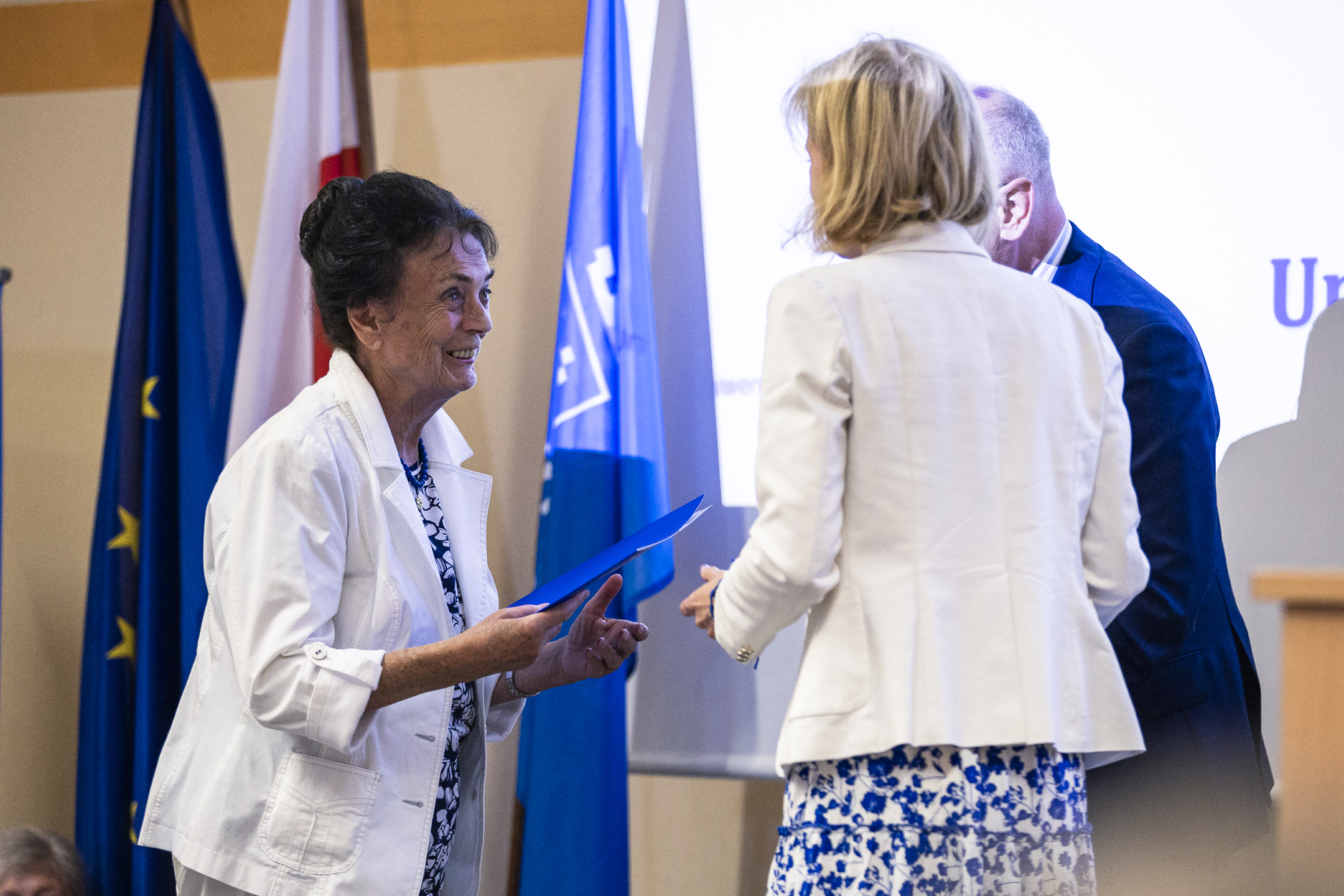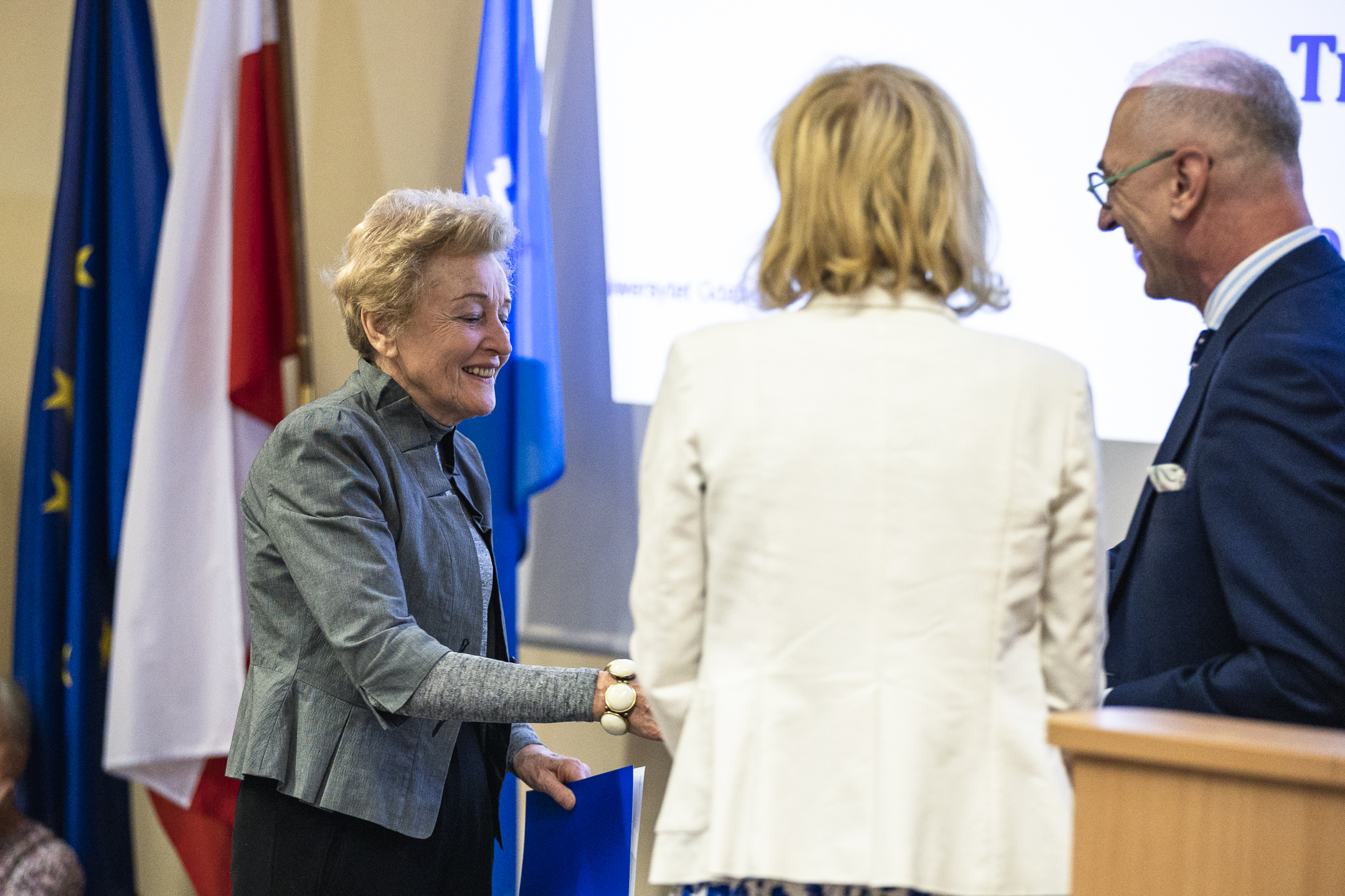 Kolejnym punktem uroczystości było wręczenie przez Prorektora ds. Studentów i Jakości Kształcenia prof. UG Arnolda Kłonczyńskiego oraz Kierowniczkę GUTW Joannę Szemraj dyplomów wykładowcom. Wyróżnienia odebrali: