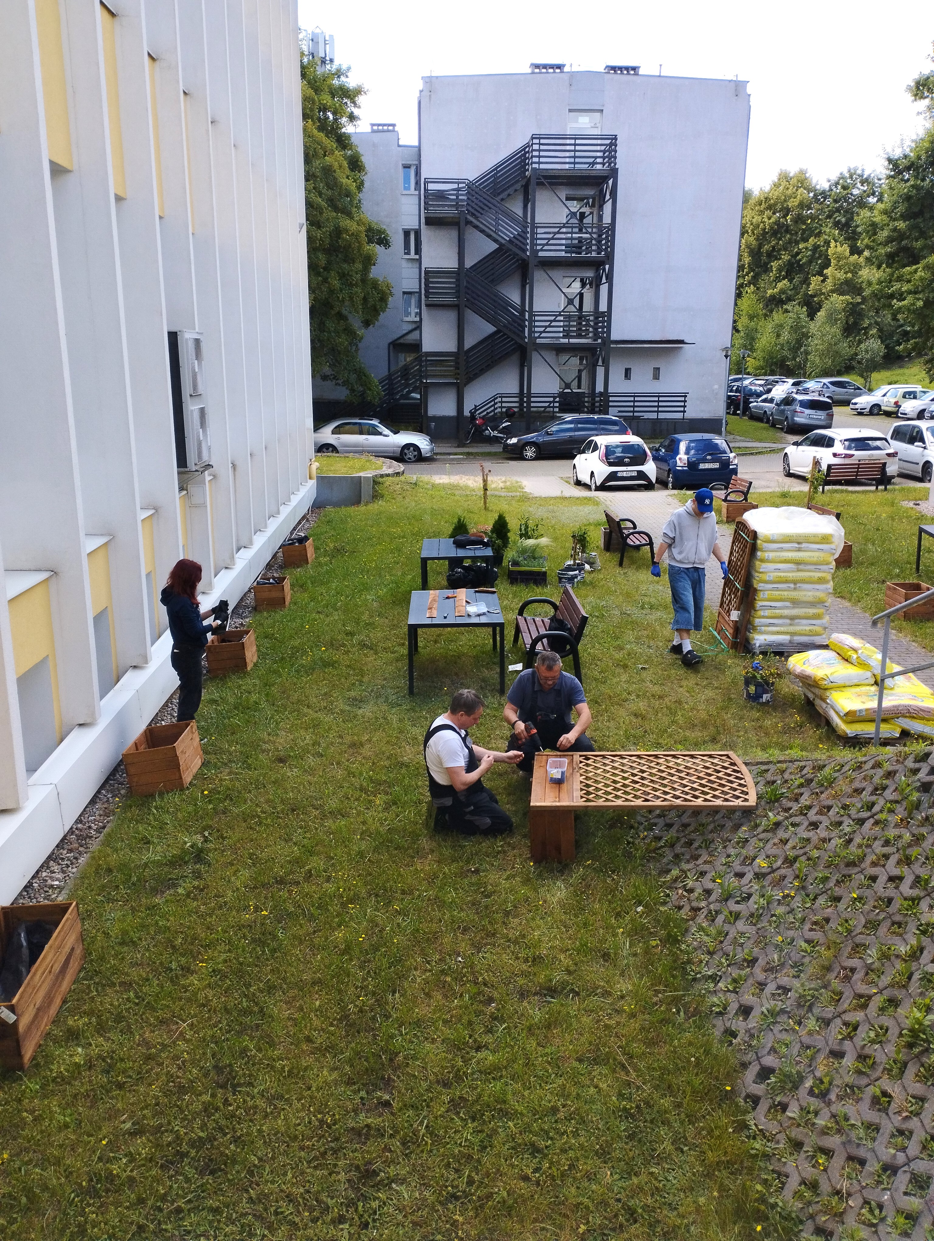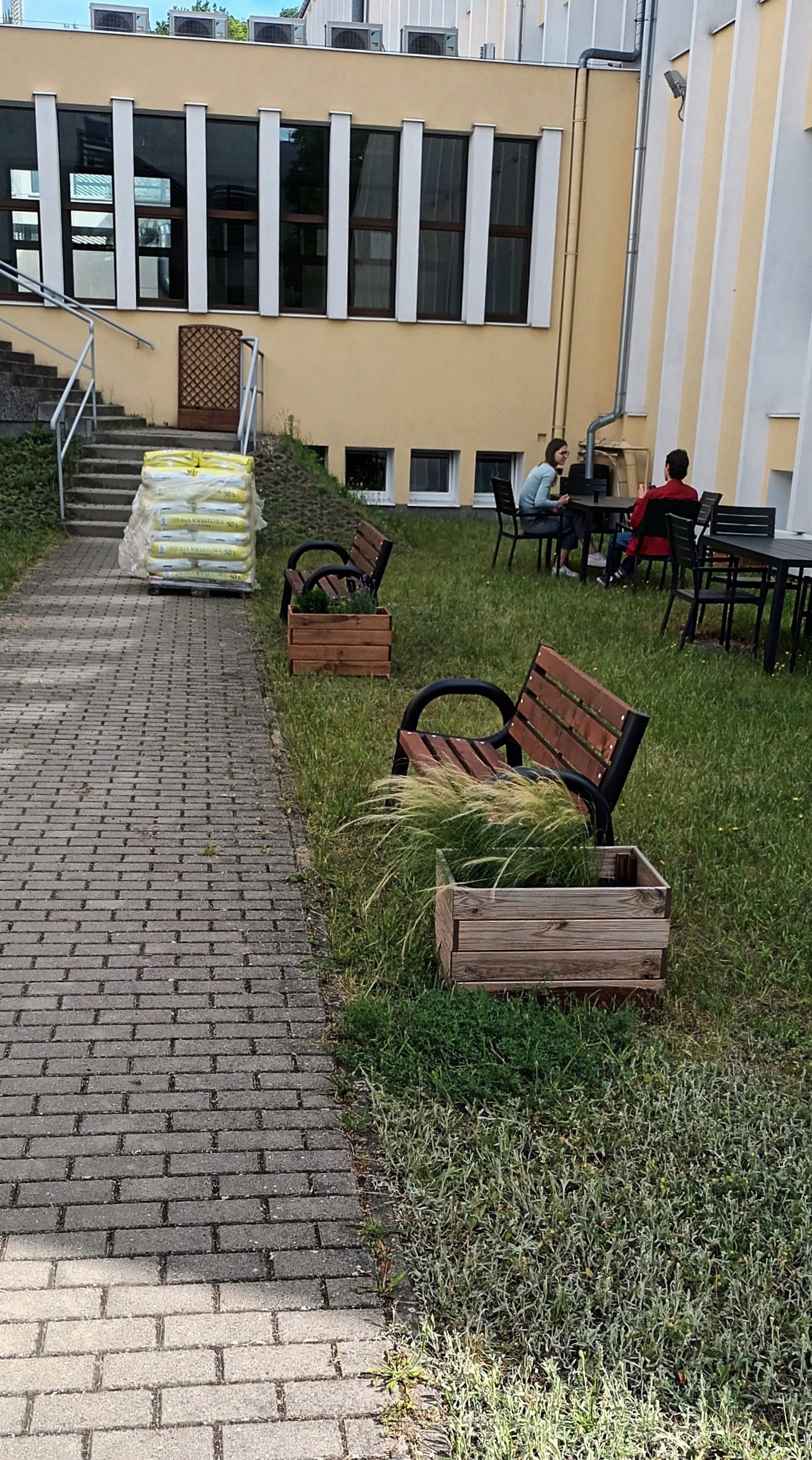 Za realizację tego projektu odpowiada również kierownik administracyjny obiektu Marek Nuszel,. Zadanie znajduje się w zaawansowanym stadium realizacji i powinno zostać ukończone w lipcu br. W ramach wyposażenia strefy dotychczas zakupione zostały stoły, krzesła, ławki ogrodowe, rośliny - które posadzone zostały już na terenie parku - donice, pergole i beczka do łapania deszczówki. W najbliższym czasie planowany jest montaż zbieracza wody z deszczówki oraz girland wraz z ich montażem. W aranżację strefy włączyli się również aktywnie sami studenci WE, którzy zabiegali o powstanie tej przestrzeni. Dokonali oni m.in. zakupu roślin i aktywnie uczestniczyli w ich nasadzeniu na terenie powstającej strefy.