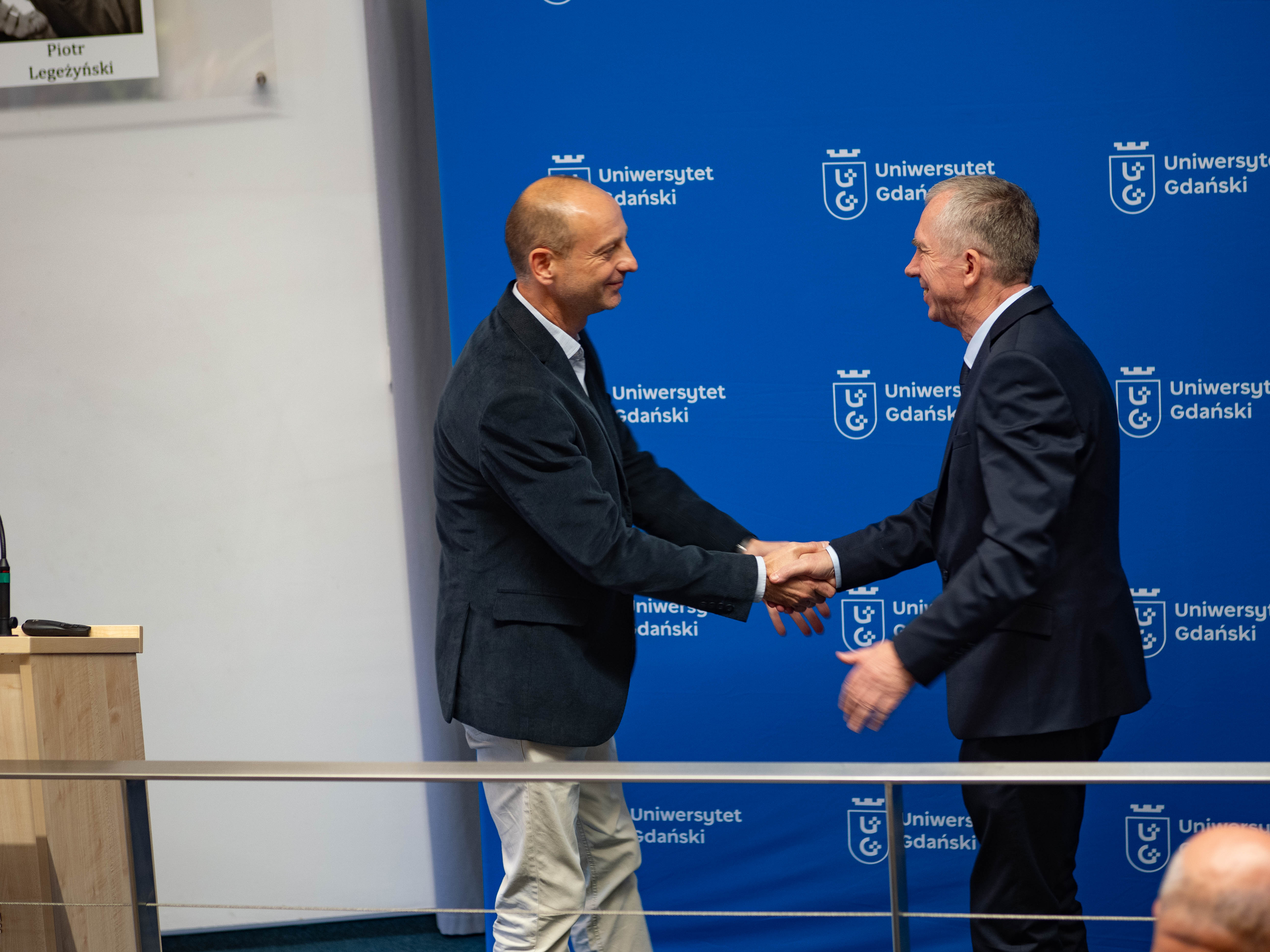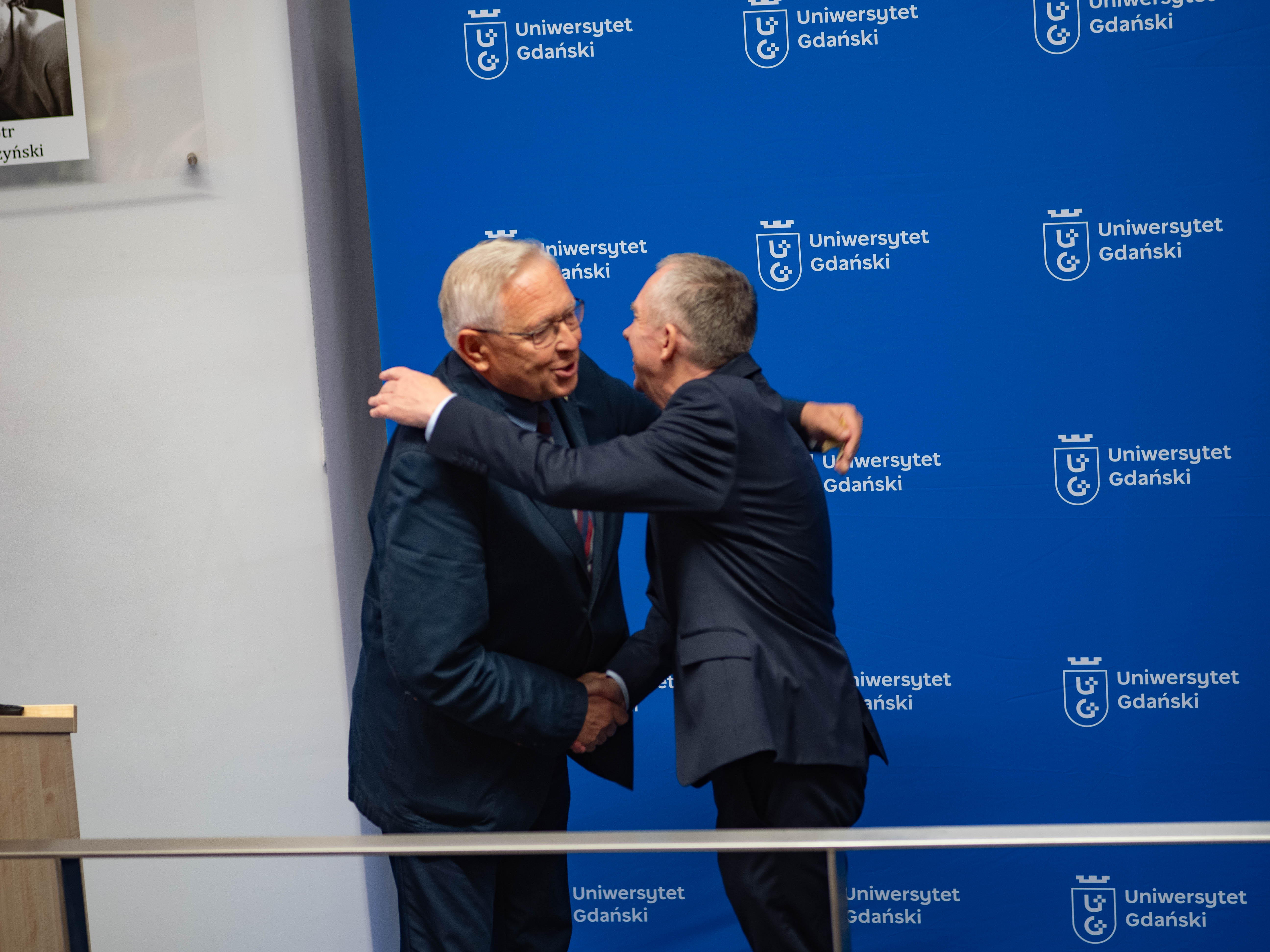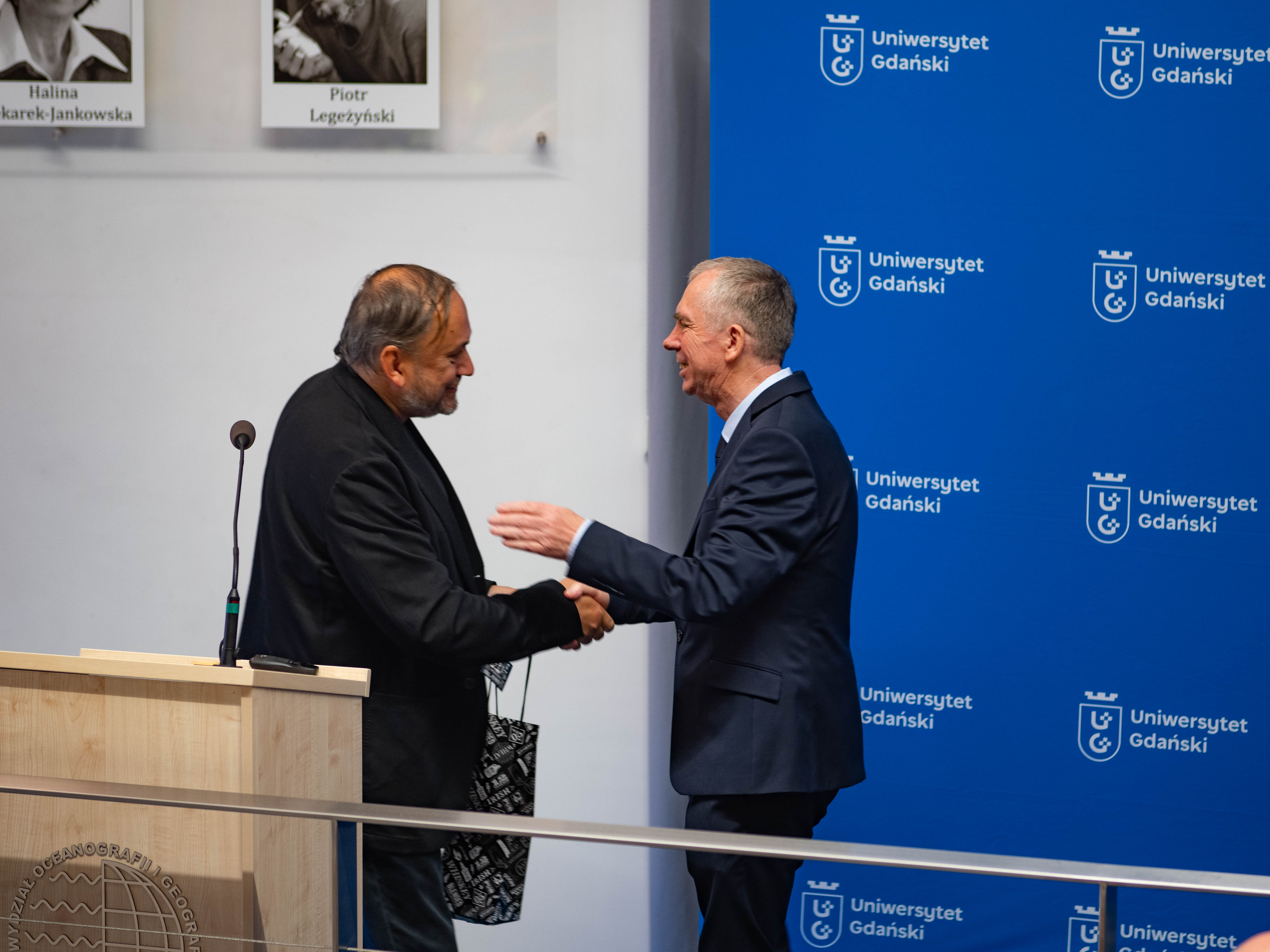 - Te niezwykłe osiągnięcia, które pokazała nam przed chwilą prof. Magda Bełdowska, dają nam pogląd na to co Jurek zrobił dla naszej uczelni, ale też dla całej społeczności naukowej i dydaktycznej, zwłaszcza w zakresie ochrony środowiska - powiedział Rektor UG prof. dr hab. Piotr Stepnowski. - Tutaj po raz pierwszy przecinają się nasze drogi, bo tak jak Jurek był pierwszym absolwentem samodzielnego kierunku Oceanografia Fizyczna, tak ja byłem pierwszym absolwentem kierunku Ochrona Środowiska. Czuję tu pewną historyczną łączność między naszymi karierami, szczególnie że w przyszłości ochrona środowiska wytyczała nasze spotkania na bardzo wielu płaszczyznach.