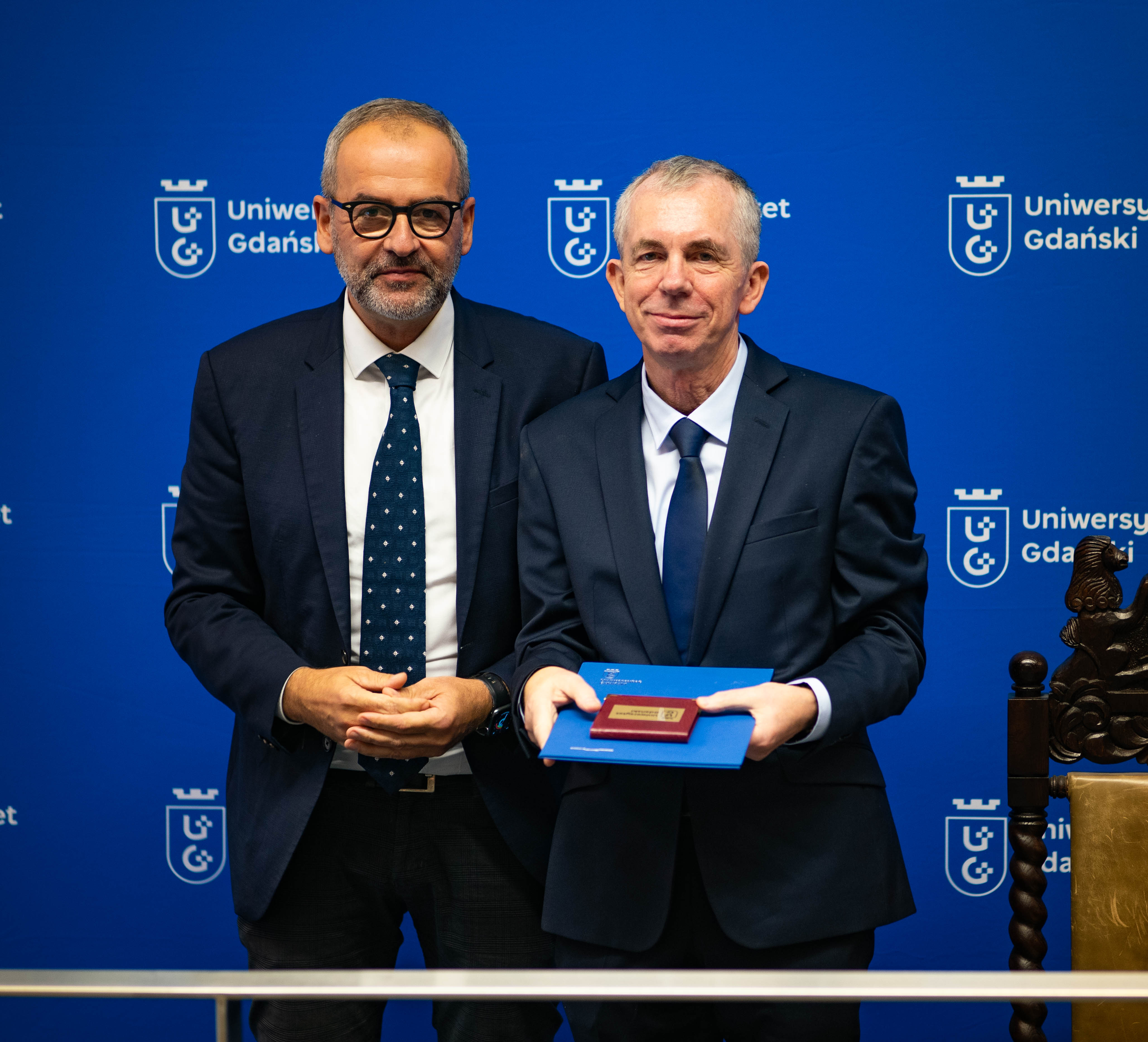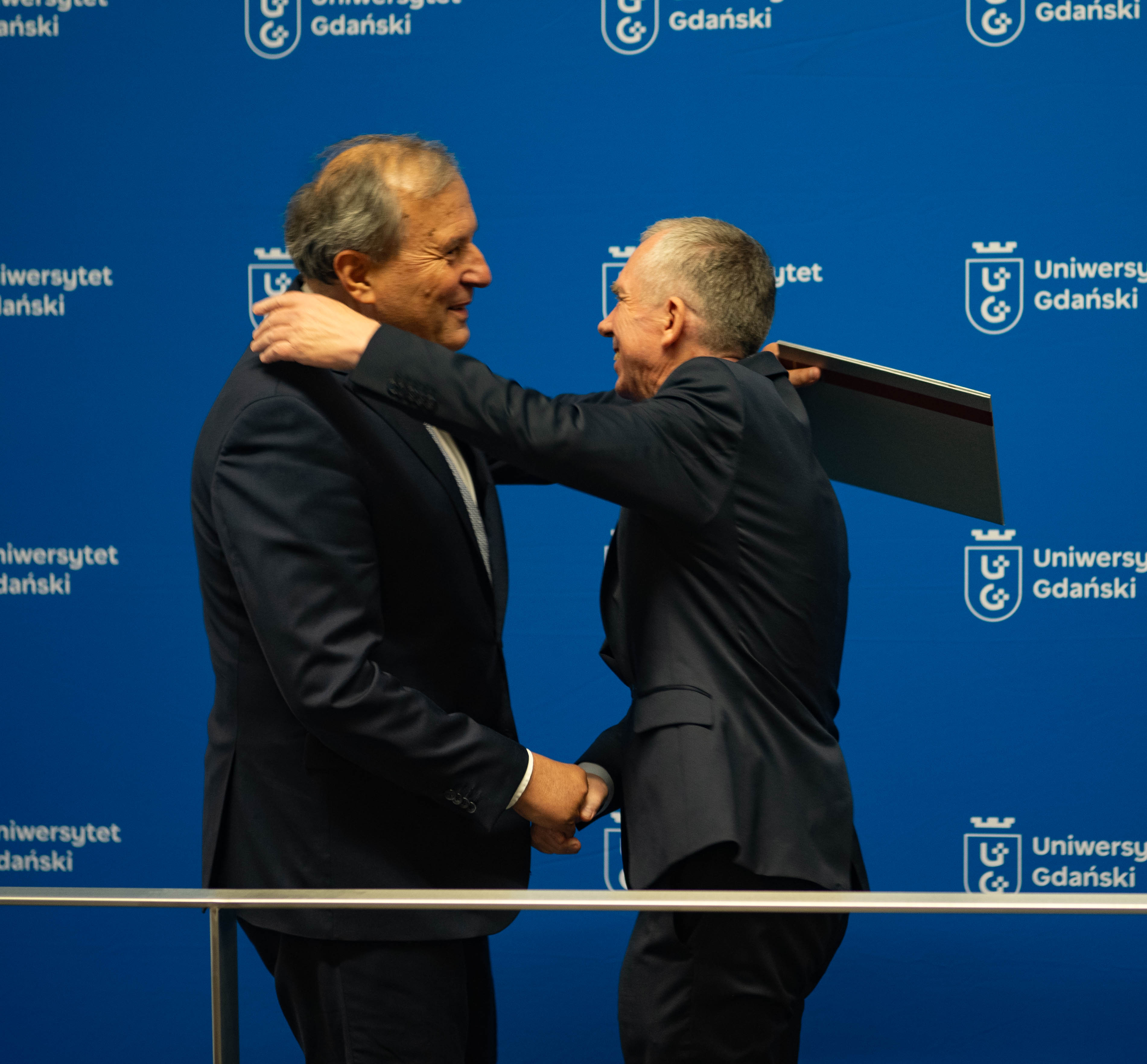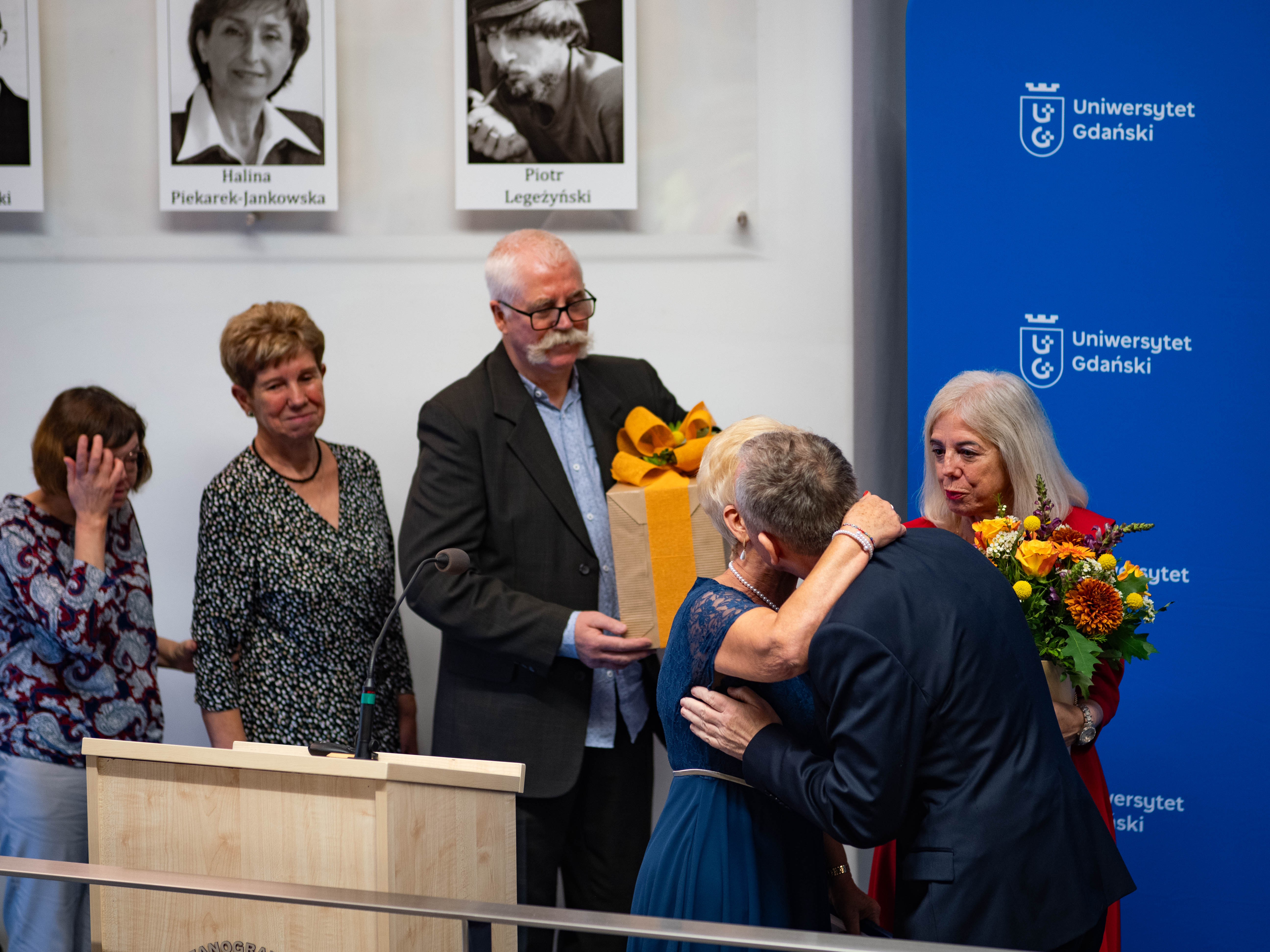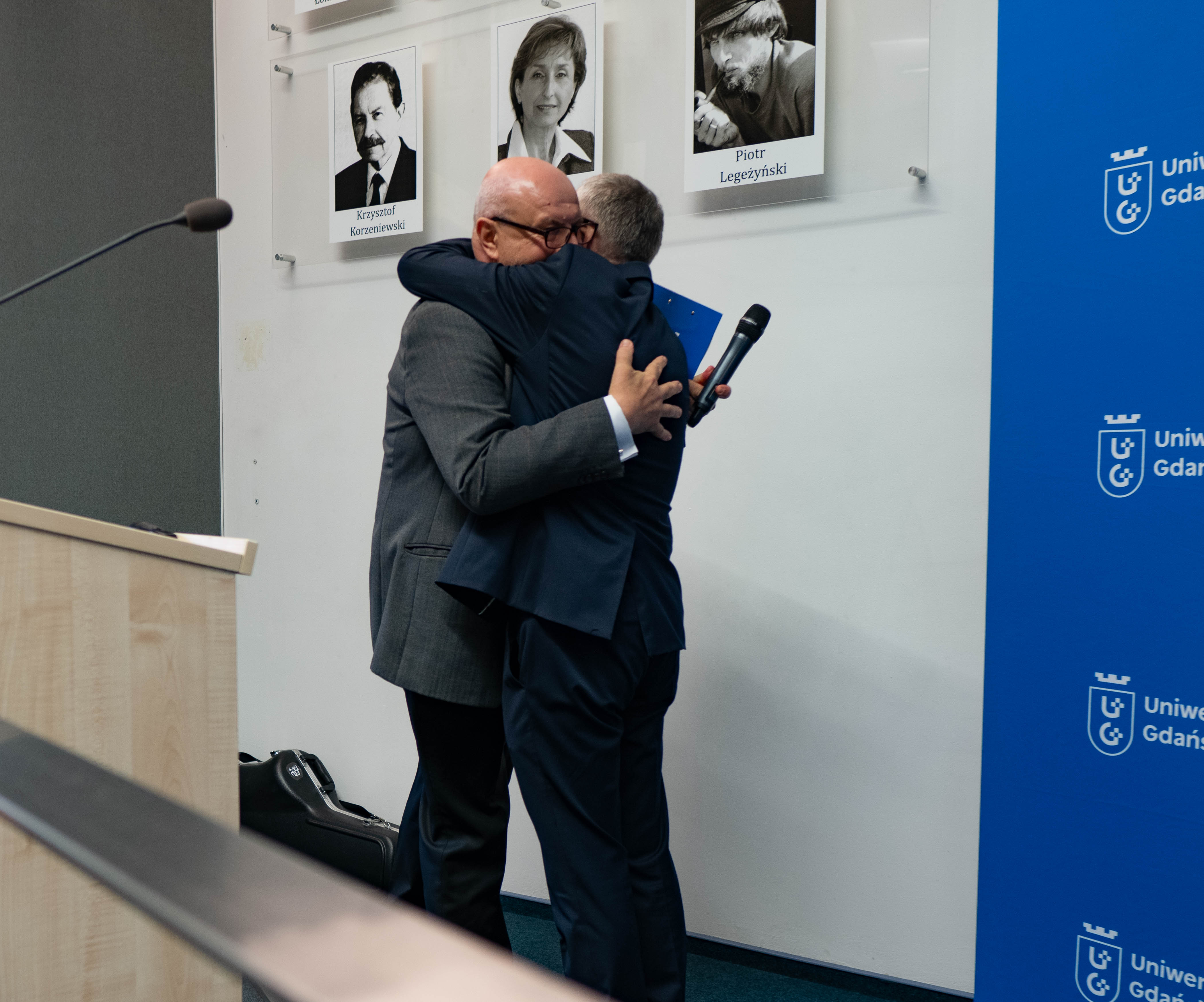 - Te niezwykłe osiągnięcia, które pokazała nam przed chwilą prof. Magda Bełdowska, dają nam pogląd na to co Jurek zrobił dla naszej uczelni, ale też dla całej społeczności naukowej i dydaktycznej, zwłaszcza w zakresie ochrony środowiska - powiedział Rektor UG prof. dr hab. Piotr Stepnowski. - Tutaj po raz pierwszy przecinają się nasze drogi, bo tak jak Jurek był pierwszym absolwentem samodzielnego kierunku Oceanografia Fizyczna, tak ja byłem pierwszym absolwentem kierunku Ochrona Środowiska. Czuję tu pewną historyczną łączność między naszymi karierami, szczególnie że w przyszłości ochrona środowiska wytyczała nasze spotkania na bardzo wielu płaszczyznach.