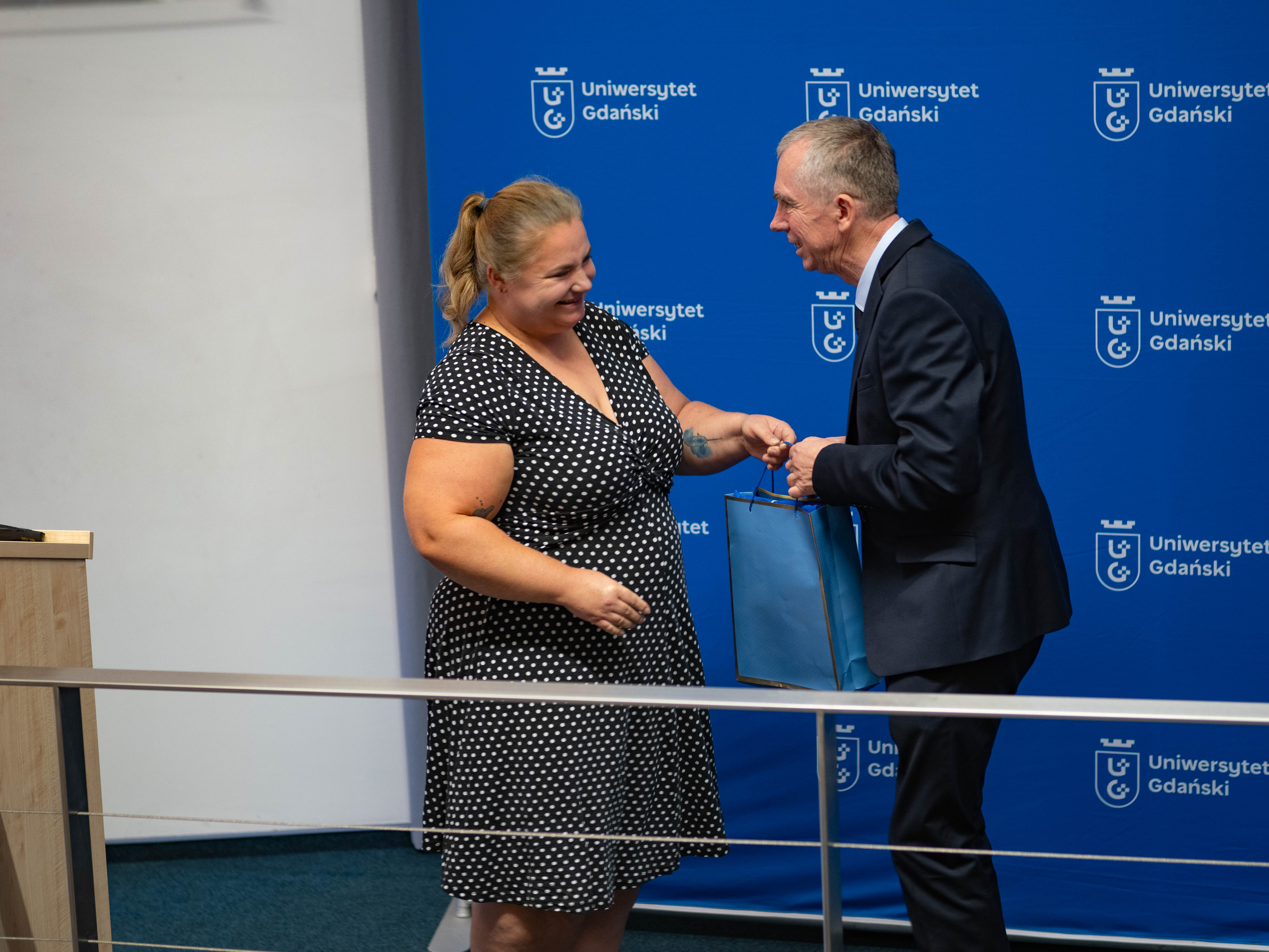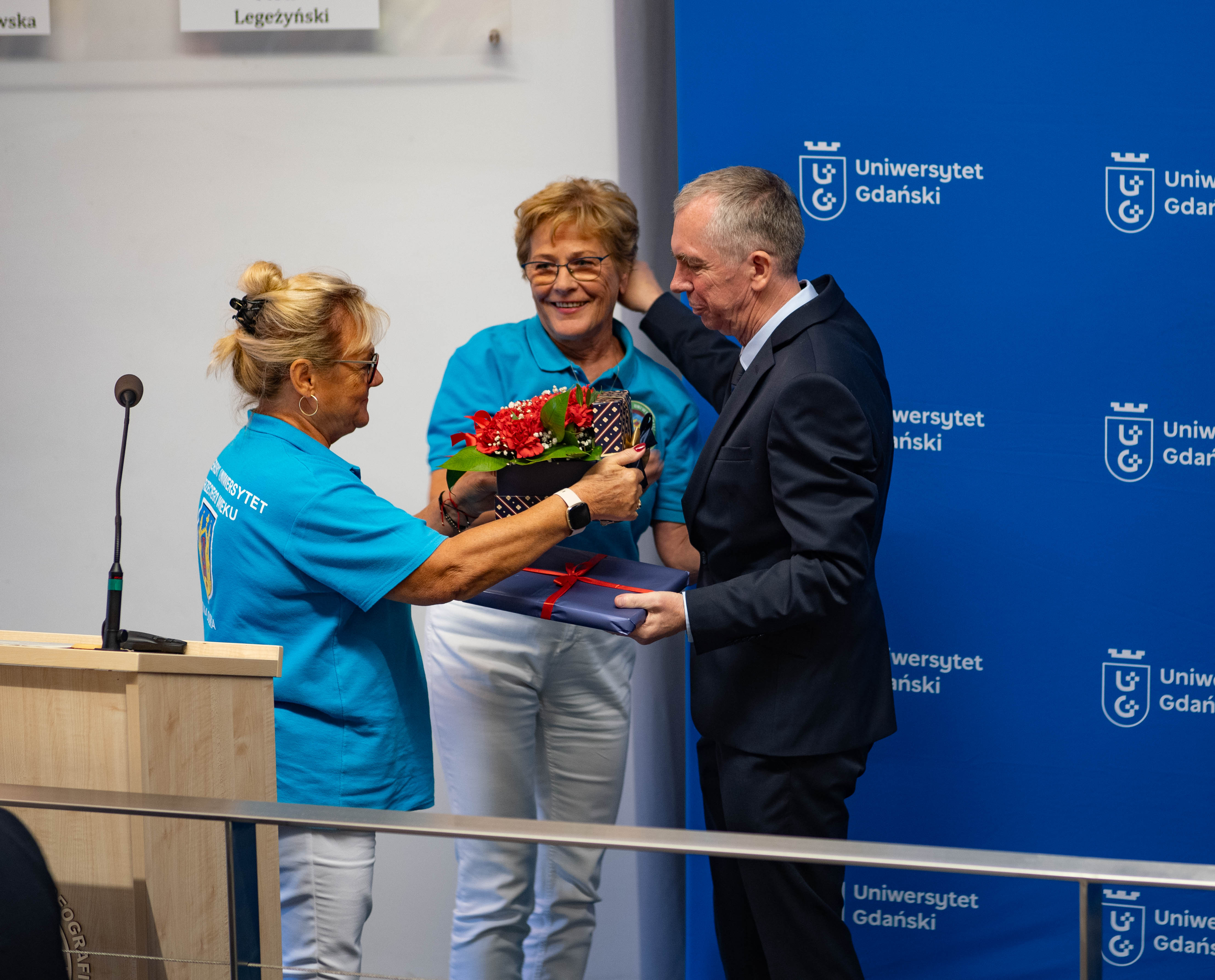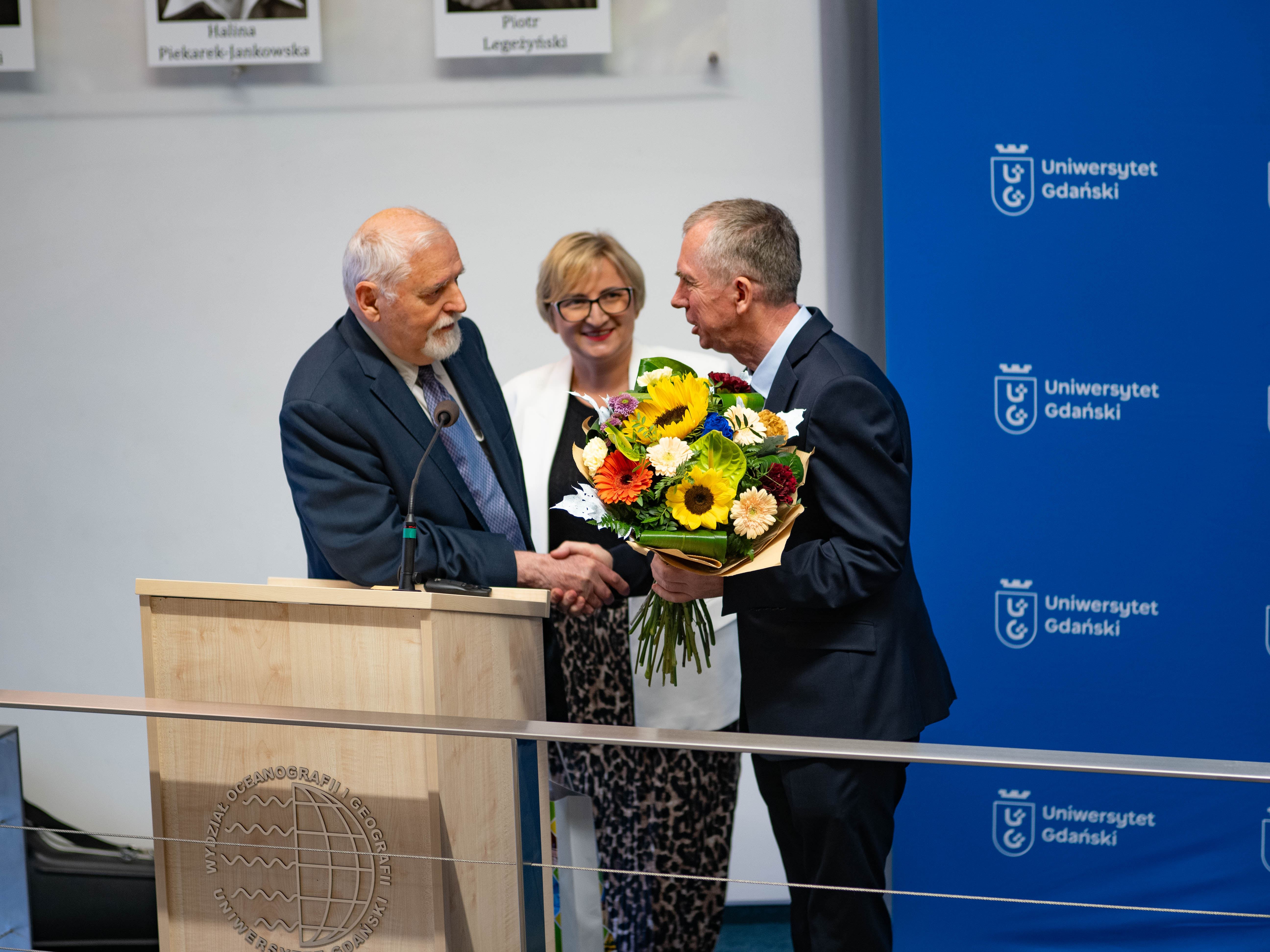 Następnie goście wydarzenia - rodzina jak i współpracownicy jubilata - dziękowali i wychwalali dorobek naukowy prof. Jerzego Bolałka, ale także jego niezwykłe podejście do ludzi i skromność. Krótkie podziękowania i prezenty na ręce jubilata złożyli m.in. Rektor UG w latach 1996-2002 prof. dr hab. Marcin Pliński, Zastępca Dyrektora IO PAN dr hab. Sławomir Sagan i prof. dr hab. Alicja Węgrzyn. Za wszystkie lata współpracy podziękowali także pracownicy Katedry Oceanografii Chemicznej i Geologii Morza.