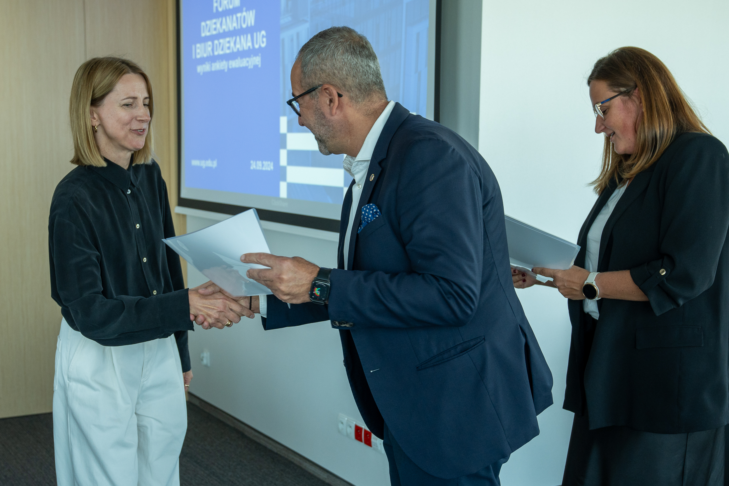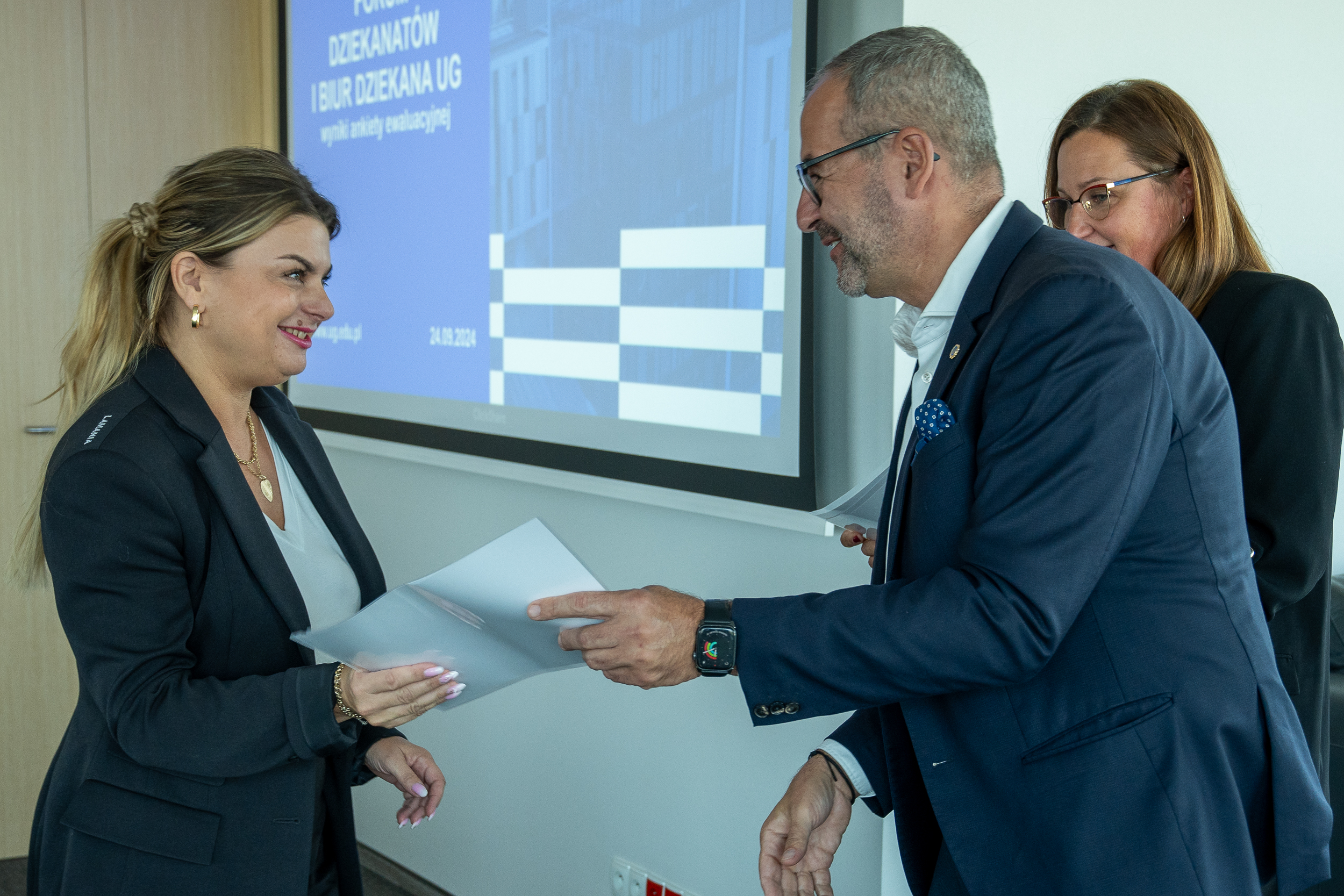 Posiedzenie w dniu 24 września było wyjątkowe: zamykało pierwszą kadencję funkcjonowania FDiBD. Z tej okazji wręczono uczestniczkom symboliczne upominki. Następnie przewodnicząca gremium - kierowniczka Dziekanatu Wydziału Prawa i Administracji, Katarzyna Rynkowska - zaprezentowała wyniki przeprowadzonej ankiety ewaluacyjnej.