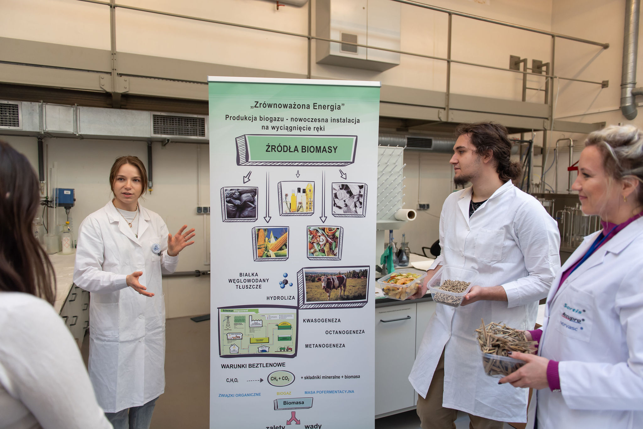 - instalacja biogazowa: proces produkcji biogazu i pokaz, w którym przedstawione zostały surowce wykorzystywane w procesie, omówienie zasad fermentacji beztlenowej oraz optymalizacji fermentacji pod kątem efektywności energetycznej i korzyści środowiskowych.