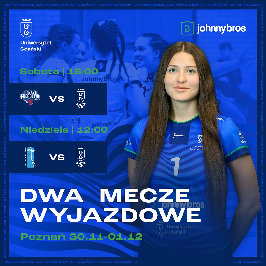 Mecze wyjazdowe rozegrają siatkarki JohnnyBros AZS Uniwersytet Gdański (dwa mecze w Poznaniu w ramach rozgrywek II ligi) oraz koszykarze Bears Trefl Sopot Uniwersytet Gdański, którzy zmierzą się o ligowe punkty w Pelplinie.