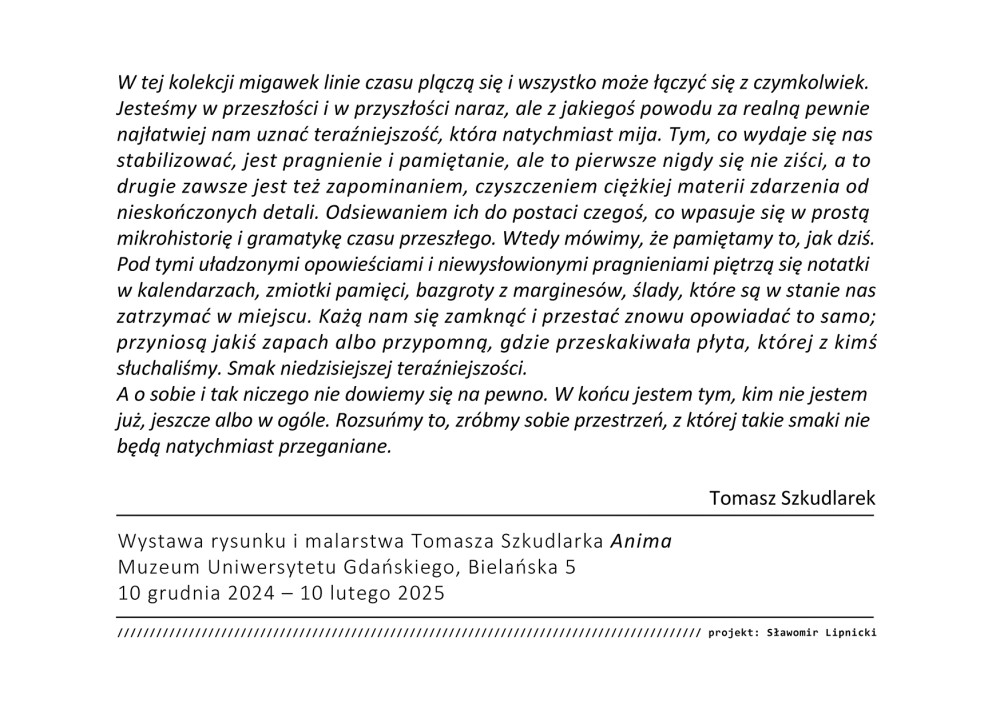 Wystawę prac prof. Tomasza Szkudlarka będzie można oglądać do 10 lutego 2025 r.