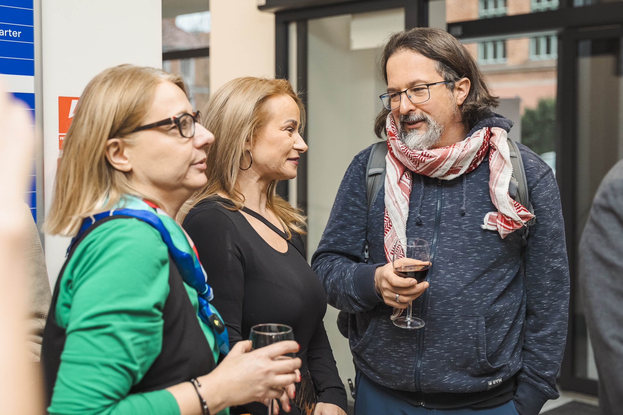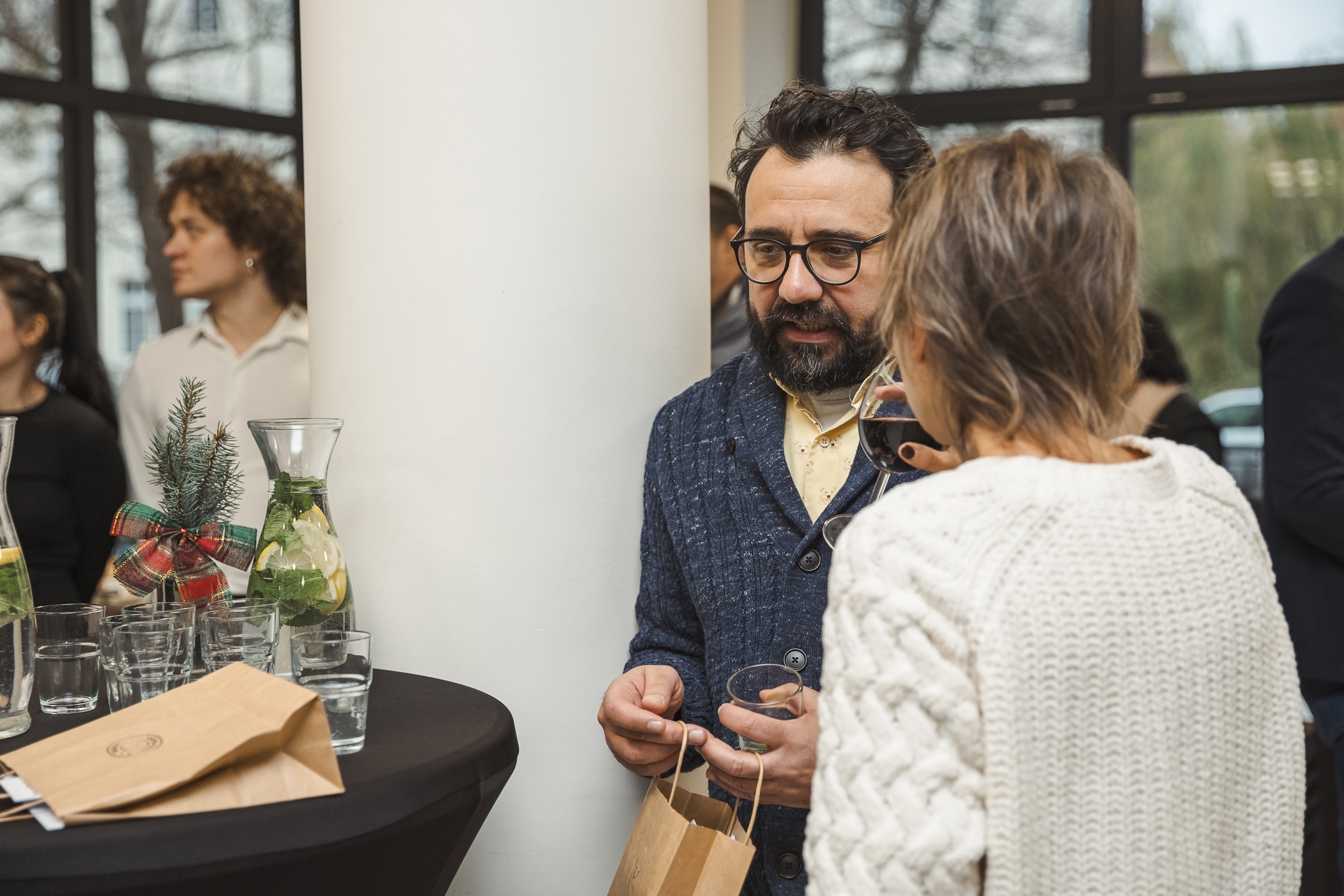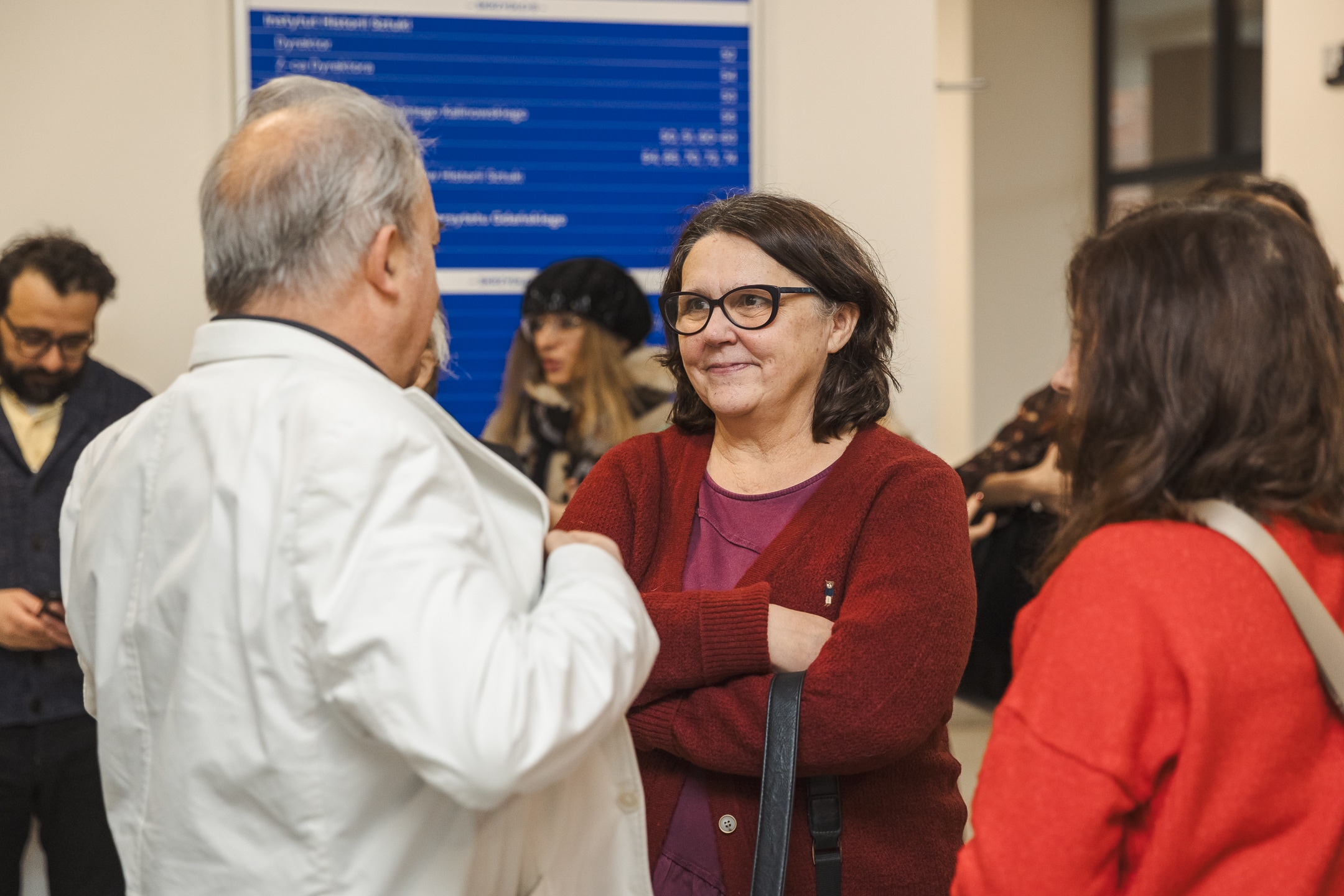 Chociaż prof. Tomasz Szkudlarek jest osobą niezwykle zasłużoną na polu naukowym i dydaktycznym, na spotkaniu 11 grudnia wystąpił przede wszystkim jako artysta. Zgromadzeni goście mieli możliwość zapoznać się z jego twórczością malarską i rysunkową: od nakreślonych z rozmachem obrazów po rysunki powstałe „na marginesie” podczas posiedzeń Rad Wydziałów, skrzętnie zebrane przez prof. Marię Mendel.