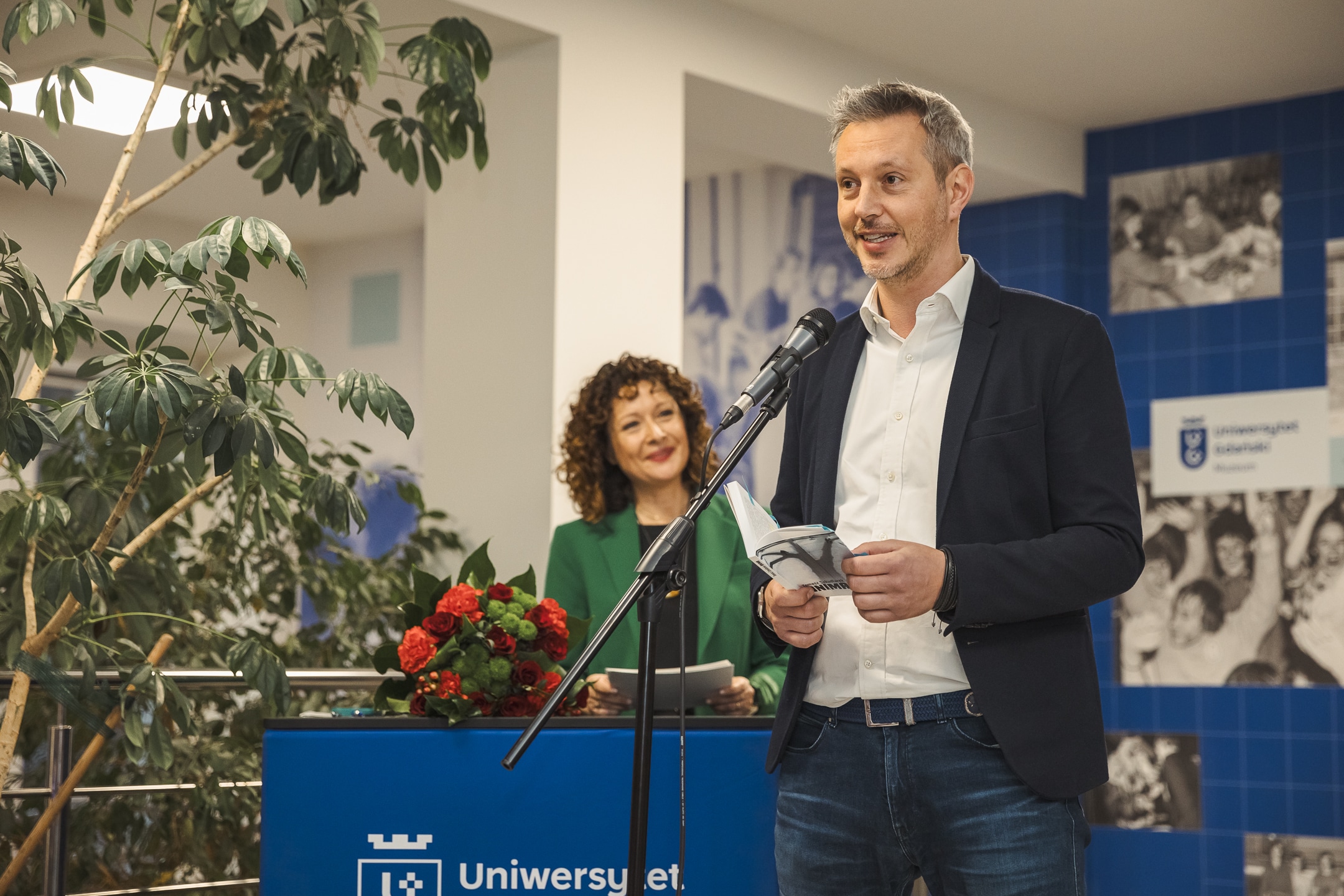 Oficjalną część uroczystości poprowadziła Sylwia Dudkowaska-Kafar, która po powitaniu gości oddała głos gospodarzom wydarzenia: Rektorowi Uniwersytetu Gdańskiego, prof. Piotrowi Stepnowskiemu, Dziekanowi Wydziału Nauk Społecznych UG, prof. Michałowi Harciarkowi oraz Dyrektorce Muzeum Uniwersytetu Gdańskiego, Marcie Szaszkiewicz. Wszyscy oni zostali poproszeni o odczytanie fragmentu powieści prof. Szkudlarka. Gospodarze dodali kilka słów od siebie, a w ich wypowiedziach przewijał się wątek czasu - jako nawiązanie do jednego z istotnych aspektów książki. - Przeczytałem kilka stron i mamy do pogadania, Tomasz. Fizyka mówi inaczej o czasie - zażartował prof. Piotr Stepnowski.