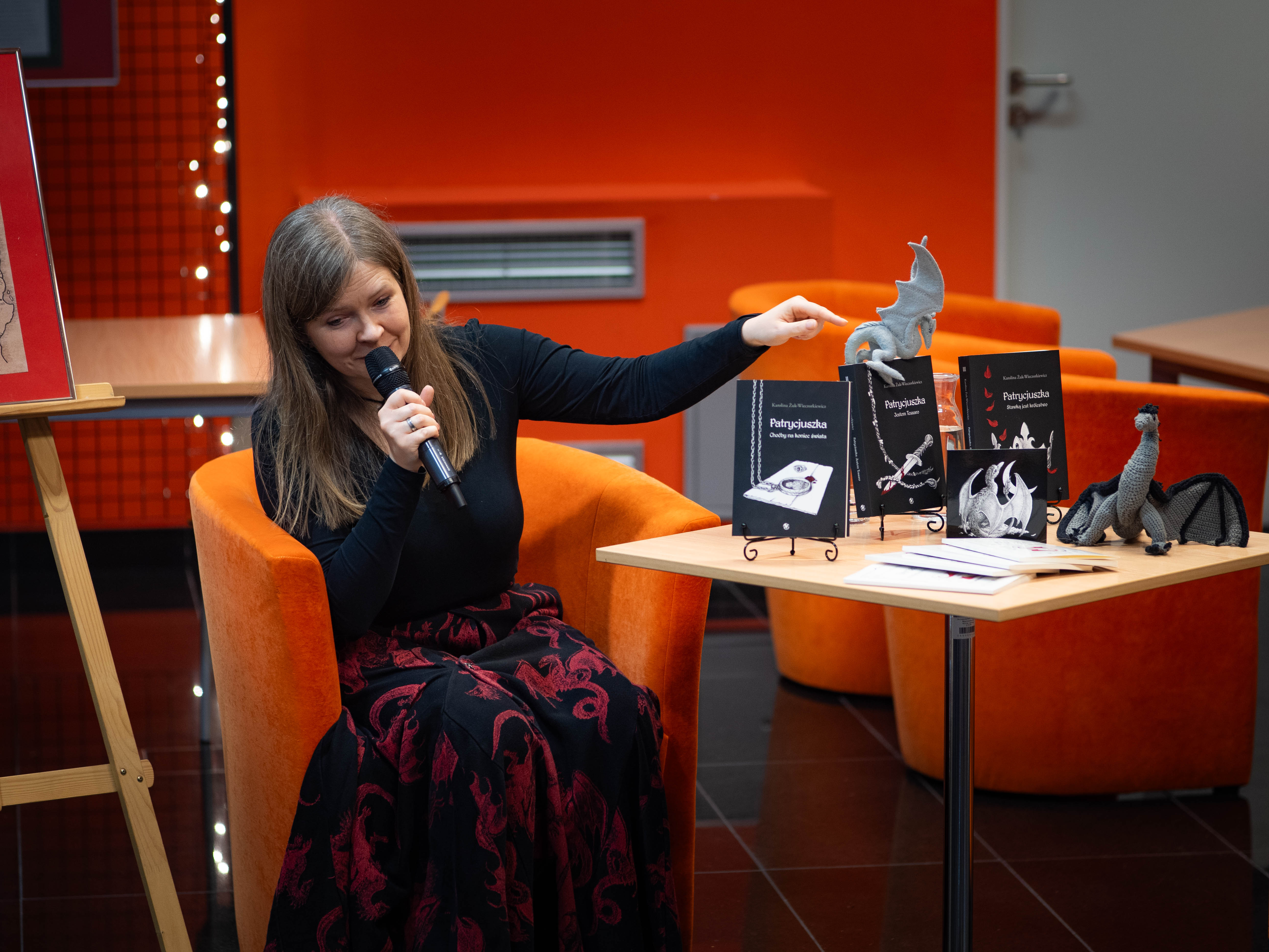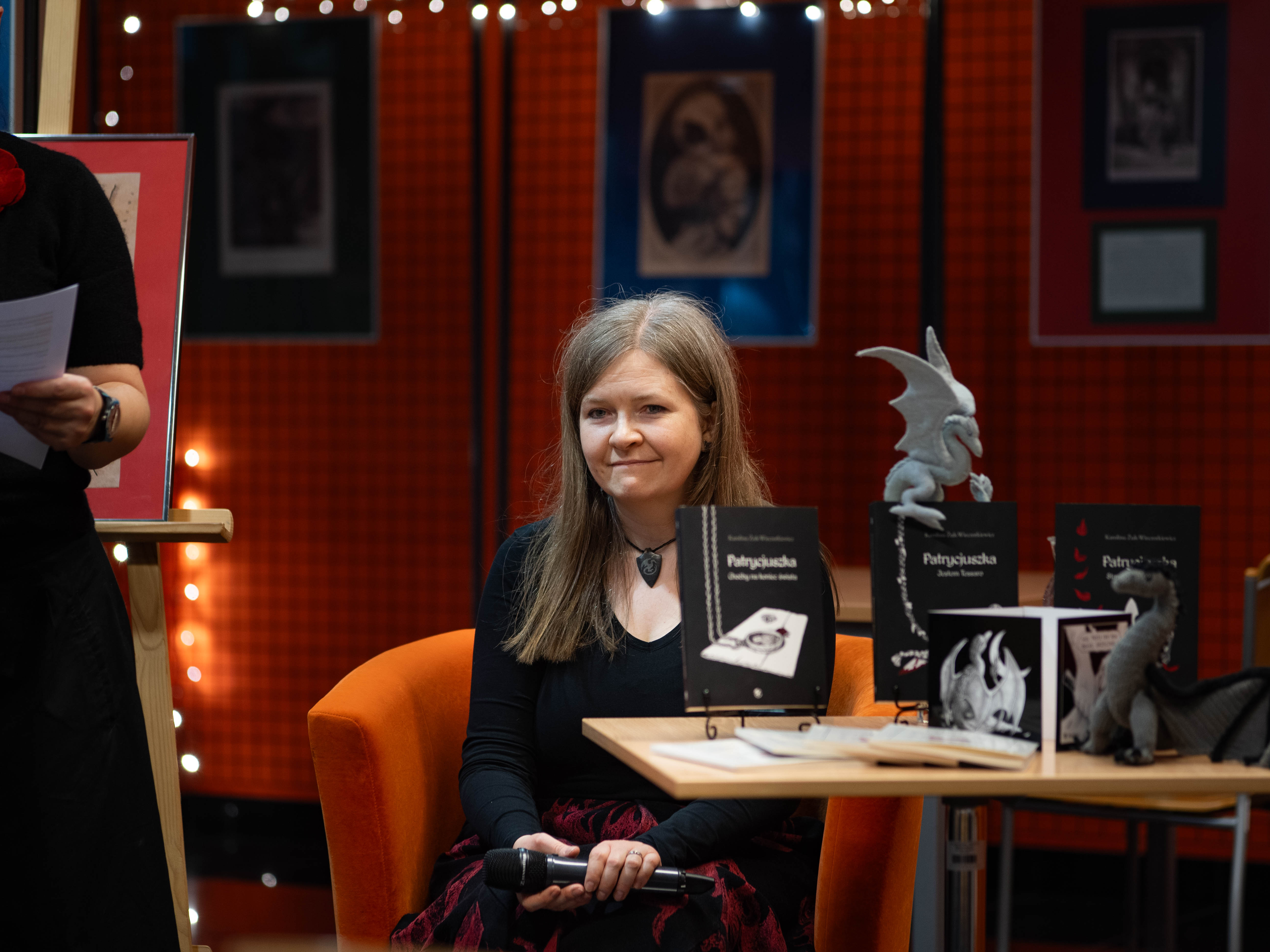 Absolwentka psychologii na Uniwersytecie Gdańskim i grafiki komputerowej na gdańskiej ASP, pracowniczka Centrum Komunikacji i Promocji UG, żona, mama, a także pisarka, ilustratorka i samowydawczyni - Karolina Żuk-Wieczorkiewicz ma wiele talentów! Pisze opowieści fantasy osadzone w jej autorskim uniwersum Avaroth, własnoręcznie je ilustruje, składa, projektuje okładki, a następnie samodzielnie je wydaje. Jak dotąd w druku ukazała się jej debiutancka trylogia „Patrycjuszka” oraz - w grudniu tego roku - opowiadanie świąteczne „Skrzat jej książęcej mości”. Premiera najnowszej książki była okazją do spotkania się z czytelnikami z Uniwersytetu Gdańskiego w BUG.