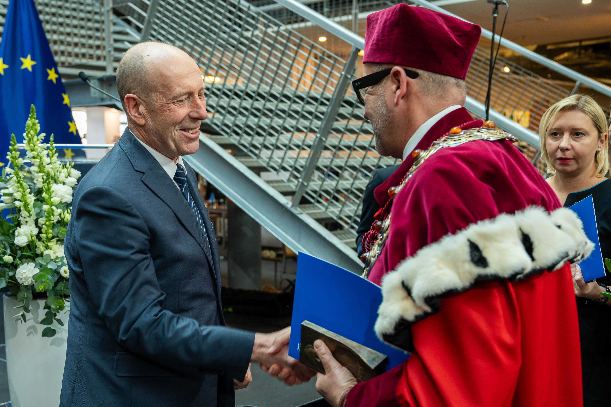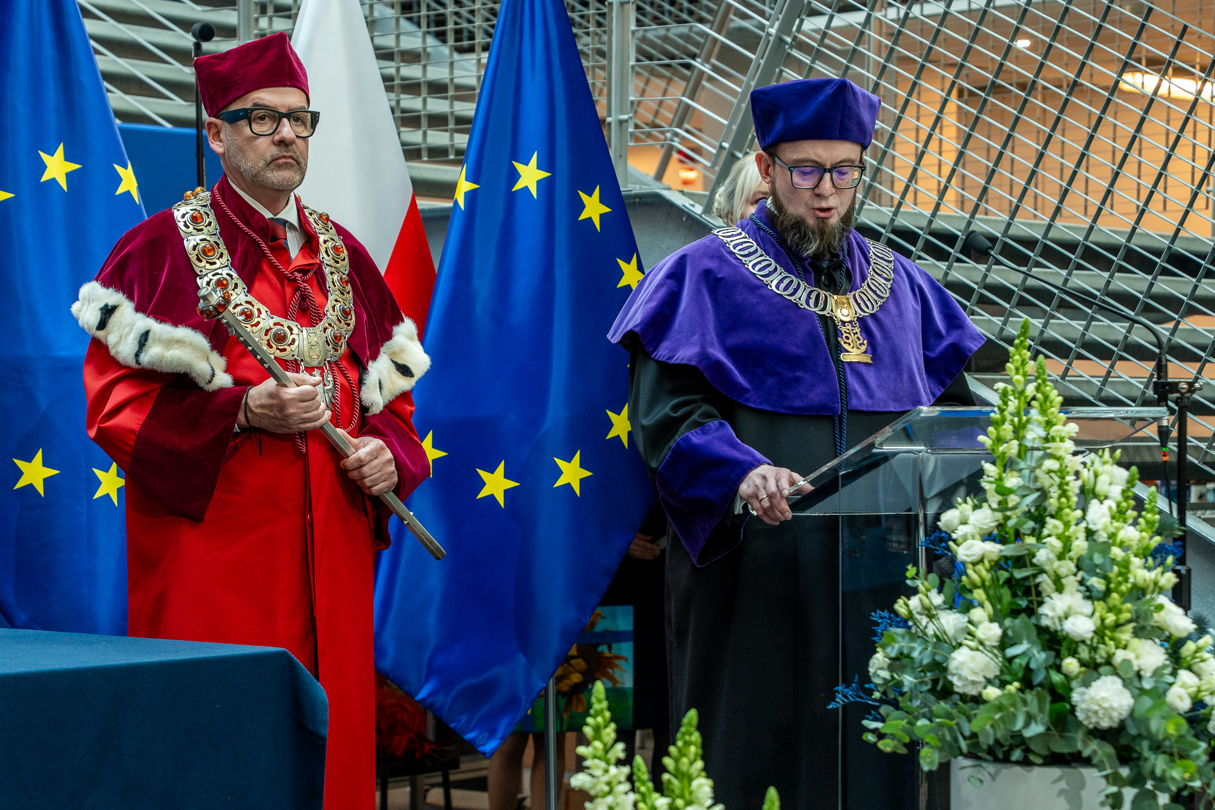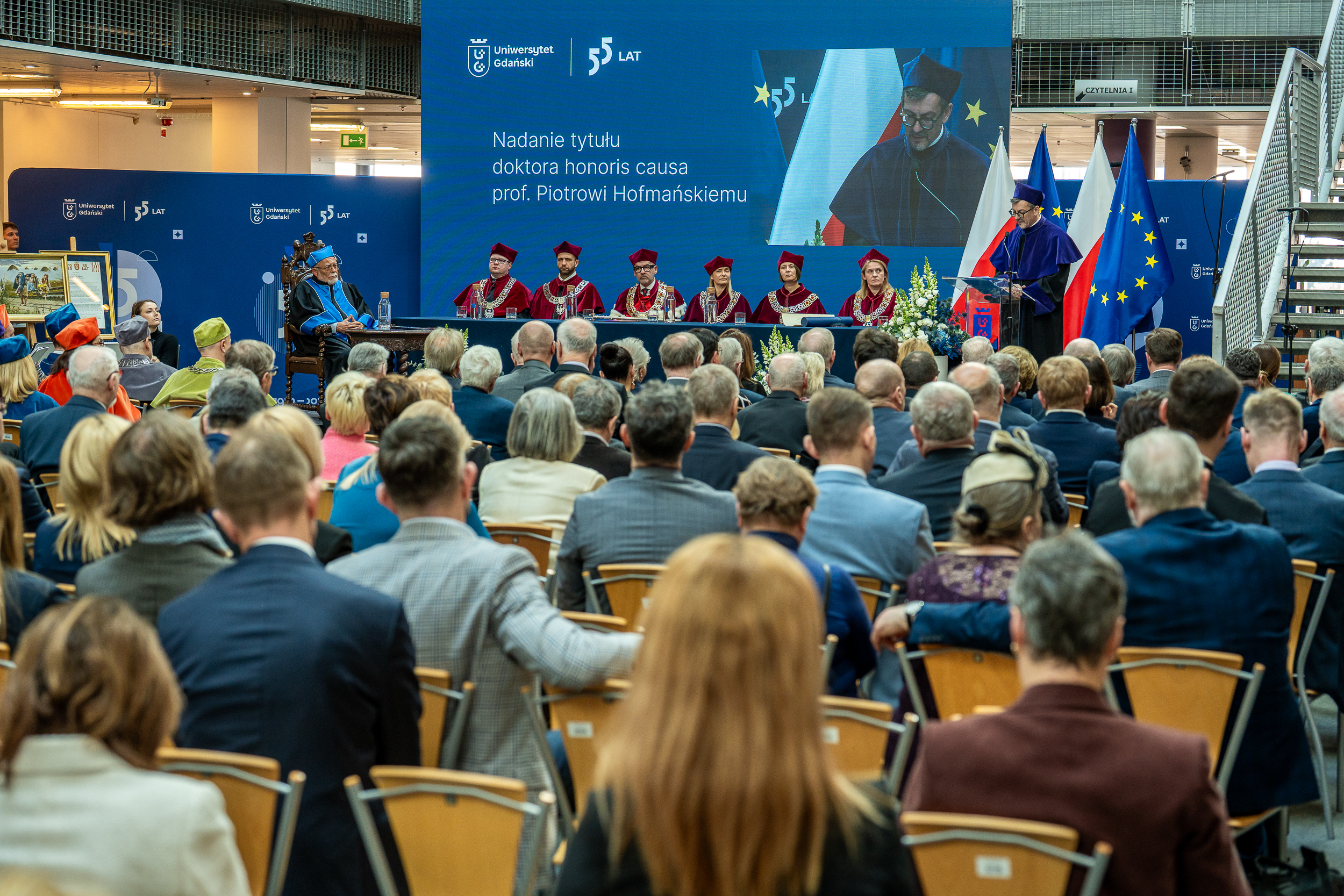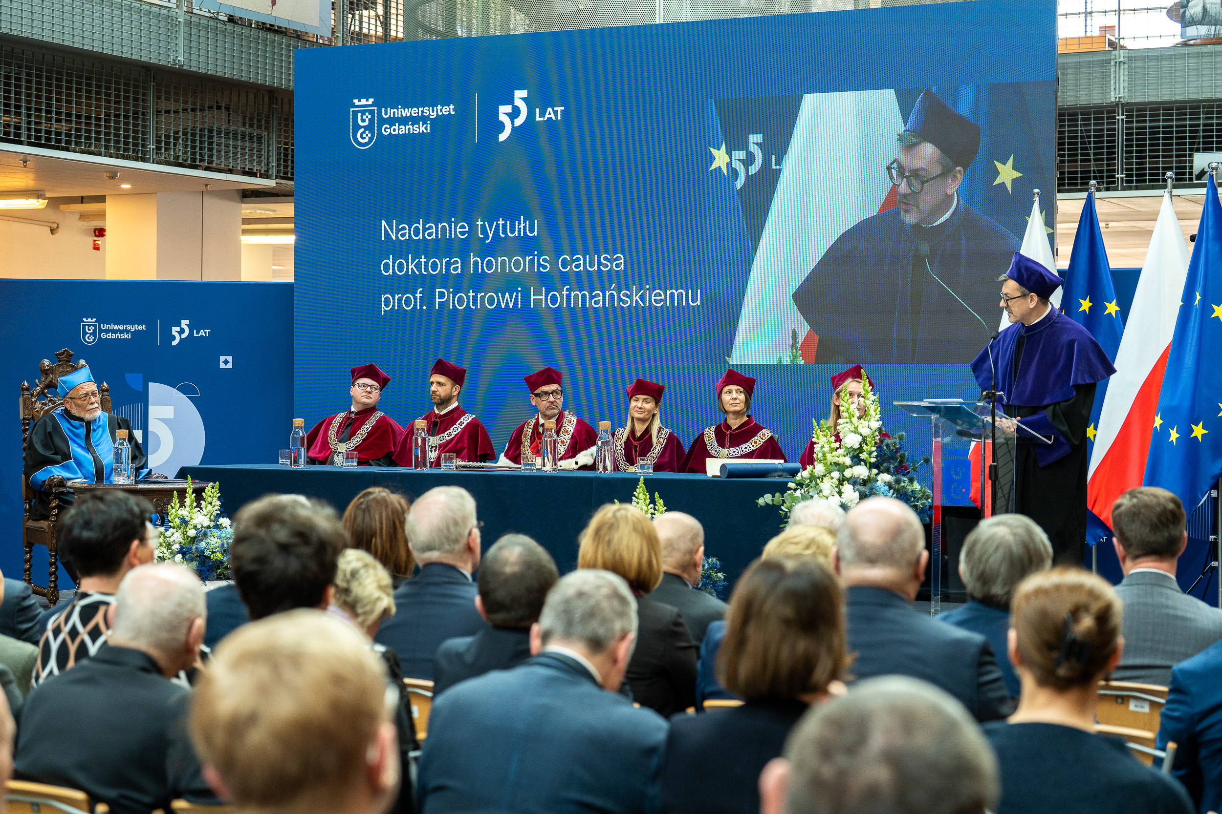 „Siłą naszej uczelni jest współpraca”. W dniu Święta Uniwersytetu Gdańskiego - 20 marca 2025 r. - odbyło się uroczyste posiedzenie Senatu UG. W tym roku wpisało się ono w obchody 55. rocznicy powstania Uczelni. Wyjątkowym wydarzeniem podczas uroczystości była ceremonia nadania tytułu doktora honoris causa Uniwersytetu Gdańskiego prof. dr. hab. Piotrowi Hofmańskiemu, wybitnemu prawnikowi, propagatorowi wartości europejskich oraz europejskich standardów ochrony praw człowieka.
