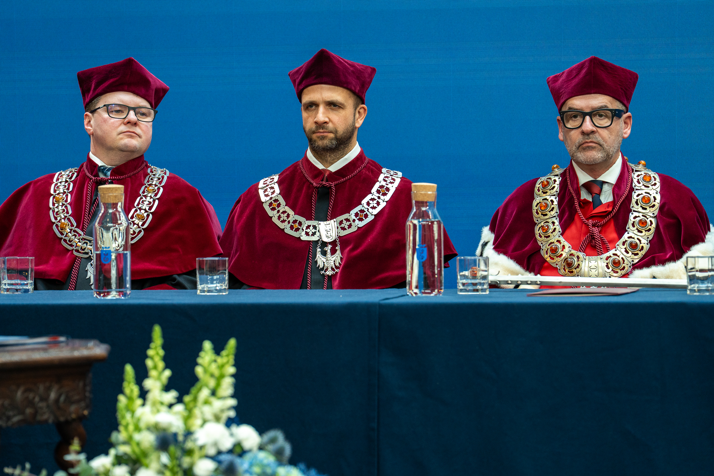 Rektor UG opowiedział o tym, czym Uniwersytet Gdański może się pochwalić: od 11 wydziałów realizujących badania w 21 dyscyplinach naukowych (wskazał przy tym unikalny charakter Międzyuczelnianego Wydziału Biotechnologii UG i GUMed), przez wyspecjalizowane centra badawcze (oraz dwie Międzynarodowe Agendy Badawcze), zatrudniające kilkudziesięciu naukowców z całego świata, po prężnie działające centra związane ze sportem czy kulturą. Podkreślił wartość, jaką stanowią pracownicy Uczelni, wśród których jest wielu laureatów prestiżowych nagród naukowych (np. Nagrody Fundacji na rzecz Nauki Polskiej czy Nagrody Naukowej Miasta Gdańska im. Jana Heweliusza). Zarówno pracownikom, jak i absolwentom UG podziękował za przekazywanie dalej „genu uniwersyteckiego”: - (…) wiemy, czujemy to, że jesteście dumni ze swojej Alma Mater, i dokładamy wszelkich starań, żeby było tak zawsze - powiedział prof. Piotr Stepnowski.