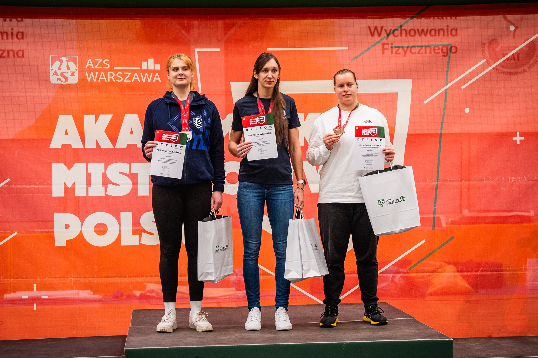 Monika Trawczyńska obroniła tytuł akademickiej mistrzyni Polski, uzyskując rewelacyjny wynik 3:17,0 w kategorii open kobiet. Zdobyła złoto zarówno w klasyfikacji generalnej, jak i uniwersytetów. Na podium w klasyfikacji uniwersytetów stanęli również: Ryszard Piasecki - 3. miejsce w typie uniwersytetów waga lekka - i Piotr Śliwiński - 3.miejsce w typie uniwersytetów waga open.