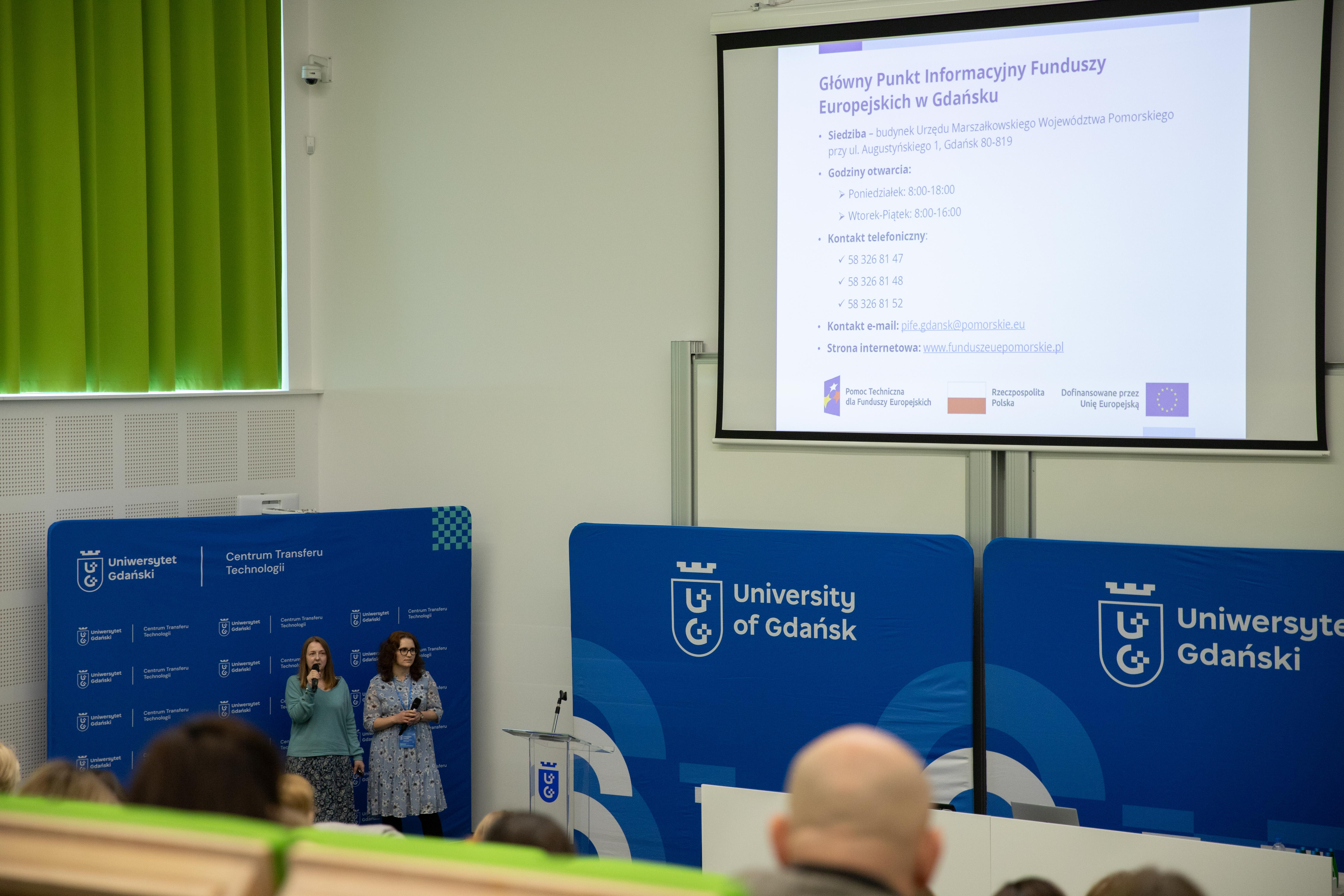 W holu przed aulą znalazły się również stoiska konsultacyjne jednostek zapewniających wsparcie w procesie zagwarantowania ochrony własności intelektualnej, wdrożenia innowacji i komercjalizacji wyników badań. Zainteresowani mogli porozmawiać z przedstawicielami Centrum Transferu Technologii UG, Univentum Labs, Biura Wsparcia Przygotowania Projektów - Inkubatora Projektowego UG, Horyzontalnego Punktu Kontaktowego Polska Północna, Głównego Punktu Informacyjnego Funduszy Europejskich w Gdańsku, Agencji Rozwoju Pomorza oraz Polskiej Agencji Inwestycji i Handlu.