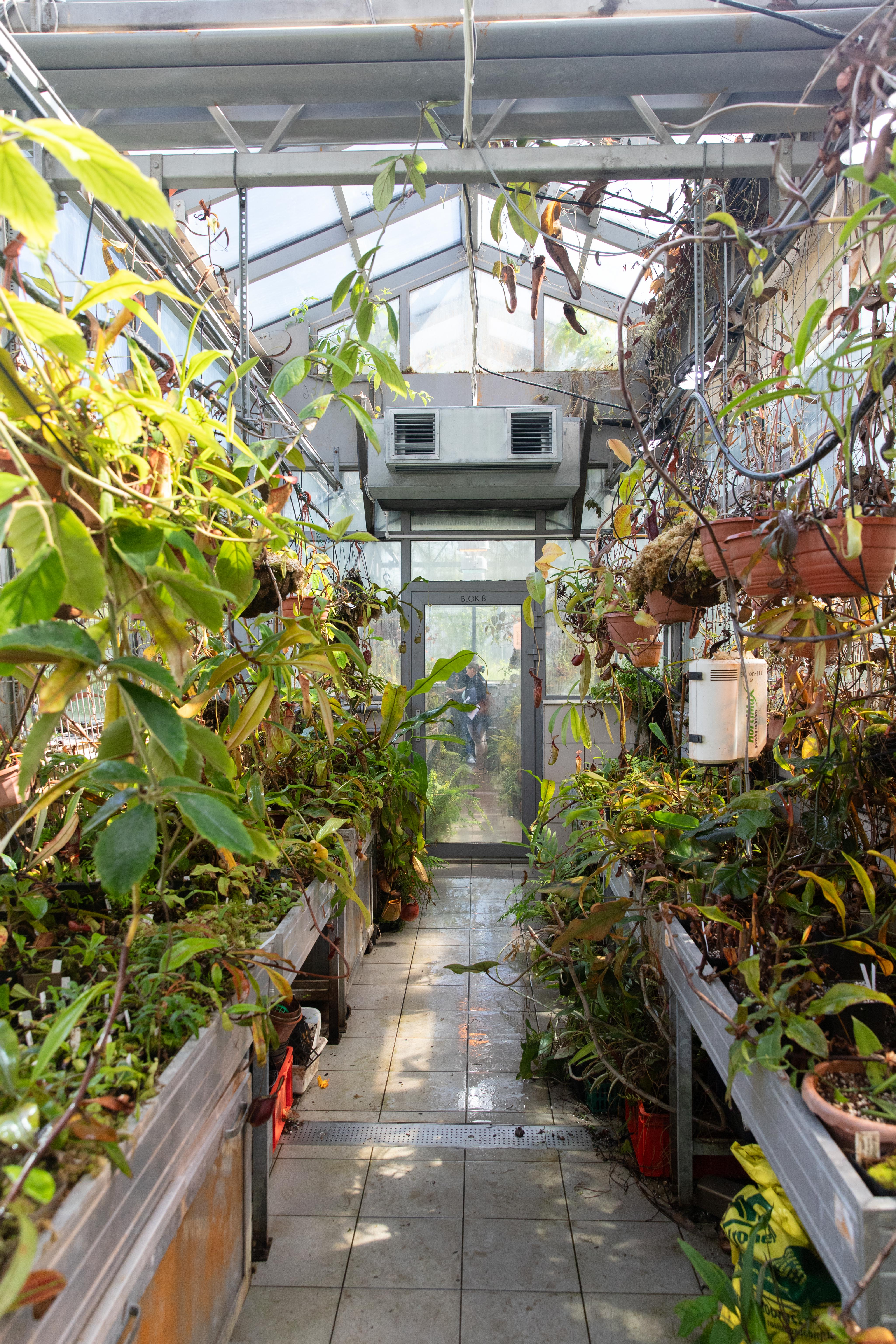 Na co dzień rośliny mięsożerne zajmują dwa boksy szklarni Wydziału Biologii. Panują tam ściśle kontrolowane warunki: temperaturą, wilgotnością powietrza i podłoża oraz naświetleniem steruje zaprogramowany system komputerowy. Parametry są ustalane odrębnie dla każdego boksu i dostosowane do wymagań trzymanych tam roślin.