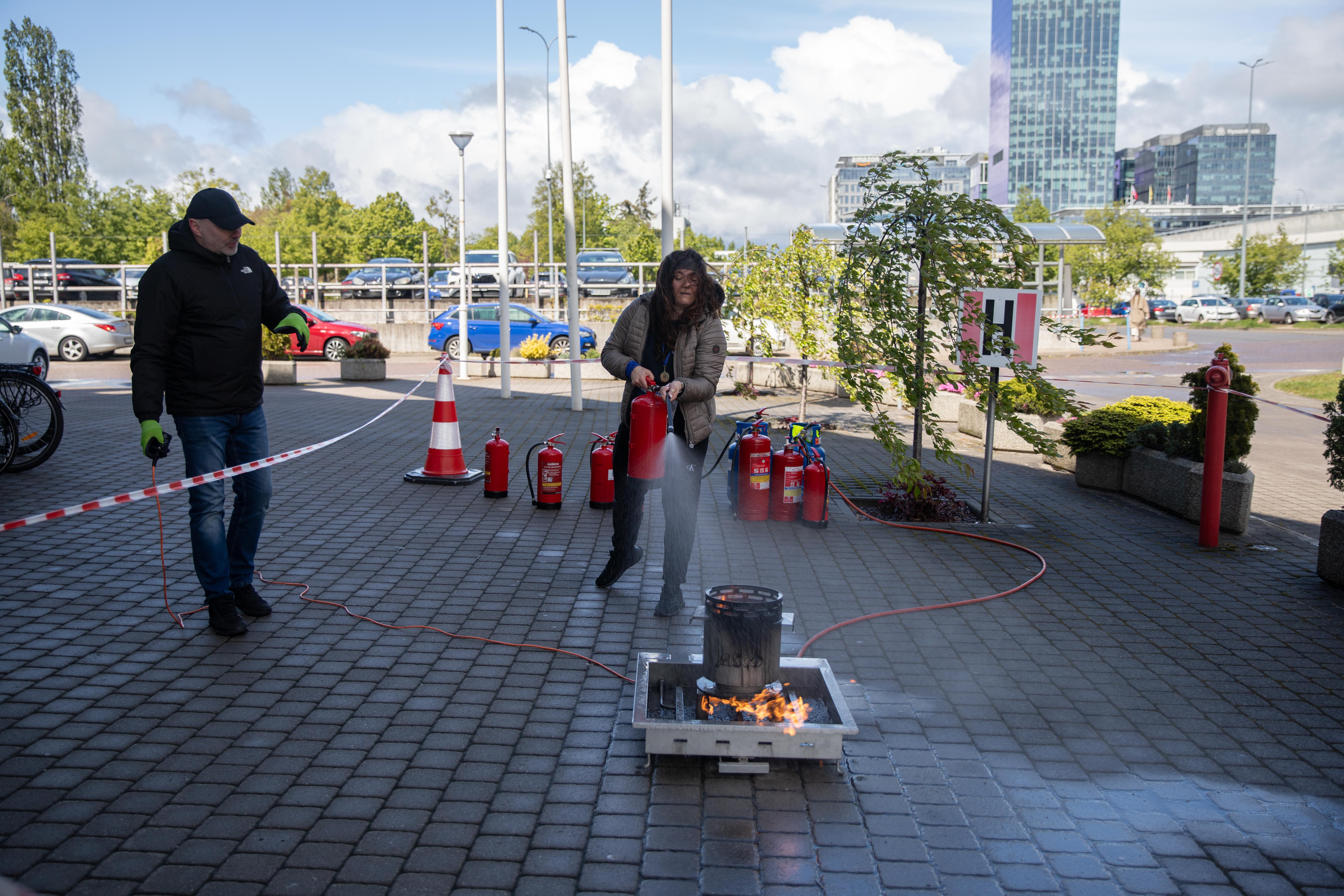 W czwartek rano przed budynkiem WPiA stanął wóz strażacki. Na szczęście nie był on wezwany do pożaru, lecz stanowił jedną z pierwszych atrakcji, jakie napotykali uczestnicy V Dnia Bezpieczeństwa Pracy i Ochrony Zdrowia na UG. Tuż obok, z zachowaniem zasad bezpieczeństwa, znajdowało się stanowisko z trenażerem gaśniczym, na którym można było praktycznie przećwiczyć gaszenie ognia w utrudnionych warunkach wietrznej pogody. Niestety wiatr przeszkodził w korzystaniu z innej atrakcji - komory dymowej. Kilka osób zdążyło się jednak przekonać, jak bardzo dym w pomieszczeniu może utrudniać pracę strażakom, pomimo używania masek z filtrami.