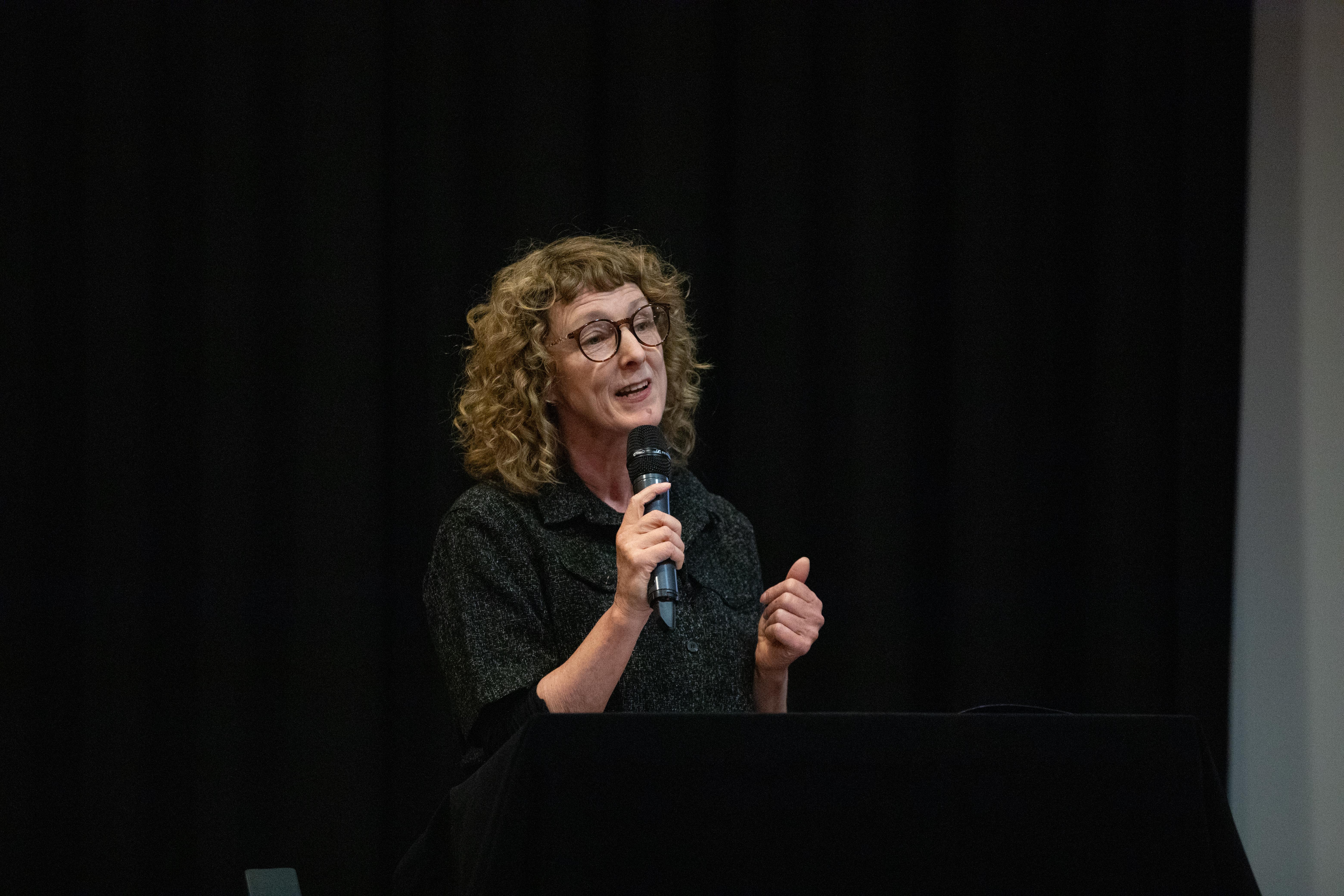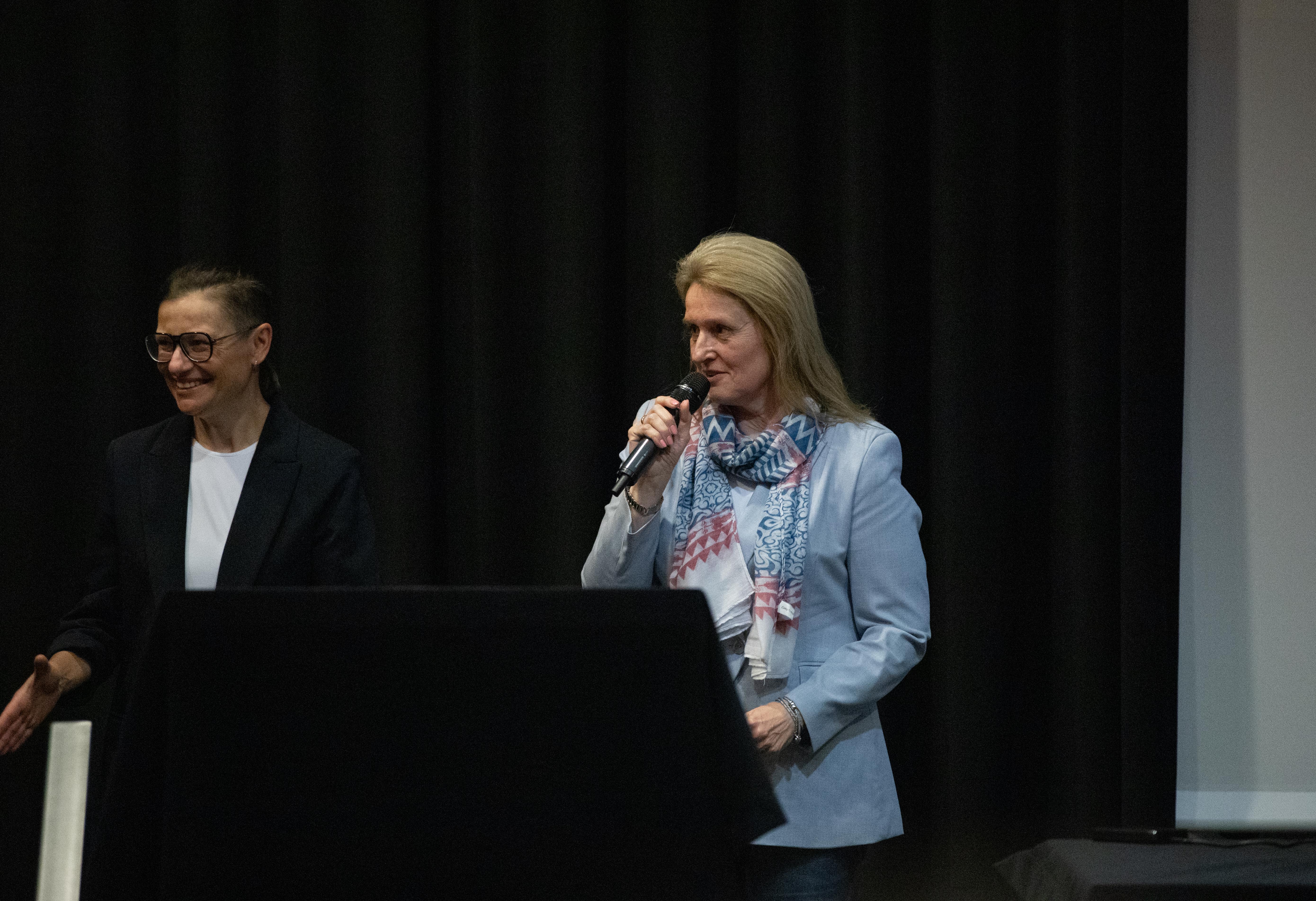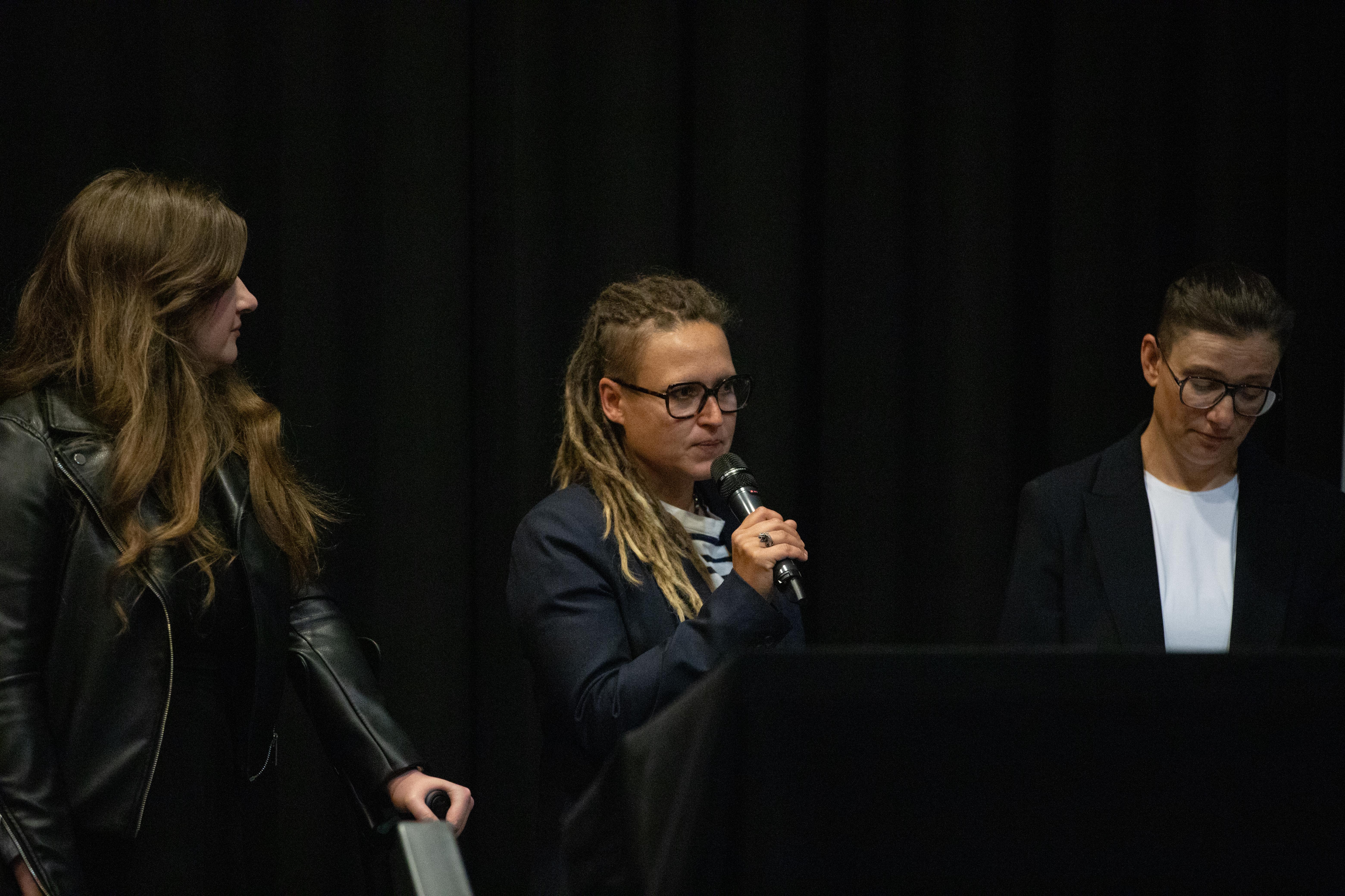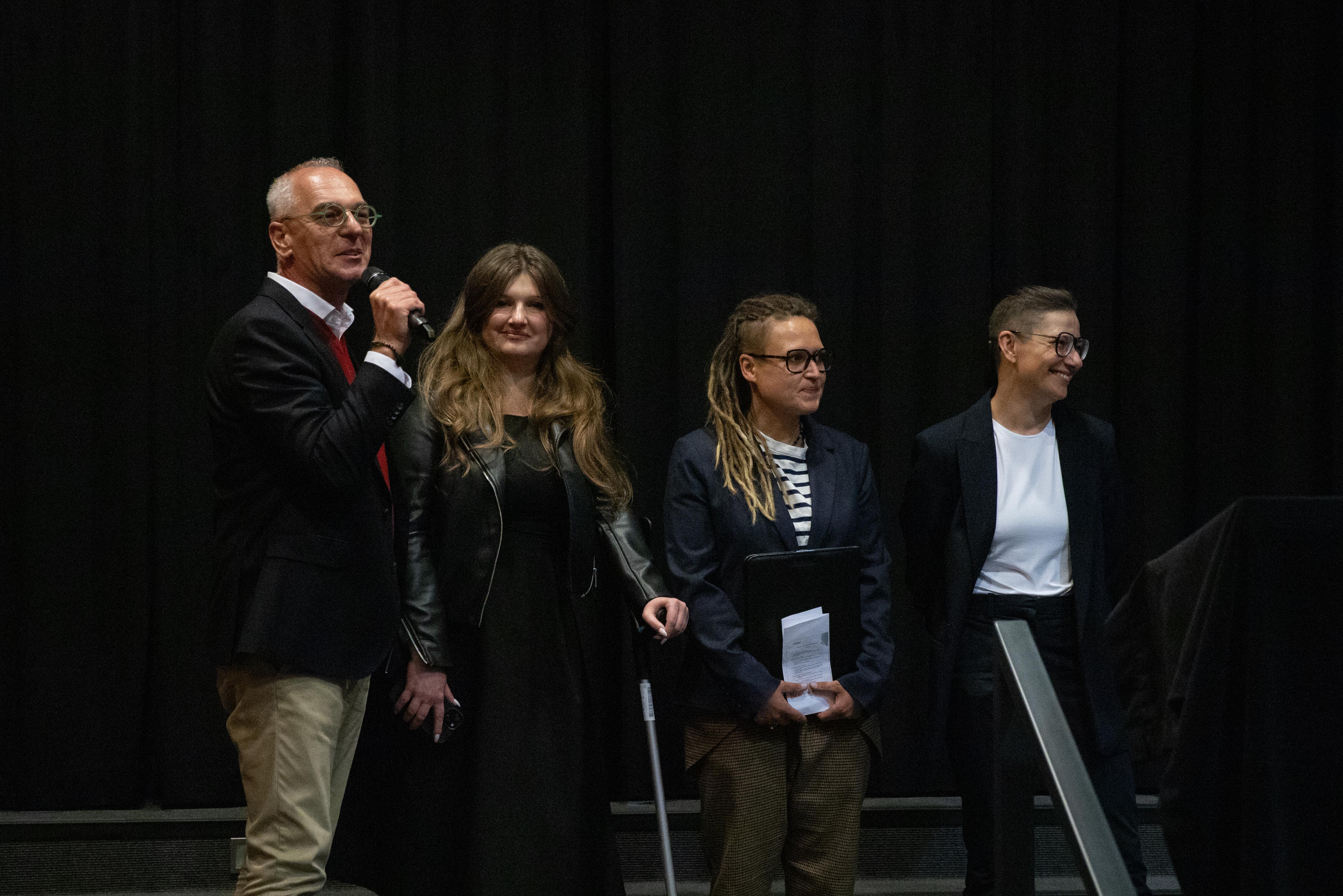 O idei i celach festiwalu opowiedziała (w języku angielskim) Katarzyna Pastuszak. Zwróciła uwagę, że festiwal i grupa badawcza Between.Pomiędzy służą zarówno praktykom, jak i naukowcom akademickim, tworząc przestrzeń do dzielenia i wymiany wiedzy i rzemiosła. Wspomniała także o dwóch programach realizowanych podczas festiwalu, które są skierowane do studentów i doktorantów: „Sharing Crafts” oraz „Czytanie sceny”. Roksana Zgierska podziękowała za zaangażowanie wszystkim wolontariuszom: - Ogromnie się cieszymy, że z roku na rok nasz zespół się powiększa, że studenci i studentki chcą powracać i razem z nami budować to wydarzenie, bo naprawdę bez ich wsparcia, bez ich zaangażowania nie dalibyśmy rady przygotować wszystkich wspaniałych wydarzeń.