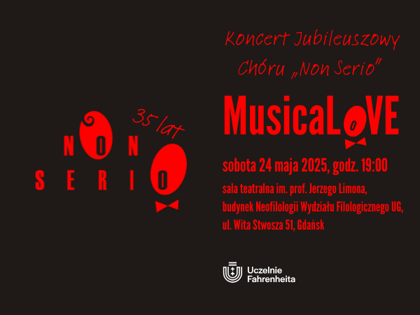 Koncert „MusicaLOVE” to święto 35-lecia działalności chóru, który przez lata funkcjonował jako Chór Wydziału Zarządzania Uniwersytetu Gdańskiego, a właśnie rozpoczyna nowy rozdział jako Chór Absolwentów Uczelni Fahrenheita. Wydarzenie zostało dofinansowane ze środków Miasta Gdańska. Wstęp wolny, dla uczestników dostępny będzie bezpłatny parking UG.