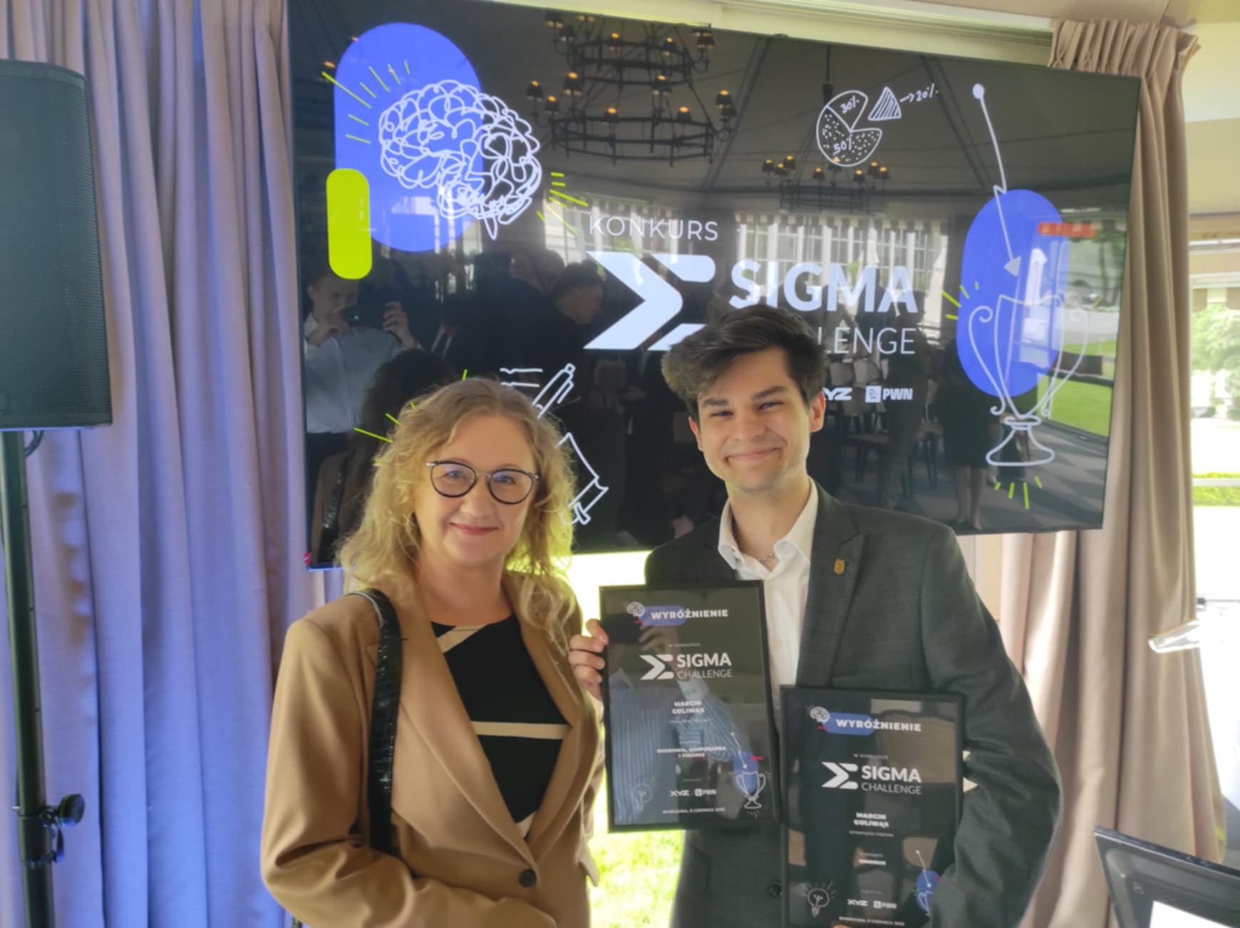 Pierwszy rok studiów i podwójny sukces w konkursie sprawdzającym wiedzę i szybkość myślenia. Pan Marcin Goliwąs, student I roku historii, zdobył II miejsce w dwóch kategoriach ogólnopolskiego konkursu XYZ Sigma Challenge 2025: Ekonomia, gospodarka, finanse oraz Omnibus, co czyni go jednym z najbardziej wszechstronnych uczestników. Uroczyste wręczenie nagród miało miejsce 10 czerwca w Warszawie.