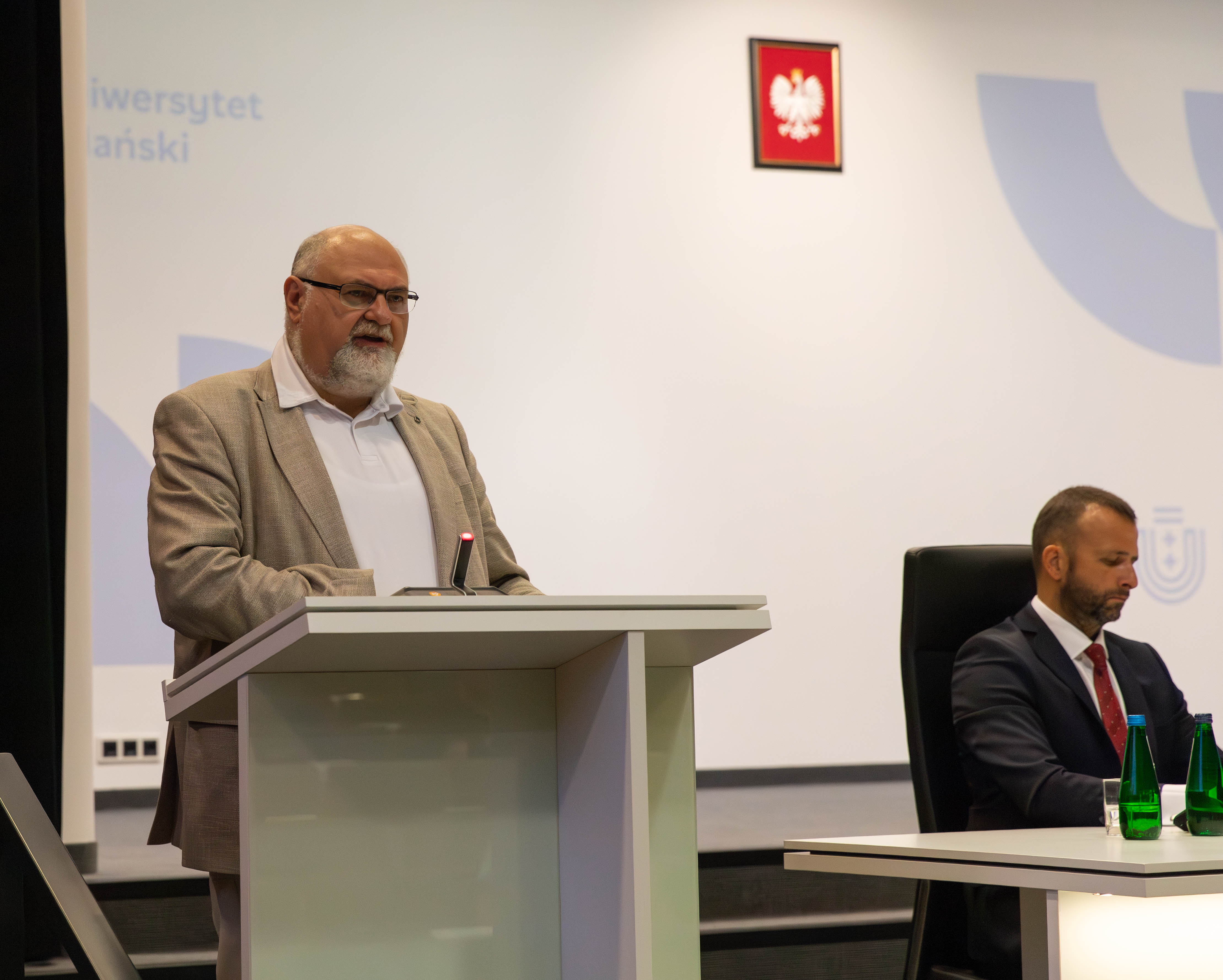 Ostatnie w roku akademickim 2024/2025 posiedzenie Senatu Uniwersytetu Gdańskiego, które odbyło się 3 lipca br.,  rozpoczął Rektor prof. dr hab. Piotr Stepnowski złożeniem gratulacji prof. dr. hab. Grzegorzowi Węgrzynowi, który został członkiem rzeczywistym Polskiej Akademii Nauk.