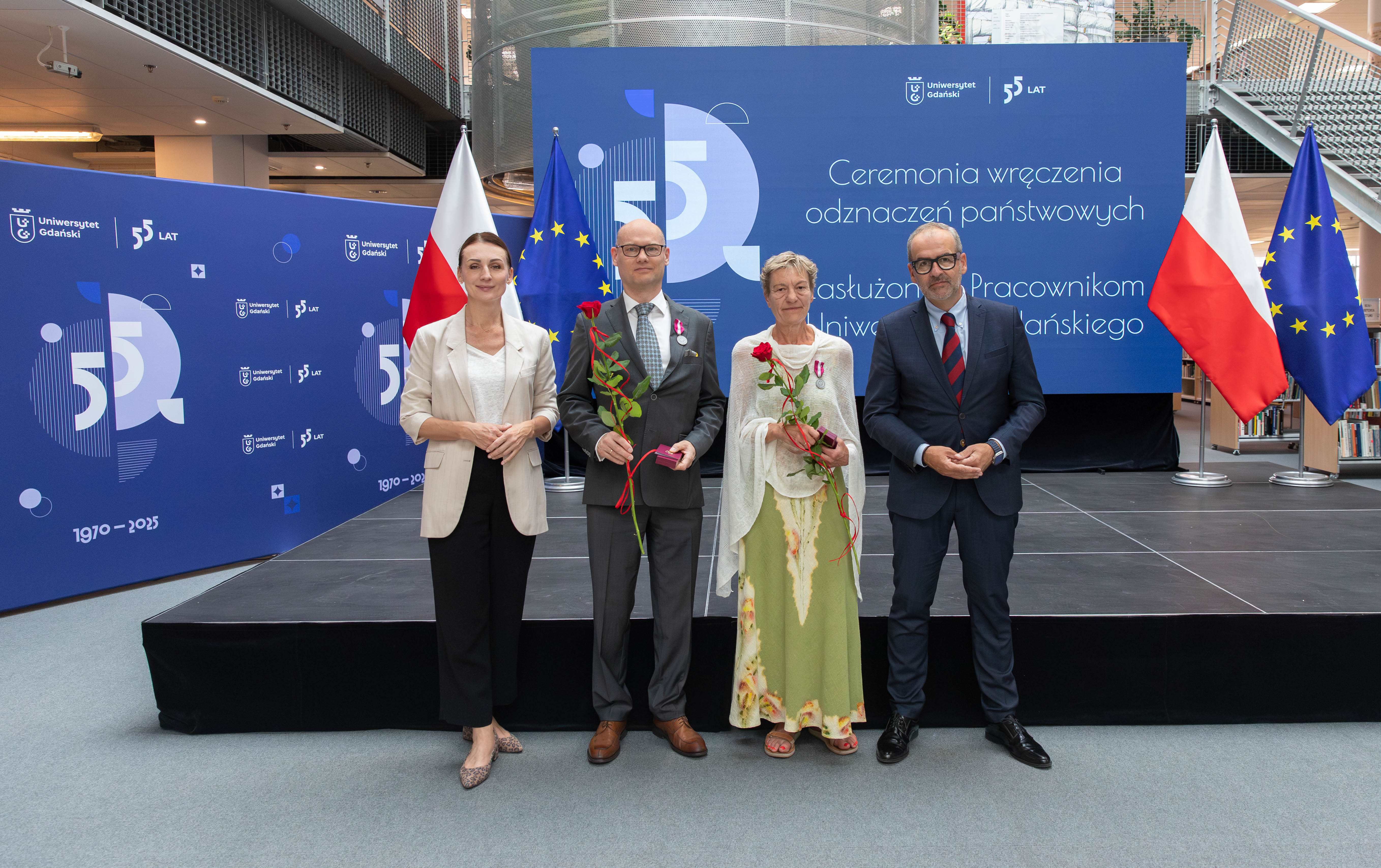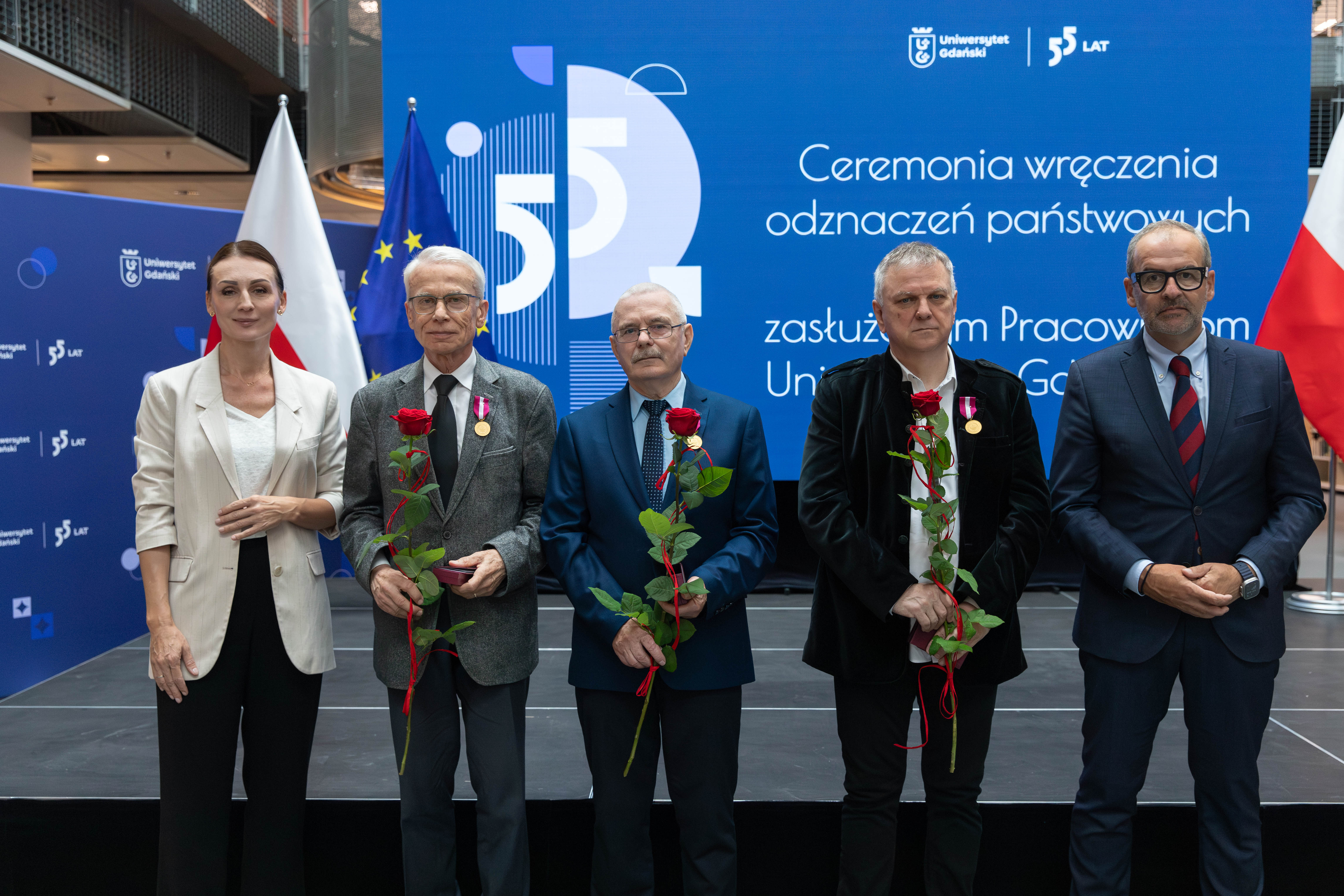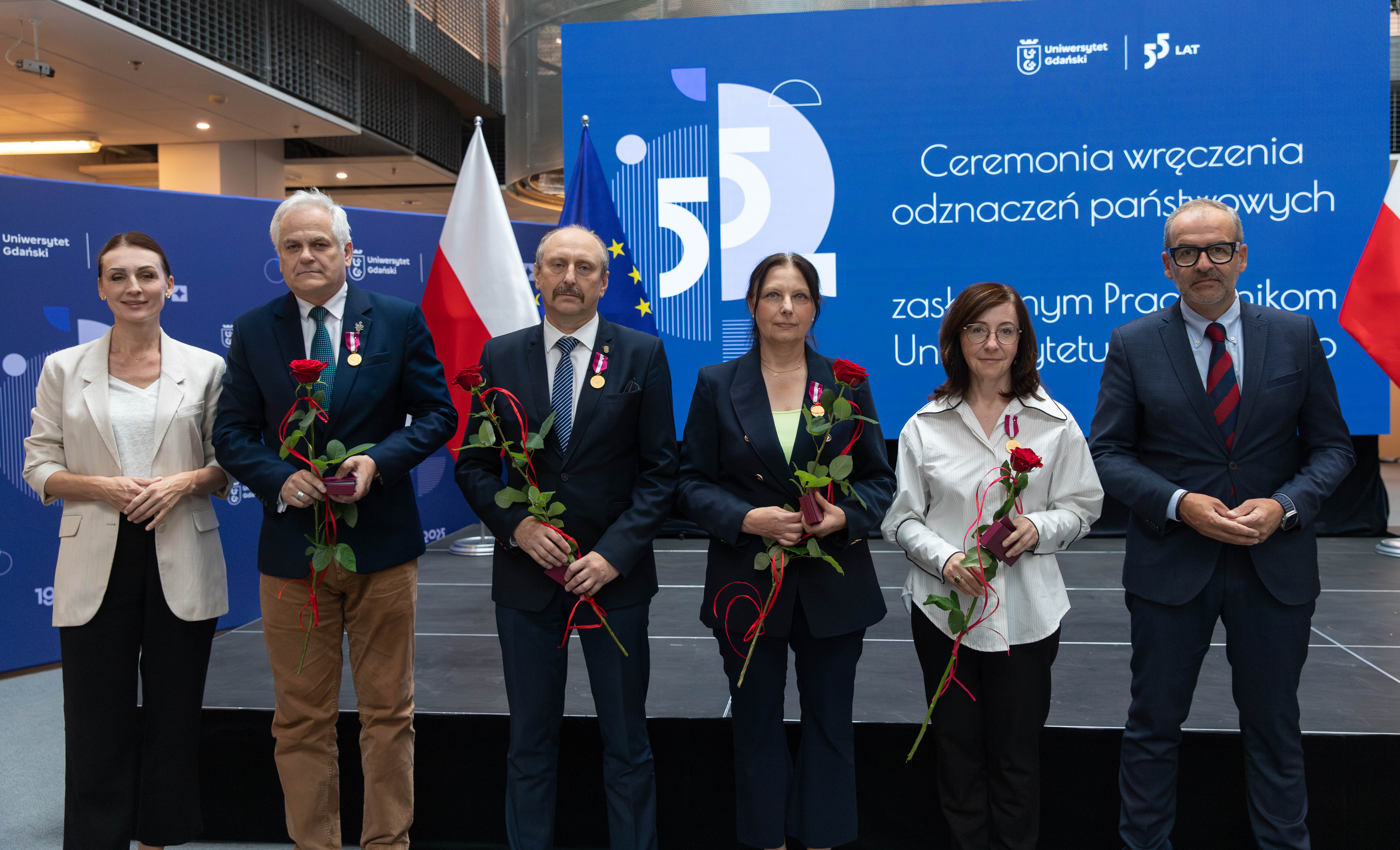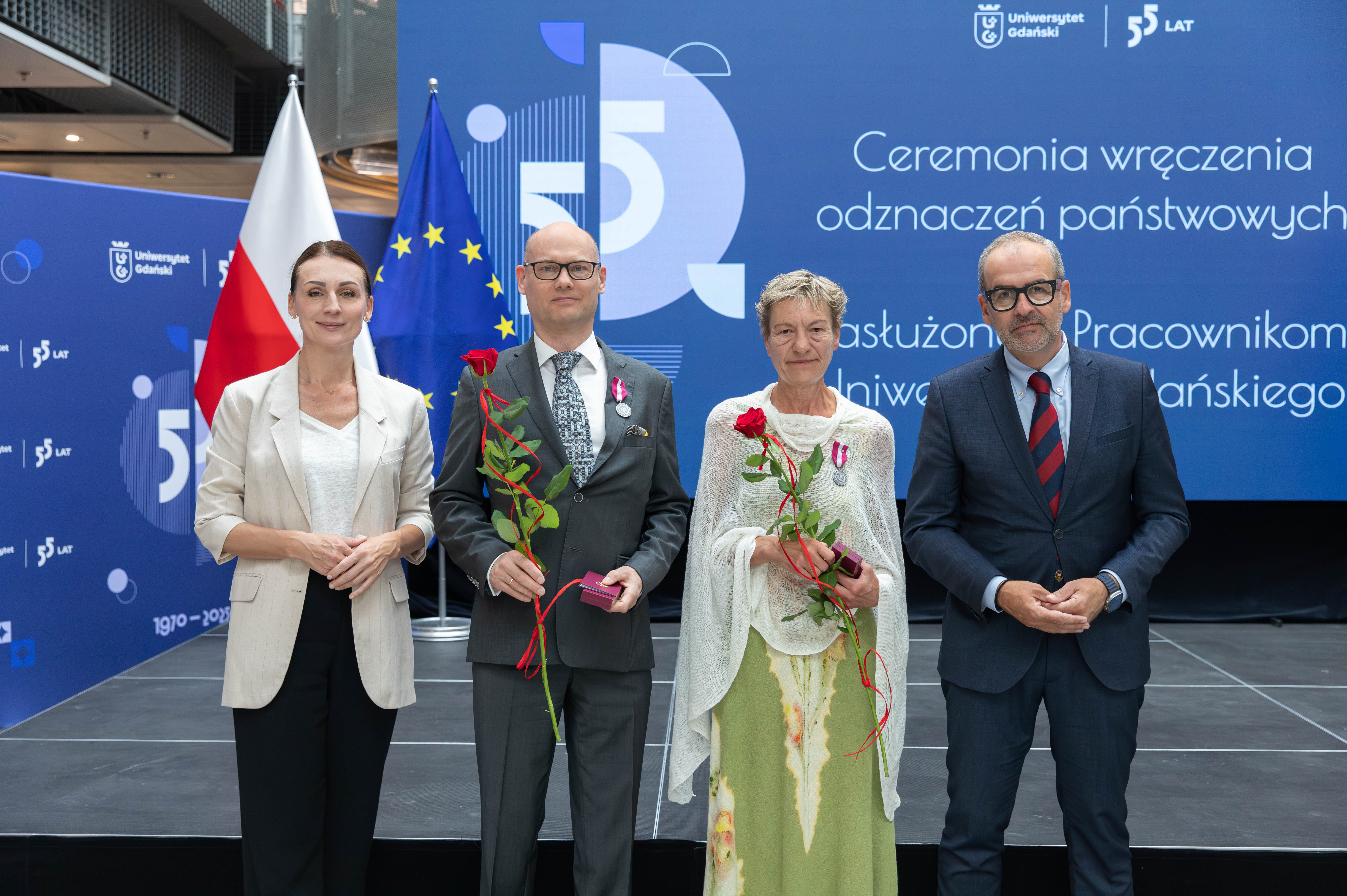 - Uhonorowanie naszych pracowników odznaczeniami państwowymi To przede wszystkim dowód na ta, że cała społeczność Uniwersytetu Gdańskiego pracuje na jego markę, prestiż i rozpoznawalność. To widać nie tylko w naszych znakomitych osiągnięciach naukowych, organizacyjnych i dydaktycznych, ale również w pozycji uniwersytetu w rankingach zarówno krajowych, jak i międzynarodowych - powiedział Rektor Uniwersytetu Gdańskiego, prof. Piotr Stepnowski. - Dzisiaj jesteśmy tu po to, aby uhonorować naszych najwybitniejszych, najbardziej zasłużonych pracowników. Te odznaczenia są dowodem na to, że związaliście swoje życie i pasję z waszą uczelnią. Za to chciałbym wam serdecznie podziękować, bo ten nierozerwalny związek między waszą pracą a uniwersytetem to jest właśnie to dobro, które tworzy jego pozycję zarówno w kraju, jak i za granicą. Serdecznie Państwu gratuluję!