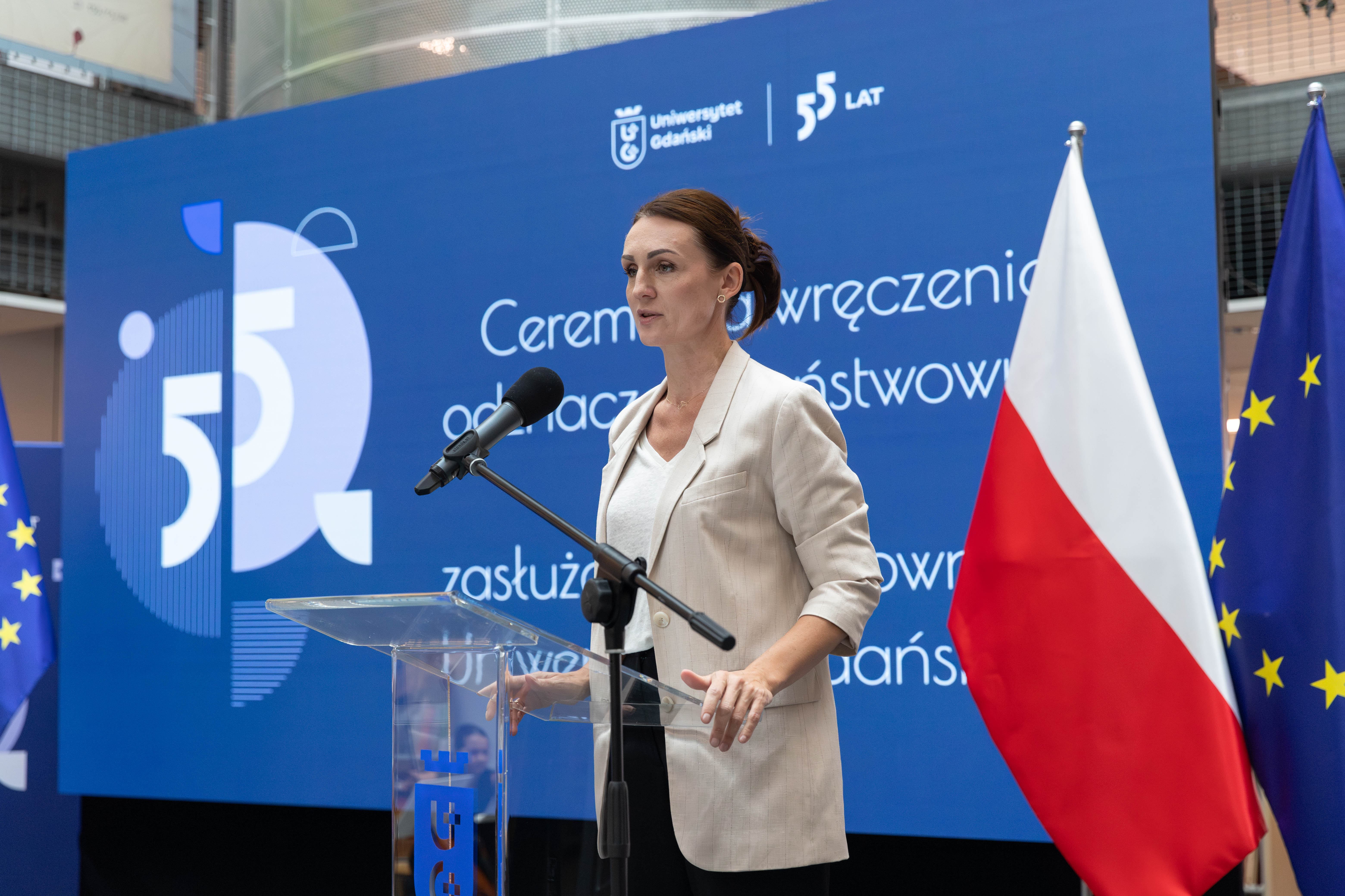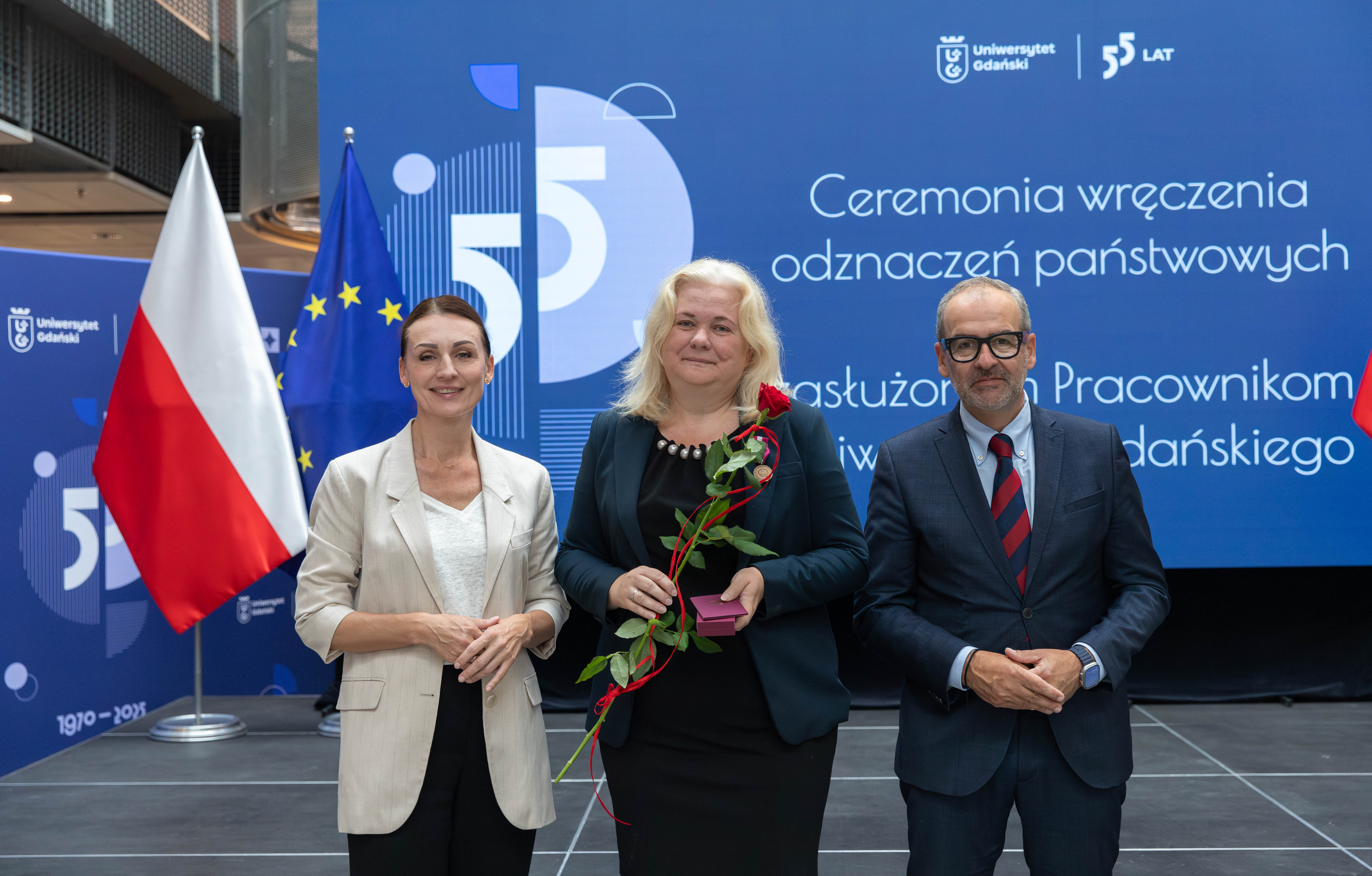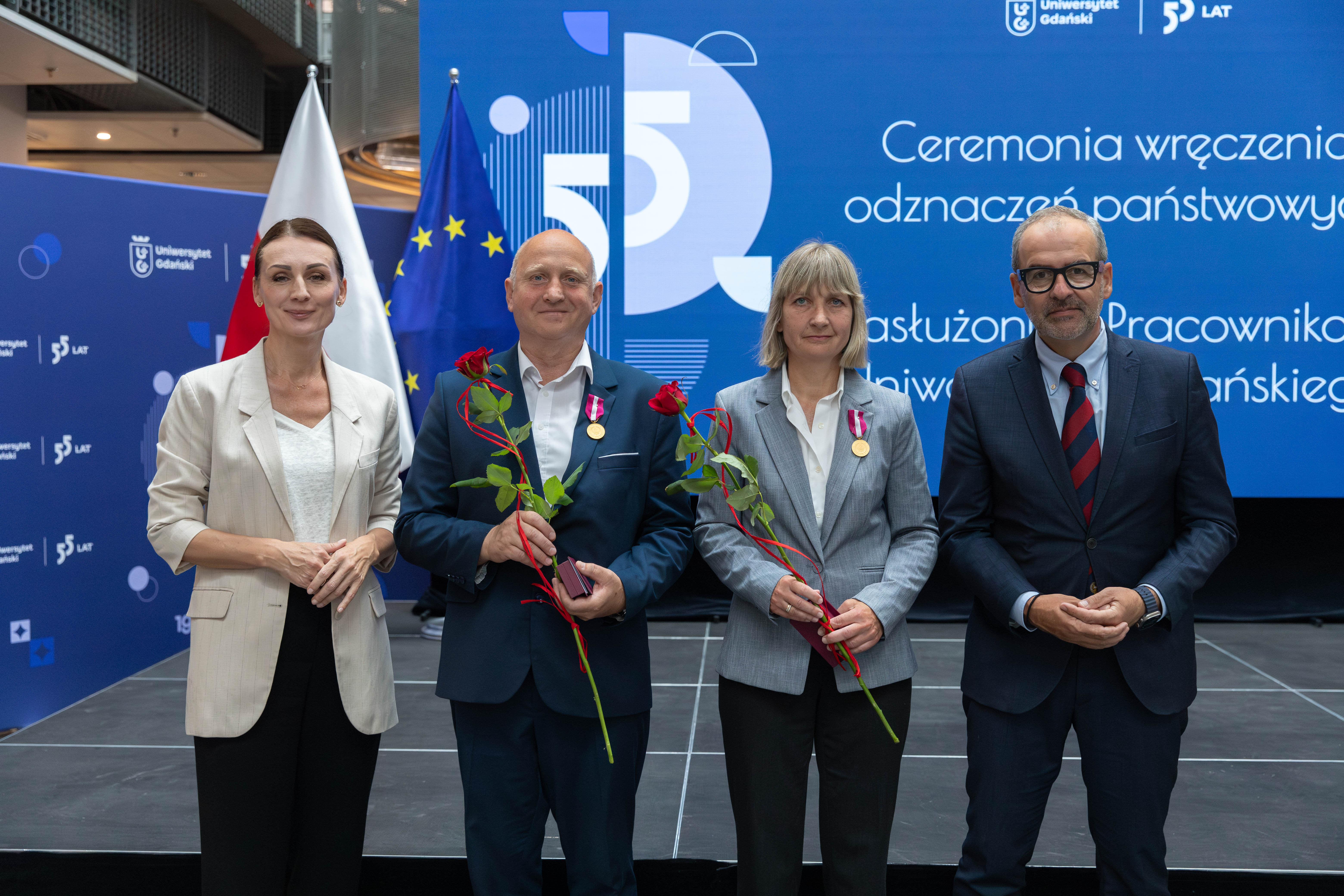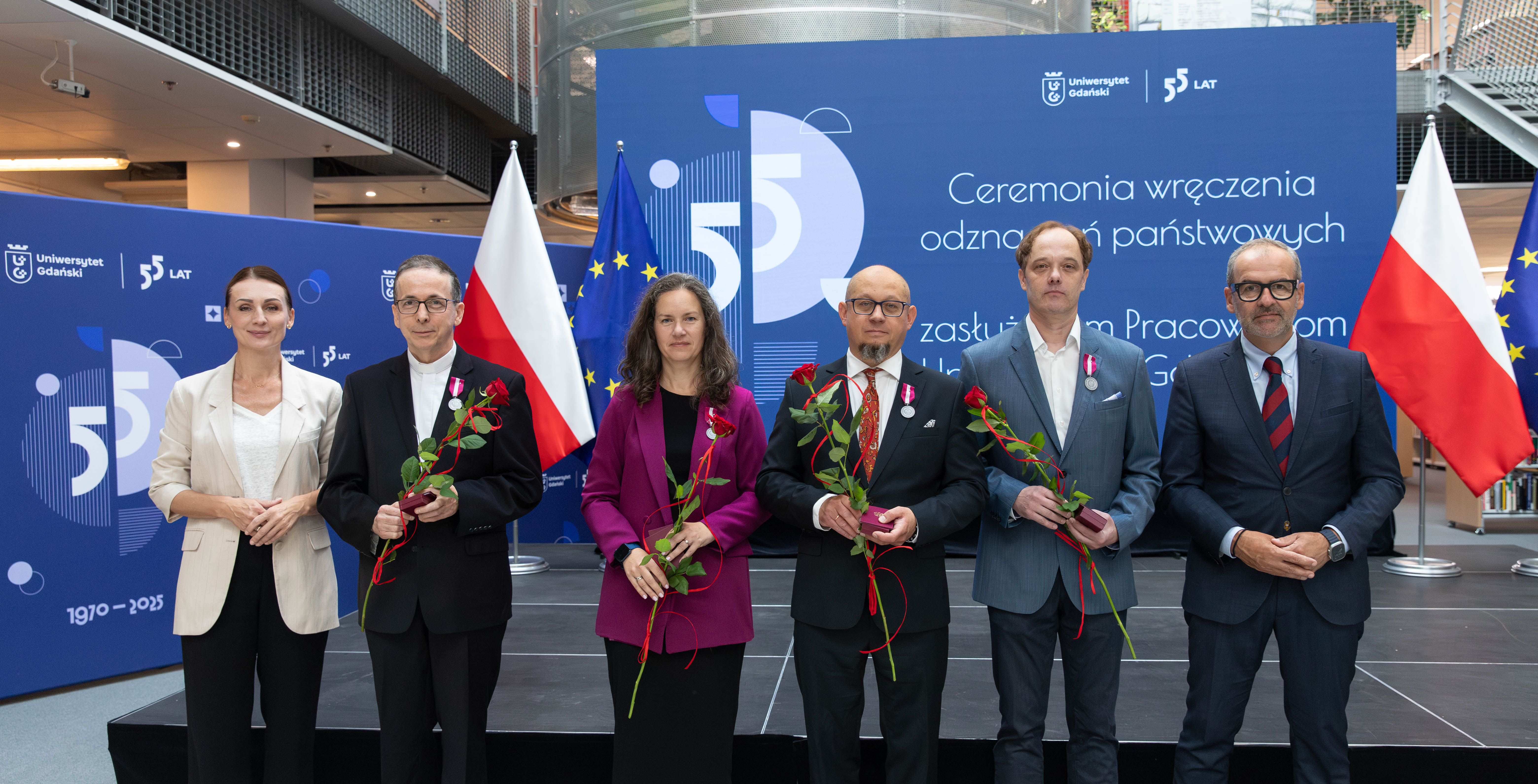- Uhonorowanie naszych pracowników odznaczeniami państwowymi To przede wszystkim dowód na ta, że cała społeczność Uniwersytetu Gdańskiego pracuje na jego markę, prestiż i rozpoznawalność. To widać nie tylko w naszych znakomitych osiągnięciach naukowych, organizacyjnych i dydaktycznych, ale również w pozycji uniwersytetu w rankingach zarówno krajowych, jak i międzynarodowych - powiedział Rektor Uniwersytetu Gdańskiego, prof. Piotr Stepnowski. - Dzisiaj jesteśmy tu po to, aby uhonorować naszych najwybitniejszych, najbardziej zasłużonych pracowników. Te odznaczenia są dowodem na to, że związaliście swoje życie i pasję z waszą uczelnią. Za to chciałbym wam serdecznie podziękować, bo ten nierozerwalny związek między waszą pracą a uniwersytetem to jest właśnie to dobro, które tworzy jego pozycję zarówno w kraju, jak i za granicą. Serdecznie Państwu gratuluję!