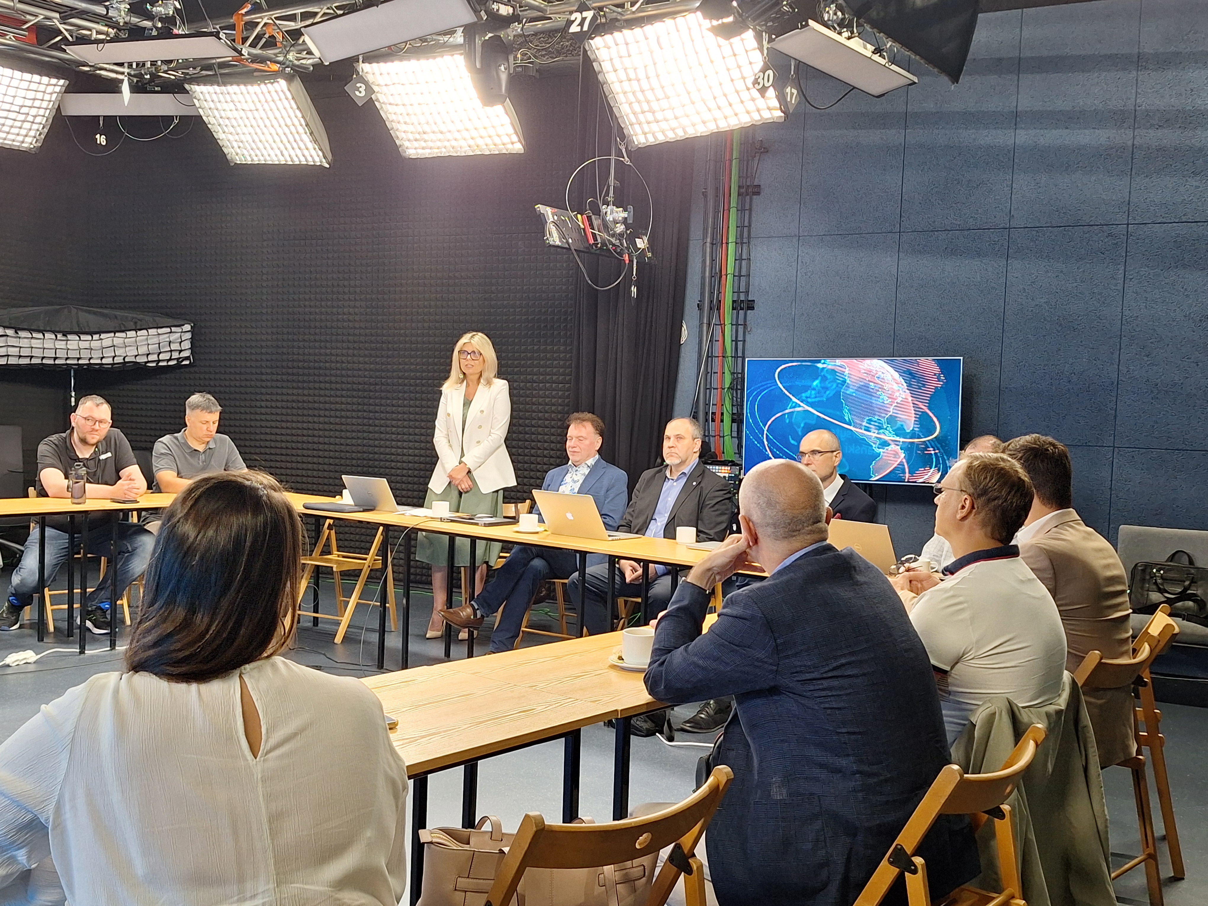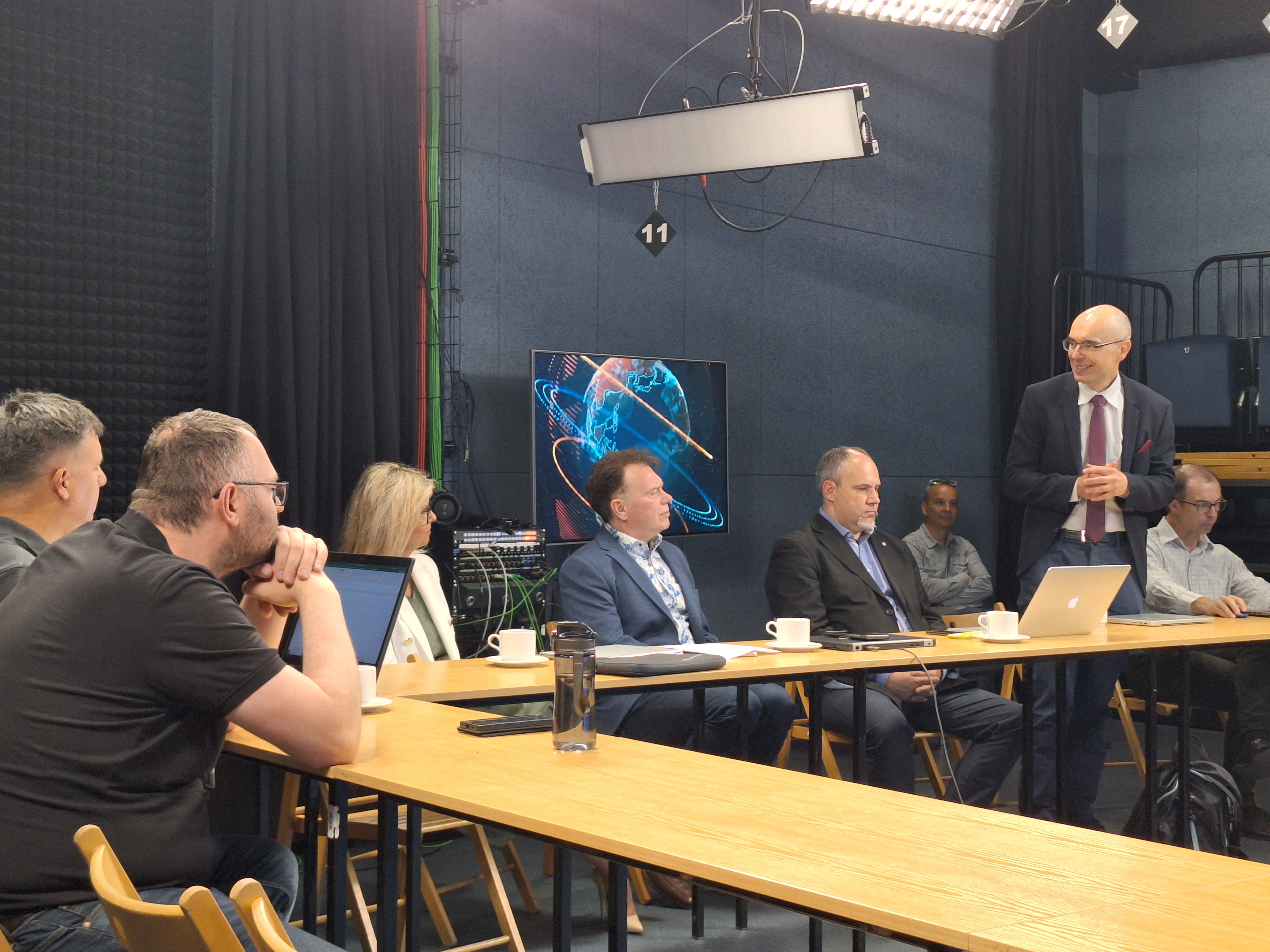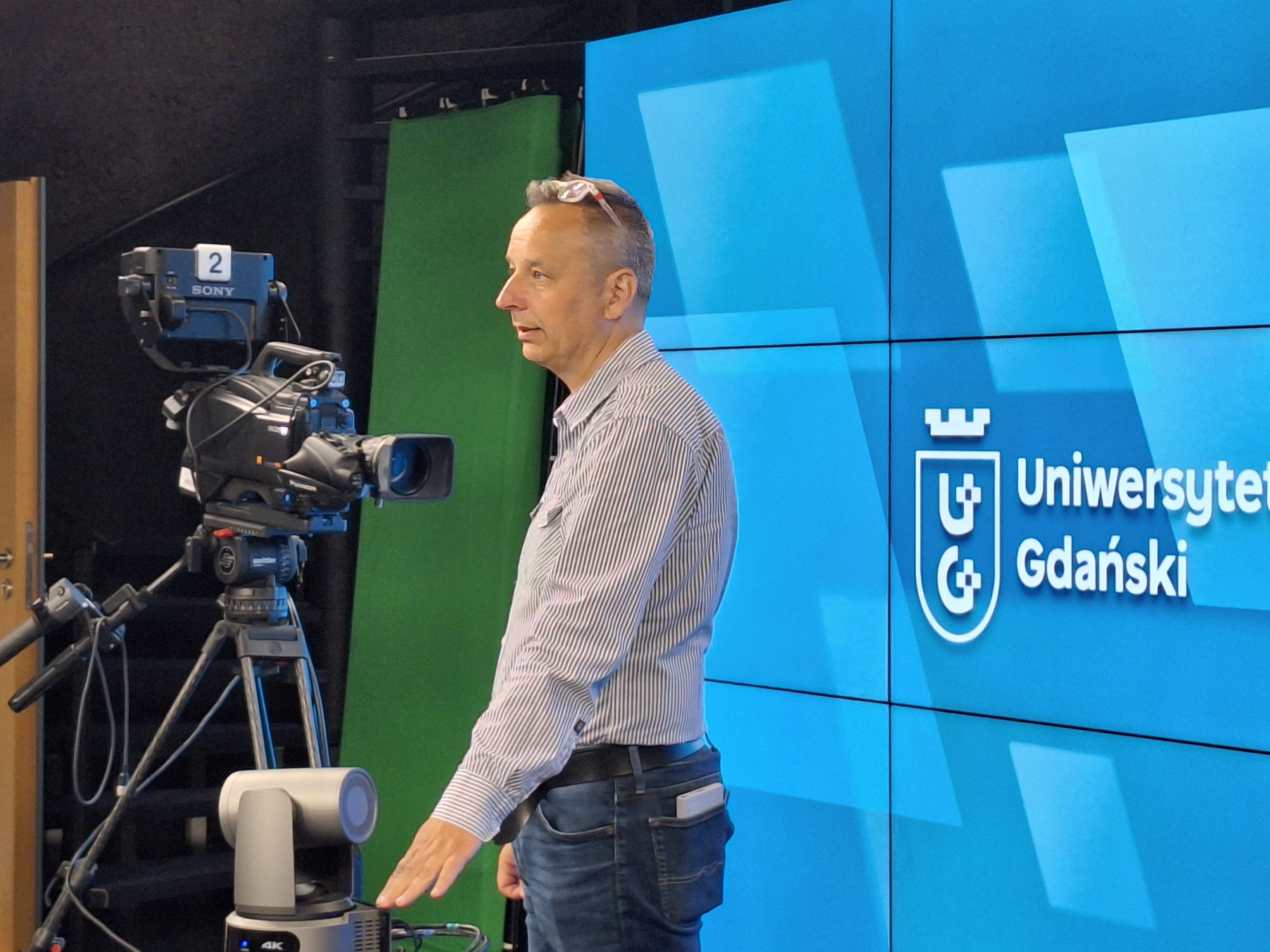 Spotkanie 4 lipca miało na celu przede wszystkim omówienie bieżących wyzwań związanych z działalnością CI TASK. Jego uczestnicy mieli także okazję zapoznać się z Laboratorium Symulacji Nagrań Telewizyjnych i Dokumentacji Filmowej, mieszczącym się w budynku Wydziału Nauk Społecznych UG. O Laboratorium, jego historii i stosowanych rozwiązaniach technologicznych w kontekście zmieniających się realiów opowiedział Wojciech Głodek, Dyrektor Centrum Produkcji Filmowej i Dokumentalnej UG.