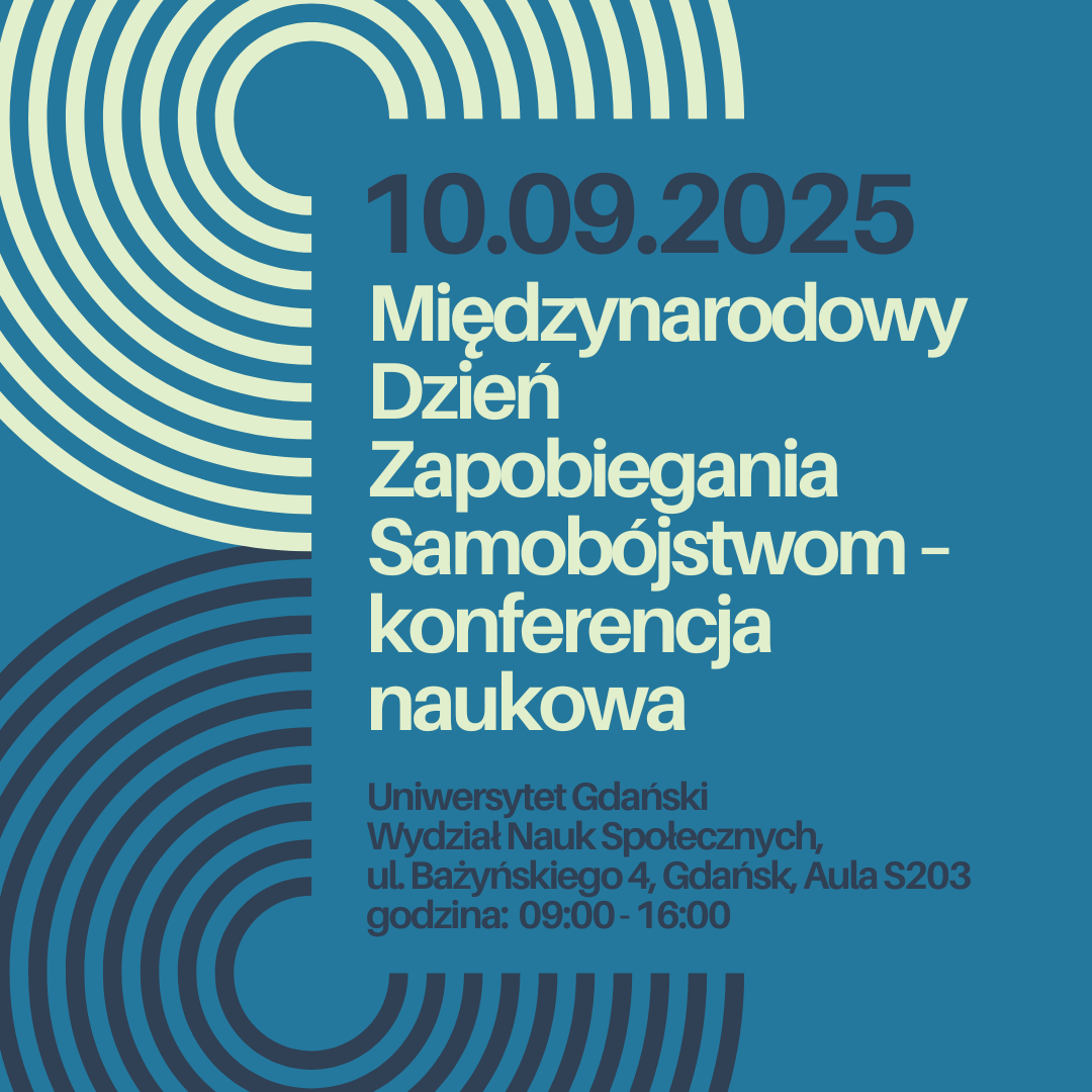Z okazji Międzynarodowego Dnia Zapobiegania Samobójstwom Uniwersytet Gdański i Uniwersytet SWPS zapraszają do udziału w ogólnopolskiej konferencji naukowej poświęconej profilaktyce samobójstw, promocji zdrowia psychicznego oraz wspieraniu działań interwencyjnych i edukacyjnych w tym obszarze. Konferencja odbędzie się 10 września 2025 r. na Wydziale Nauk Społecznych UG. Nabór abstraktów trwa do 25 sierpnia 2025 r.