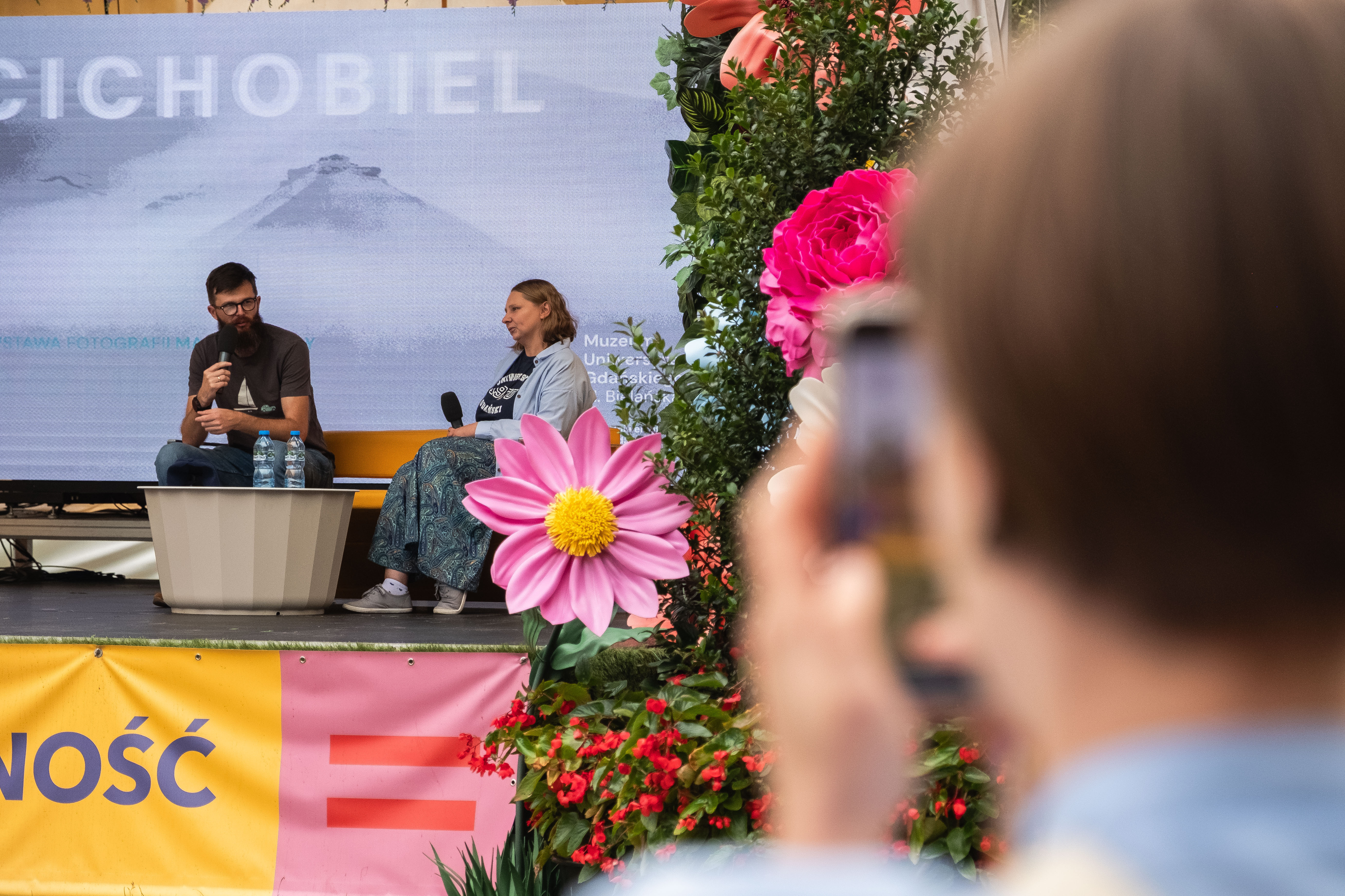 Marta Szaszkiewicz-Sawa przybliżyła gościom ideę muzeów akademickich, a także opowiedziała o wystawie stałej Muzeum UG, zachęcając do jej odwiedzenia. Następnie oddała scenę Maciejowi Żyndzie, absolwentowi Uniwersytetu Gdańskiego, którego wystawę CICHOBIEL, będącą zapisem fotograficznej wyprawy na Spitsbergen, można obecnie podziwiać w Muzeum. W rozmowie z Dorotą Rybak artysta opowiedział o doświadczeniu arktycznej ciszy i bieli, przygotowaniach do ekspedycji, wsparciu rodziny, spojrzeniu na własną twórczość oraz o tym, jak istotny jest dla niego dialog i bezpośrednie spotkanie z odbiorcą.