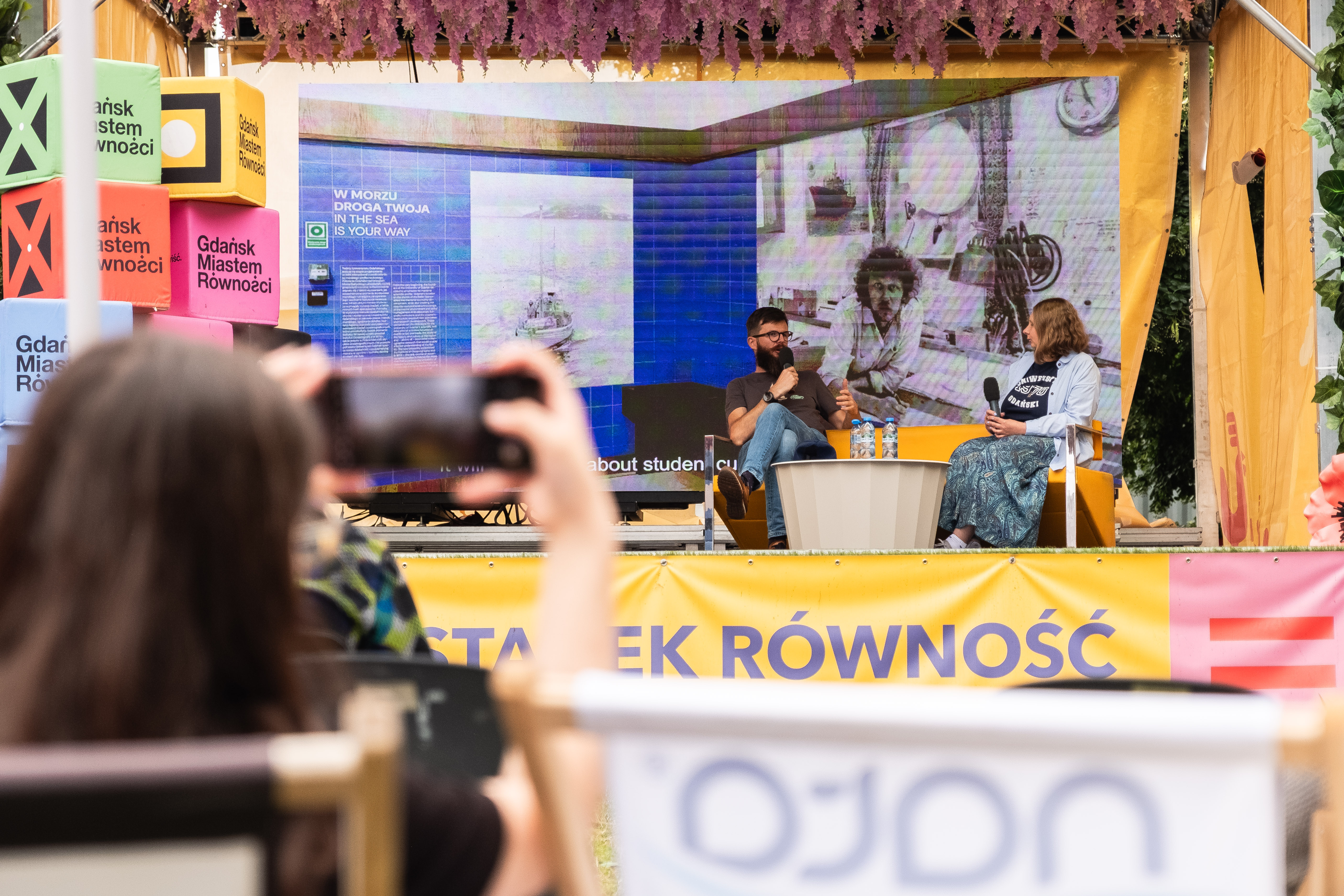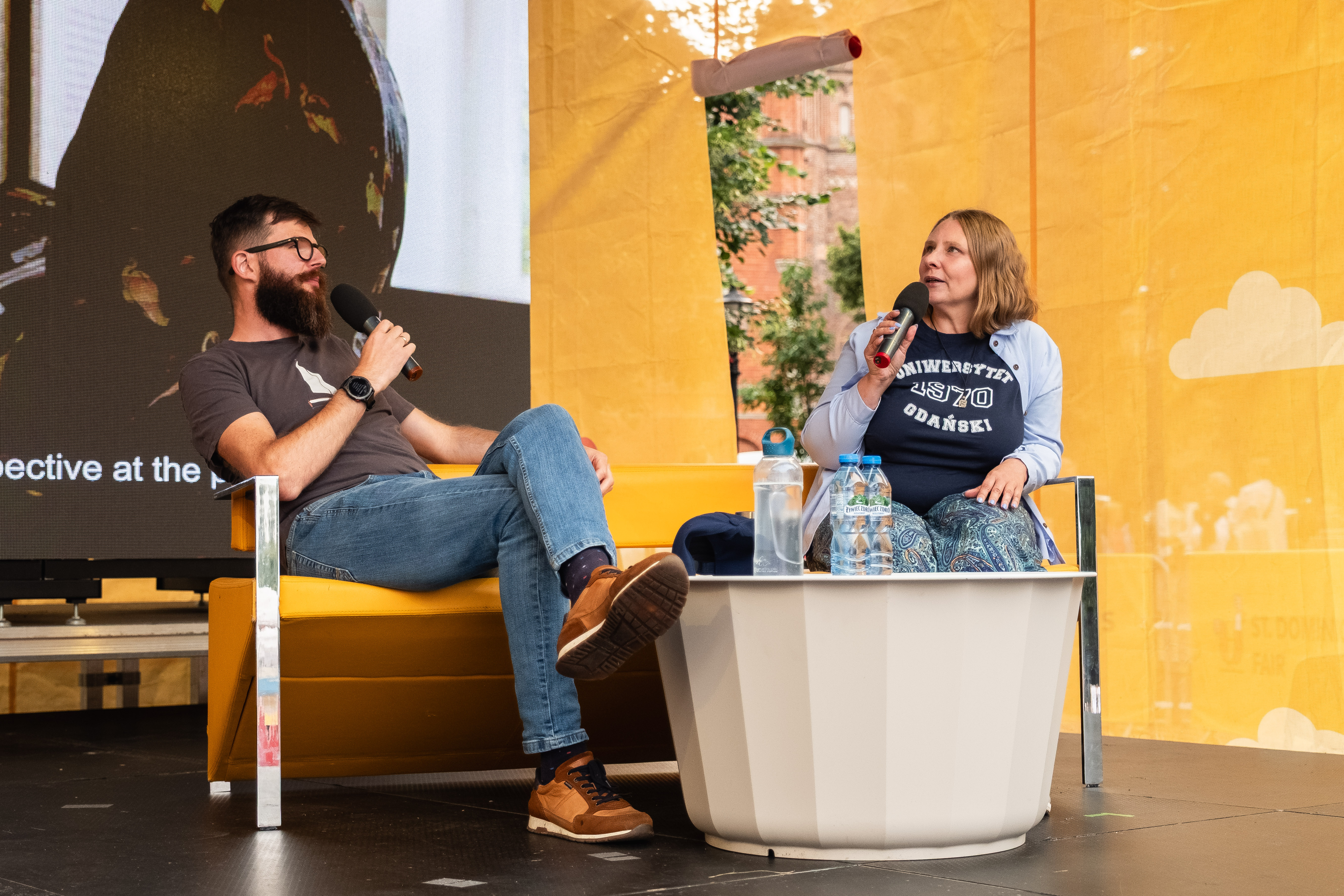 Jarmark św. Dominika to wyjątkowe wydarzenie, na stałe wpisane w letni krajobraz Gdańska. W tym roku na scenie Przystanku Równość zaprezentowało się również Muzeum Uniwersytetu Gdańskiego! W poniedziałek 4 sierpnia Marta Szaszkiewicz-Sawa opowiedziała o muzeach akademickich, w tym muzeach prowadzonych przez Uniwersytet Gdański, a Maciej Żynda, którego wystawę CICHOBIEL można podziwiać w sali wystaw czasowych Muzeum UG, podzielił się swoimi refleksjami z fotograficznej podróży na Spitsbergen. Na zakończenie odbył się bezpłatny spacer po Starym Mieście, organizowany w ramach RadUNII Kultury, prowadzony przez przewodniczkę Sabinę Rogalską-Antosik, który obejmował również wizytę w Domu Opatów Pelplińskich - siedzibie Muzeum - i zwiedzanie wystawy stałej i czasowej.