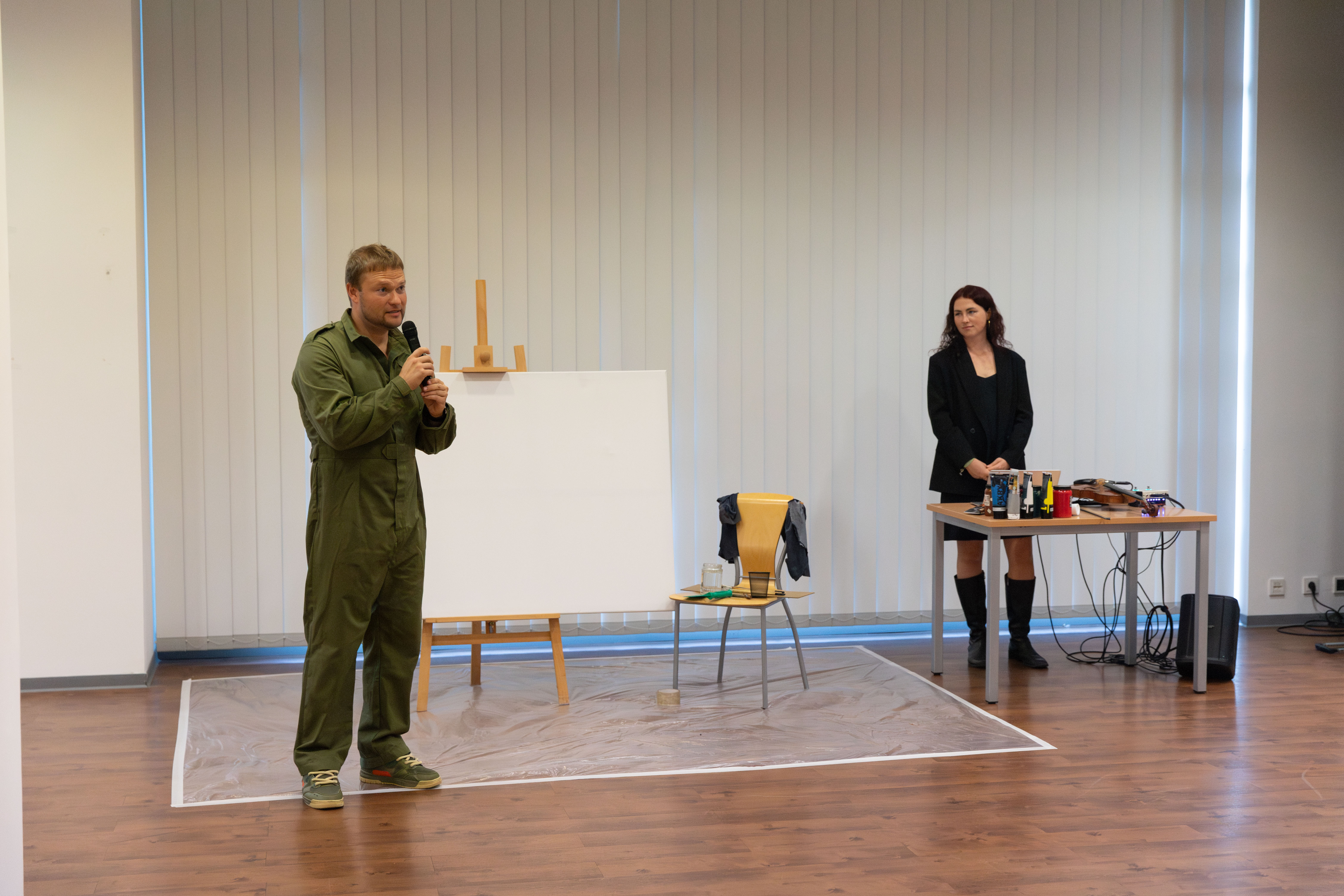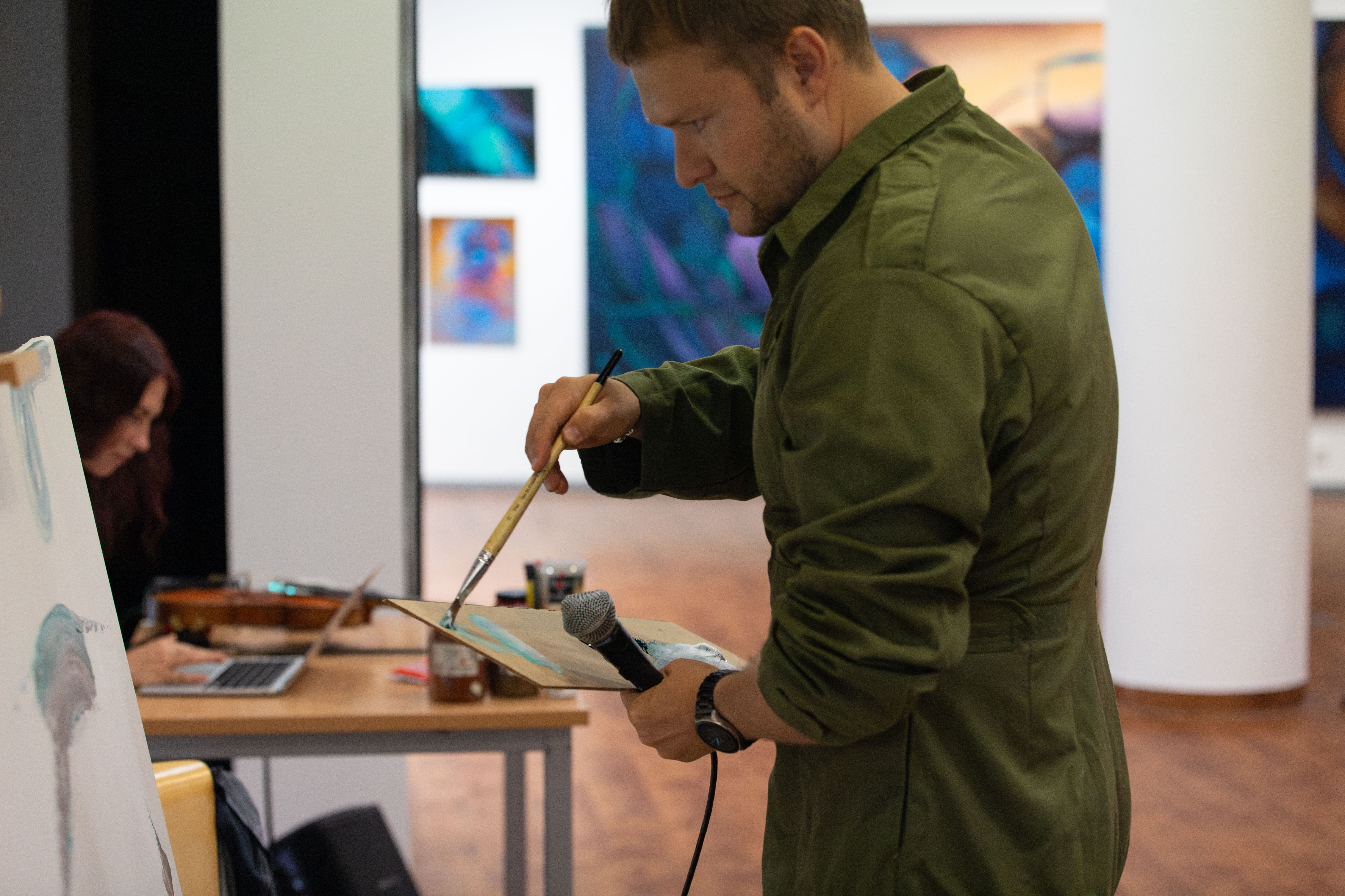 Z początkowym etapem tworzenia dzieła uczestnicy wernisażu mogli się zapoznać na żywo podczas performance’u, podczas którego dwoje artystów: malarz Denis Chyżawski oraz towarzysząca mu skrzypaczka Nadeya jednocześnie tworzyli improwizowane utwory, inspirując się nawzajem swoją sztuką. Jak podkreślili artyści, tego typu improwizację (jednoczesne tworzenie malarstwa i muzyki) wykonywali po raz pierwszy.