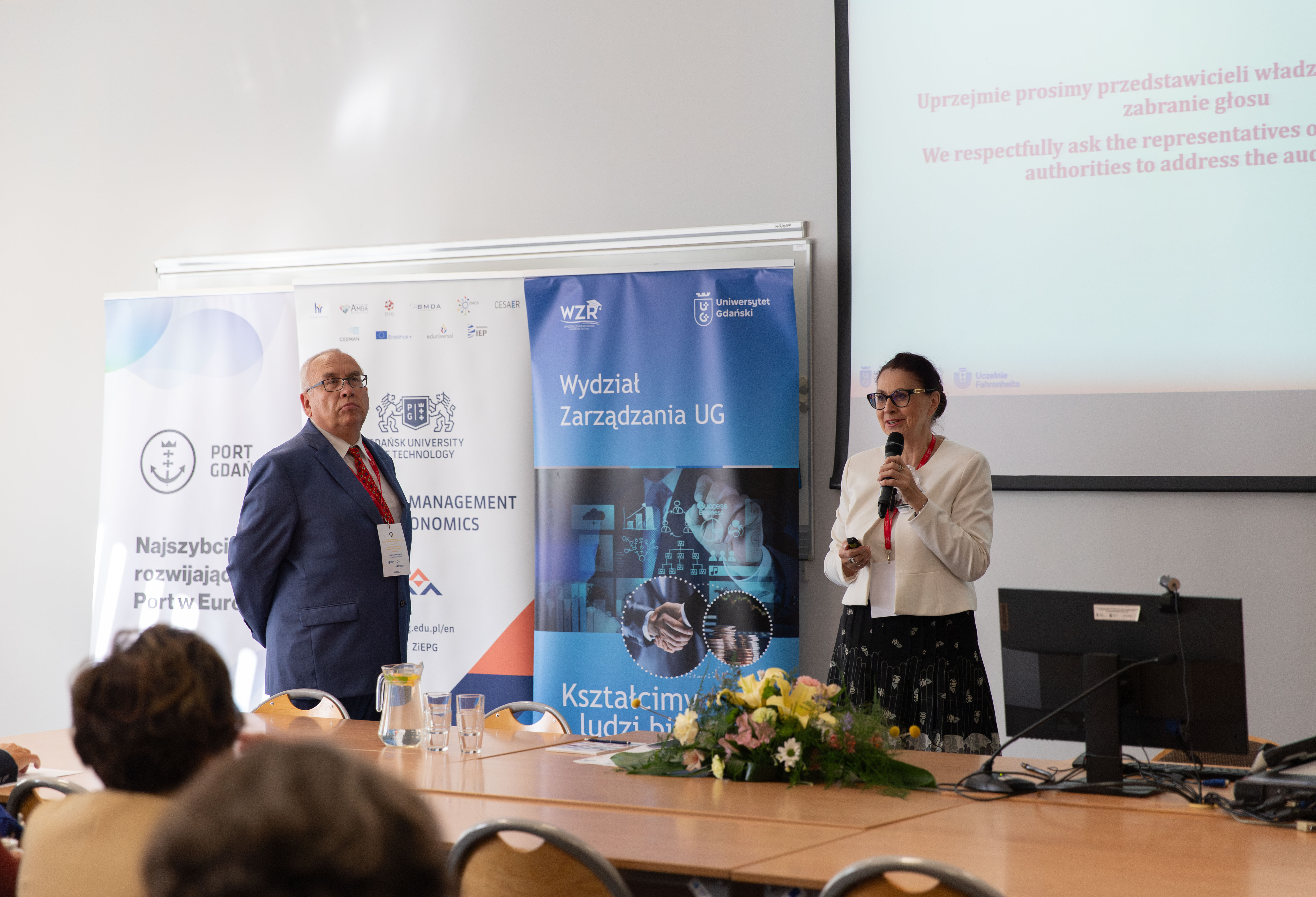 Prof. dr hab. Małgorzata Wiśniewska z UG i dr hab. inż. Piotr Grudowski, prof. PG witają uczestników konferencji