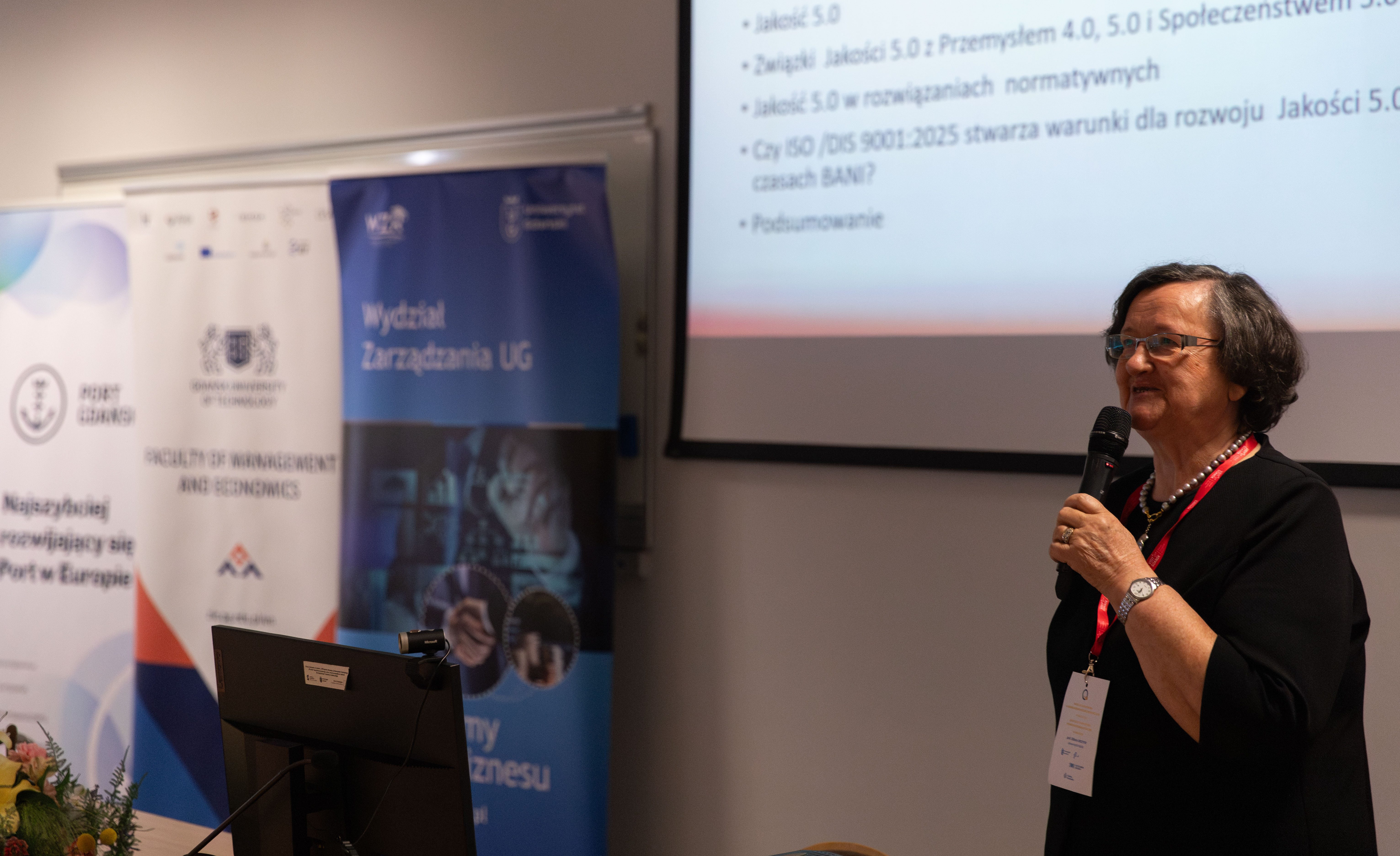 Prof. Skrzypek w swoim wystąpieniu podjęła również wątek, czy i w jakim zakresie rozwiązania normy ISO 9001, które są poświęcone zarządzaniu jakością, wychodzą naprzeciw koncepcji świata BANI. Przedstawiła również zmiany, jakie zaszły w podejściu do przemysłu i jakości.